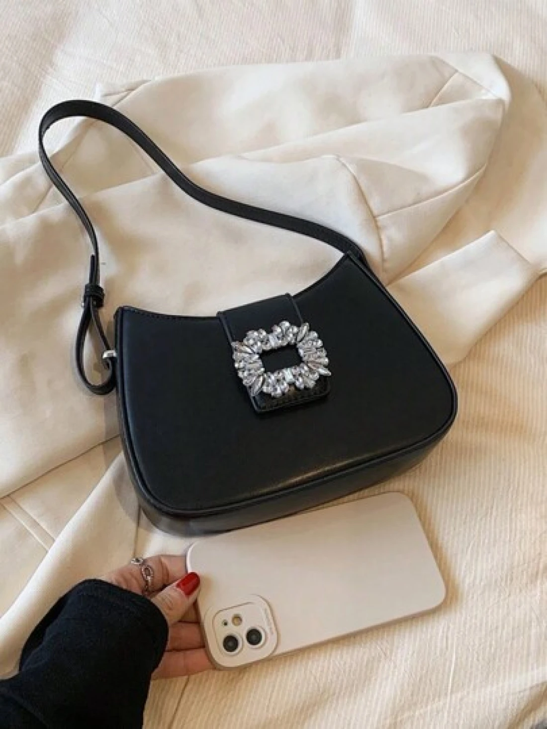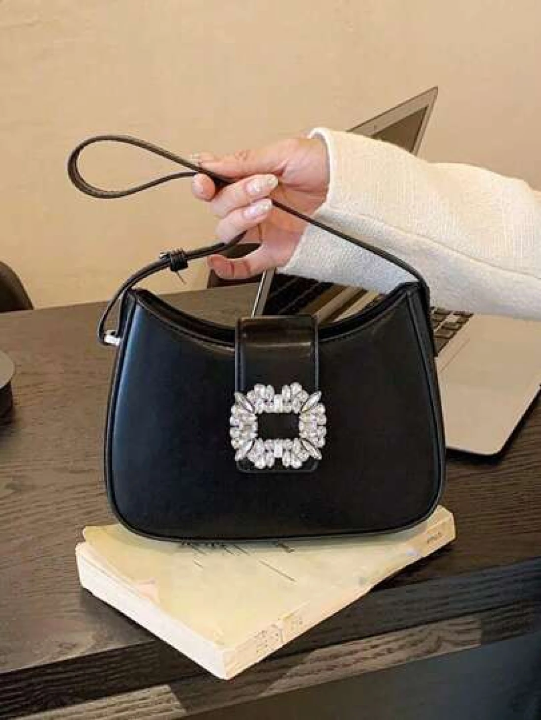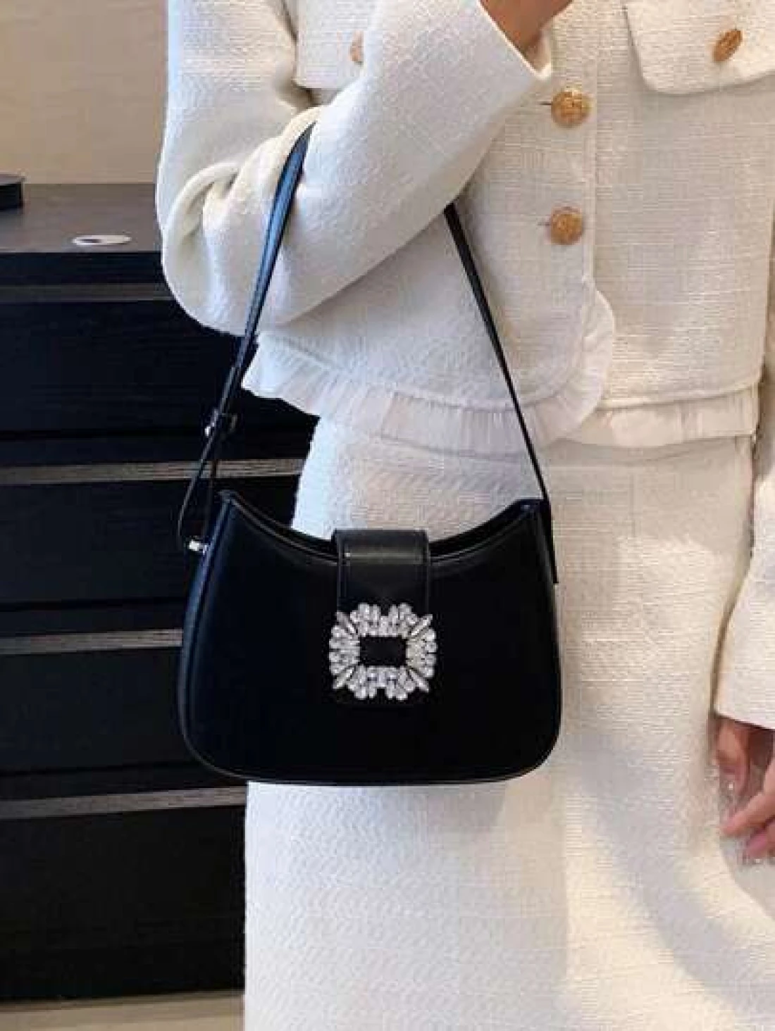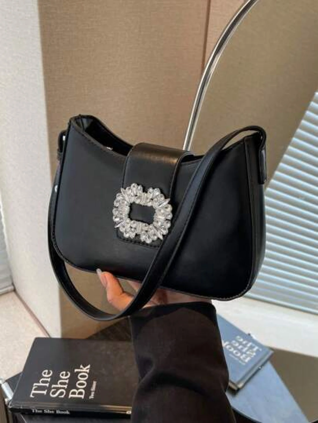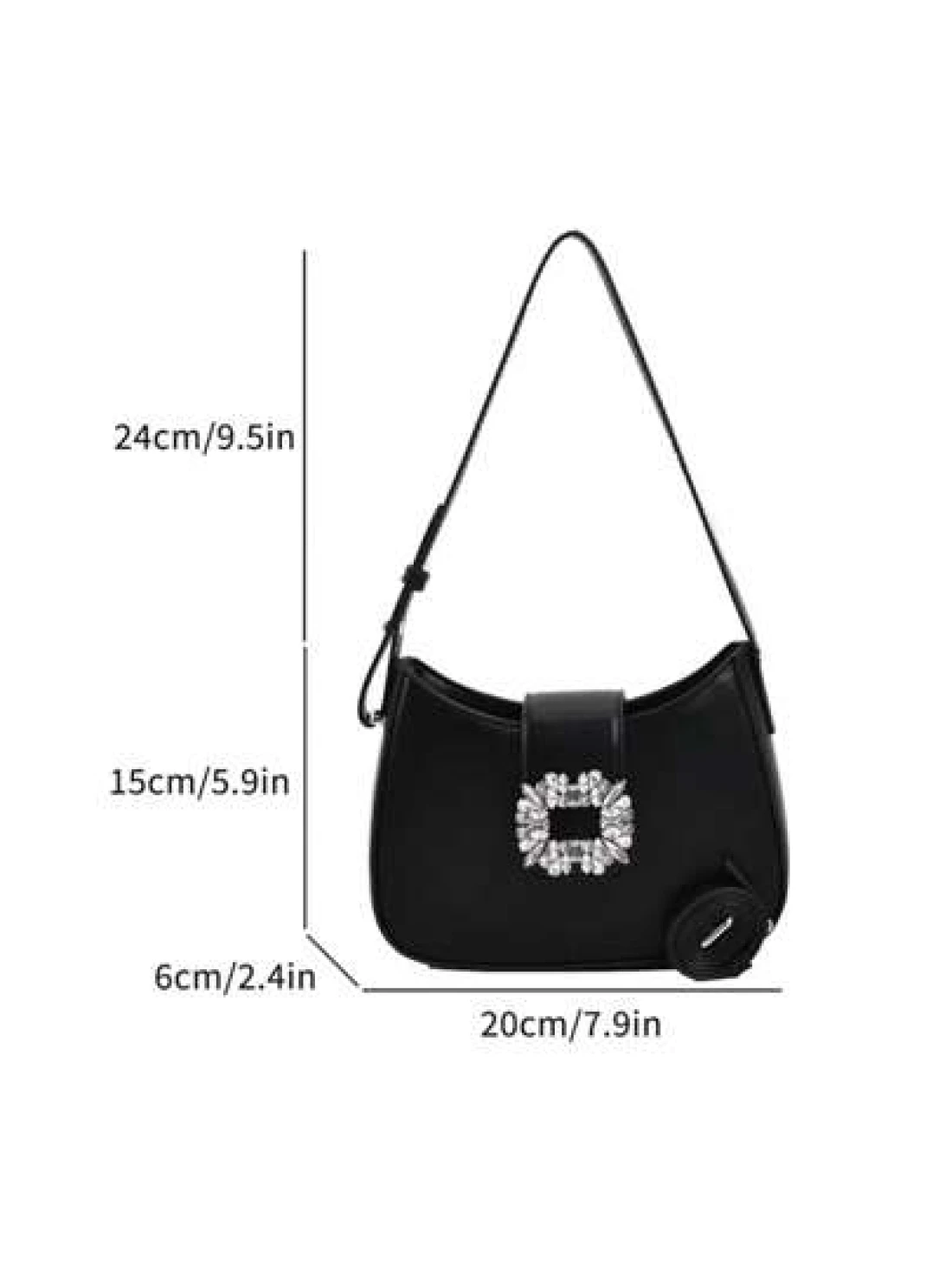 Shoulder Bag With Rhinestone Decorative Armpit Bag Versatile And Fashionable Rhinestone Glitter Saddle Underarm Bag PU Leather Textured Bag Purse Fashion Versatile Bag
