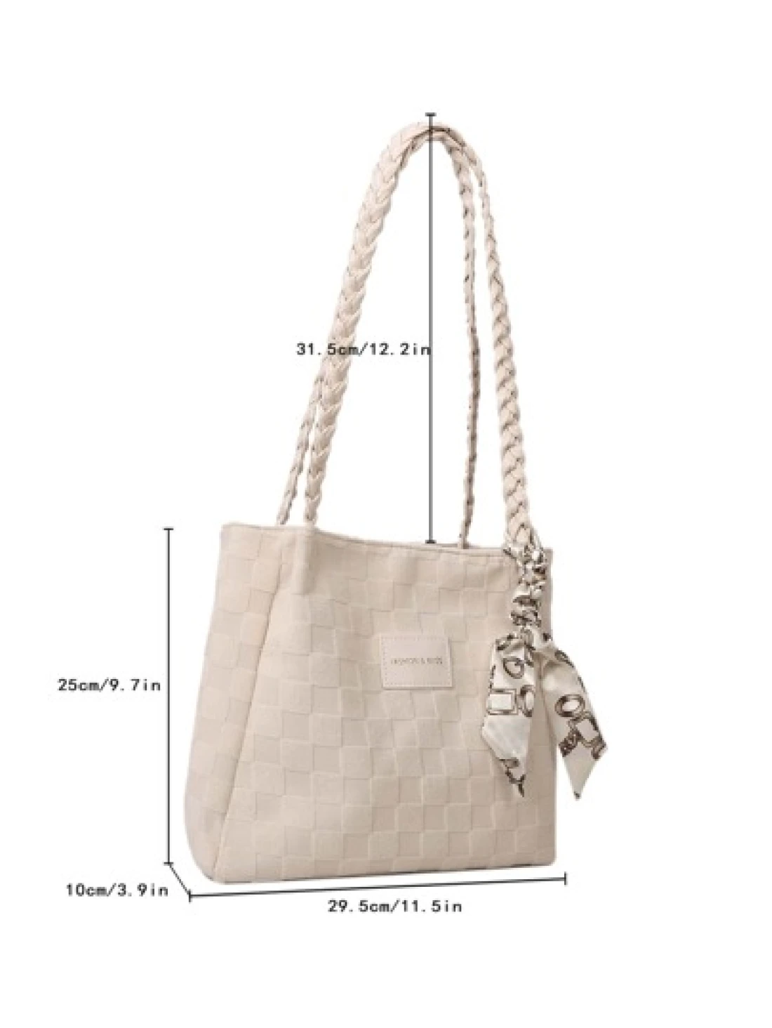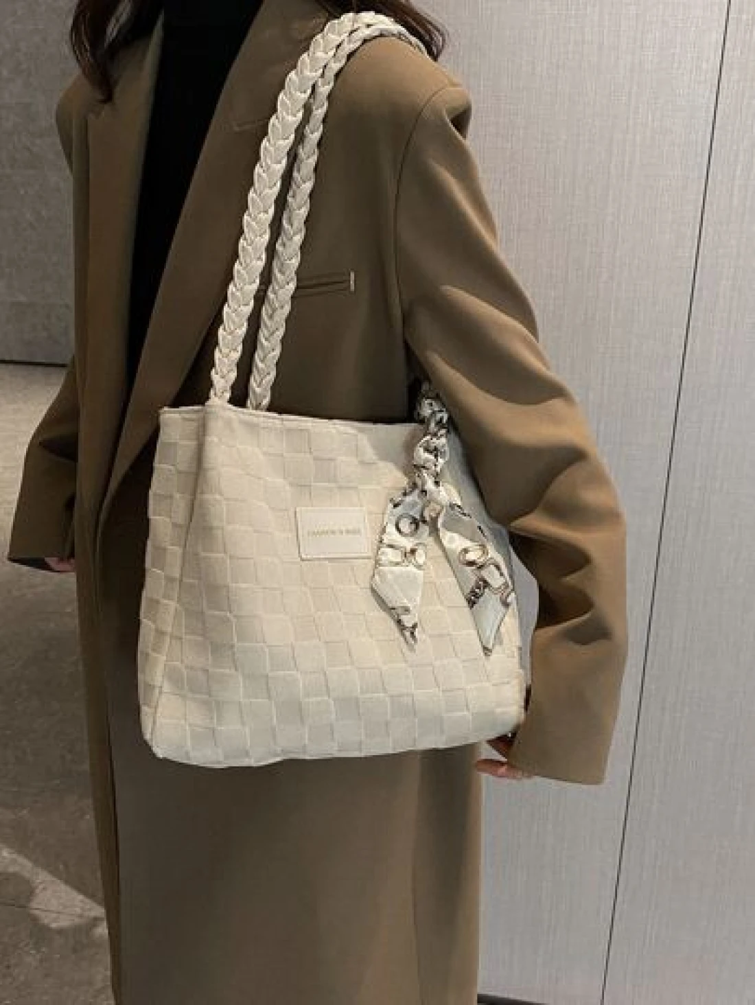 Scarf Letter Patch Decor Textured Square Bagtote Bag Handbag Shoulder BagCasual FashionGeometricLightweight Portable Large CapcityFor Girl For College Students For Woman For Women Rookies White Collar WorkersOutdoors Travel Outings Shopping Perfect For Office Work Business Commute