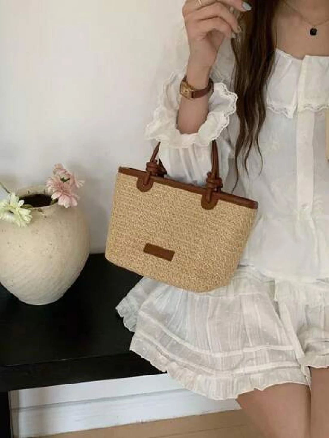 Summer Beach Vacation Straw Woven Handbag Tote Shoulder Bag Rope Knot Picnic Basket Bag Fashion For Women Girls Going Out Shopping Gift
