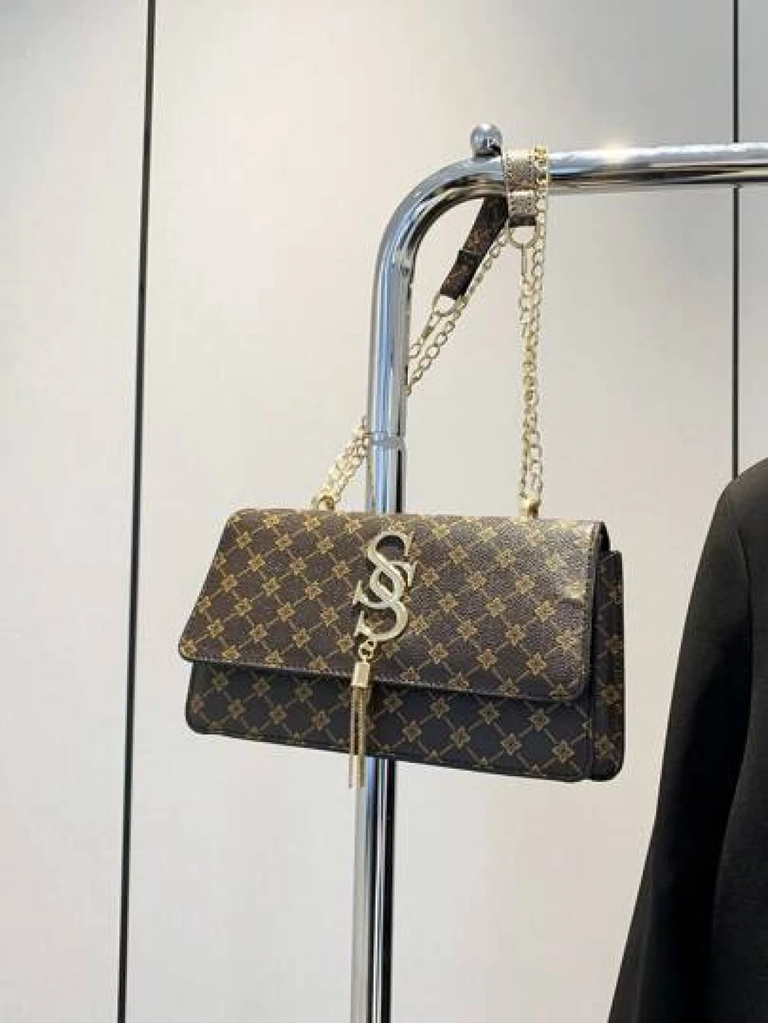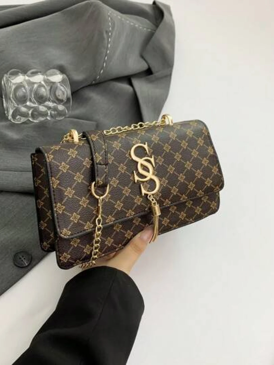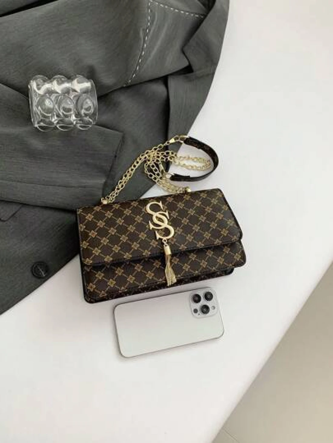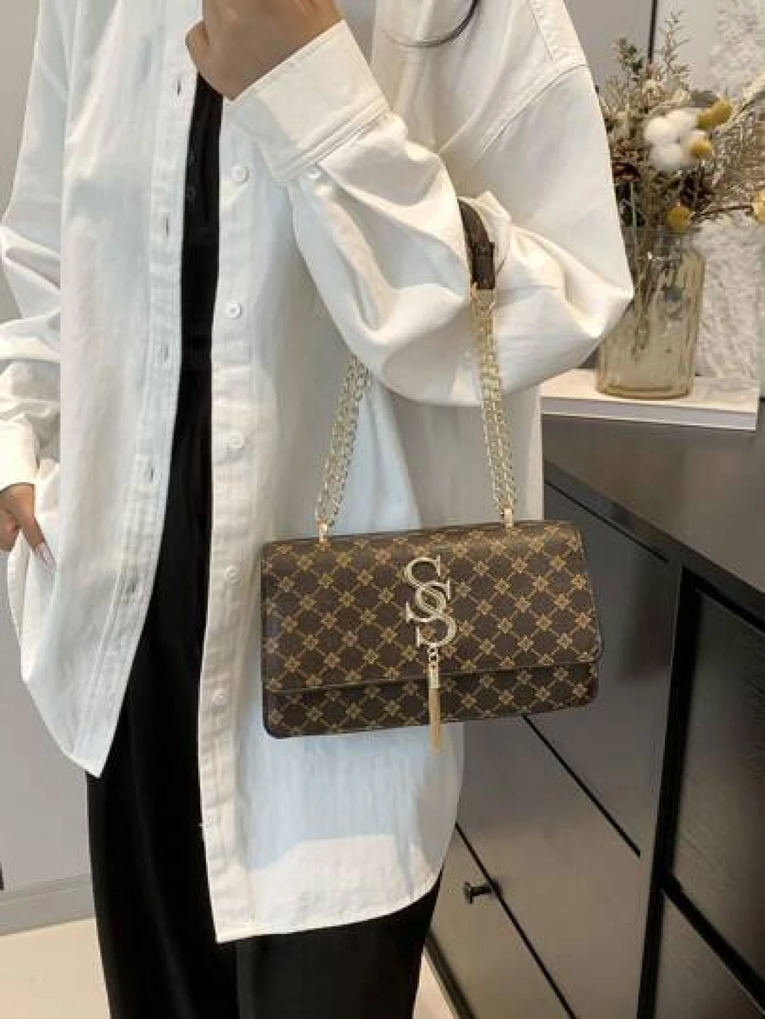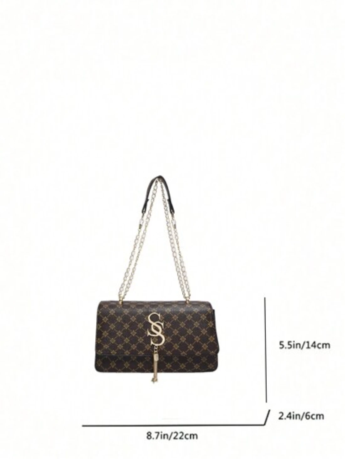 Plaid Rhombus Floral Pattern Flap Baguette Bag For Women Metal Tassel Letter Decor Shoulder Crossbody Handheld Multi Use Commute Bag