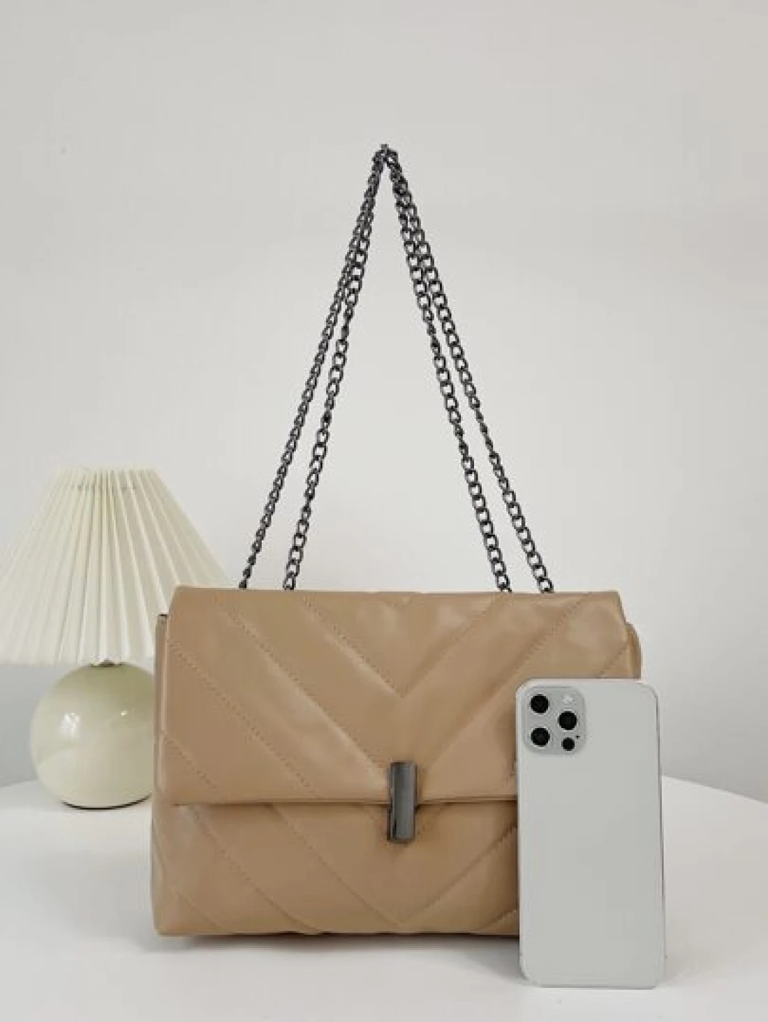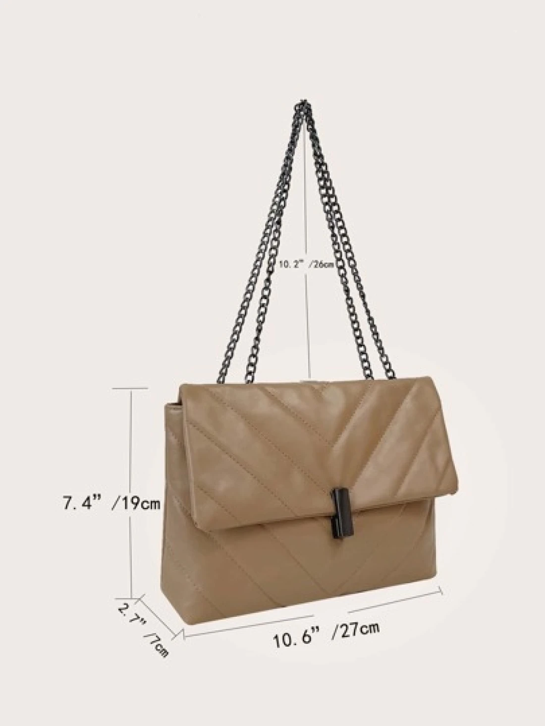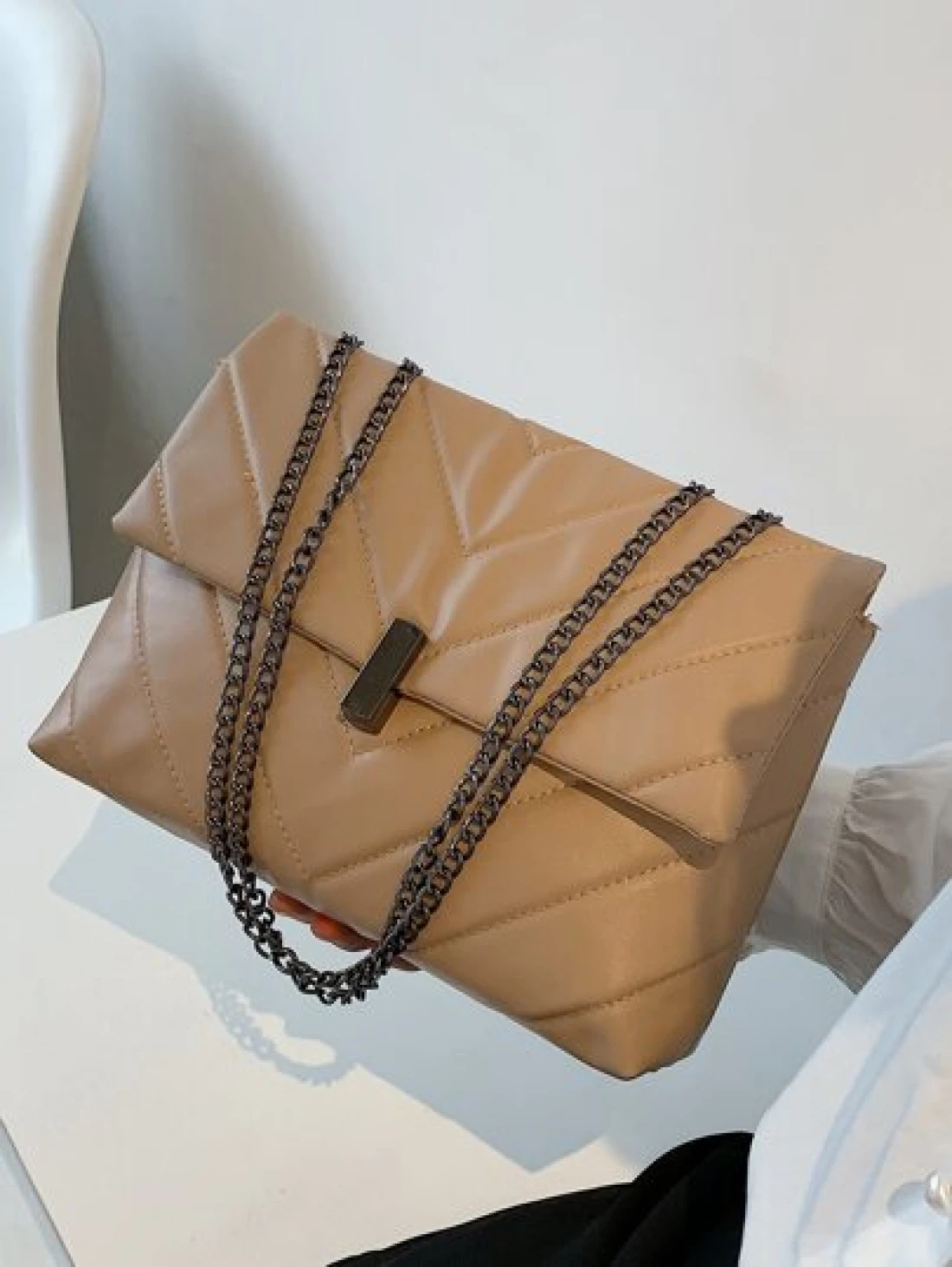1pc Solid Color PU Leather Elegant Minimalist Stylish Stitching Metal Chain Crossbody Shoulder Bag With Flap Lock Suitable For Daily Wear Shopping Gathering And Cosmetic Storage Etc