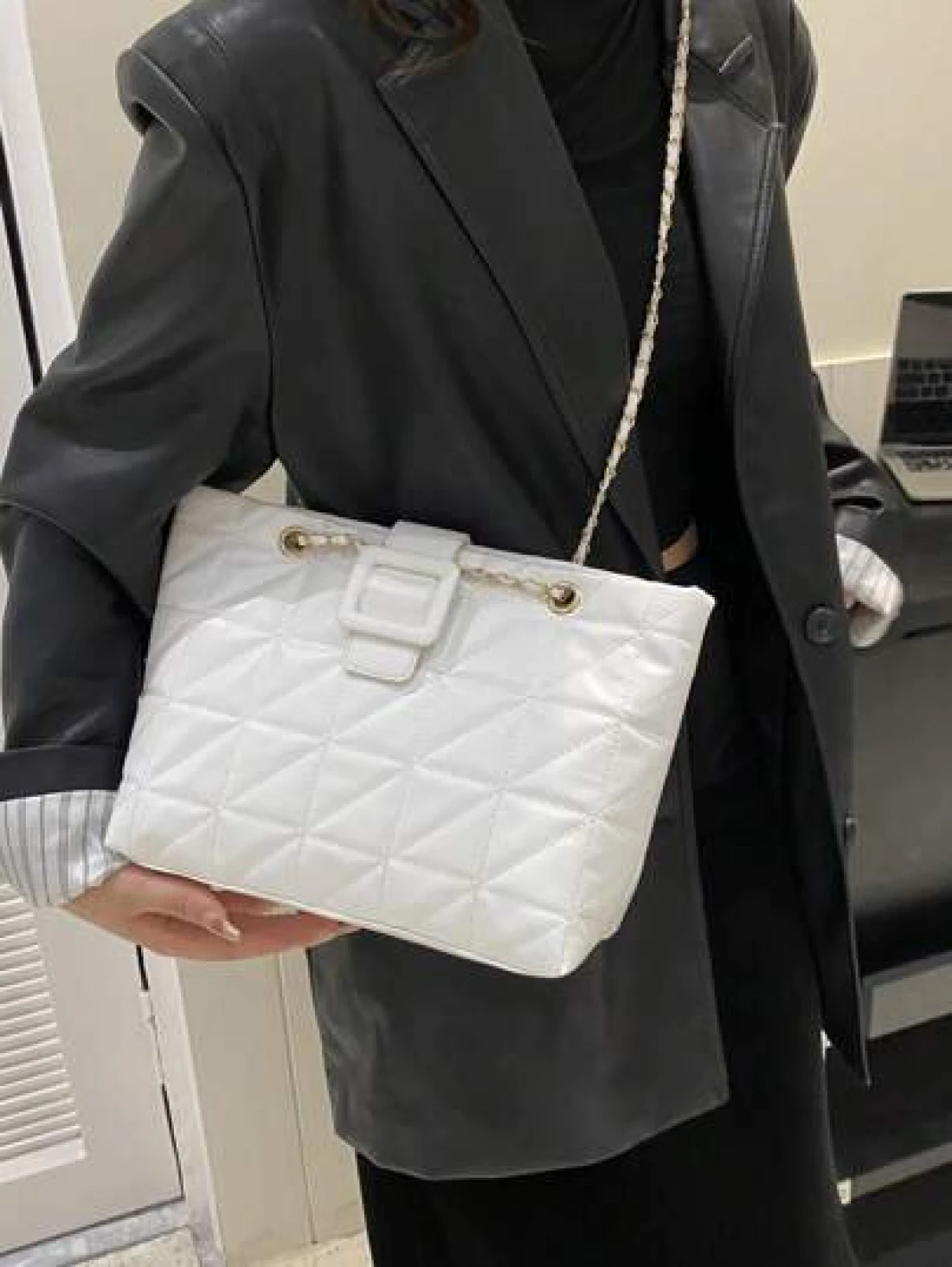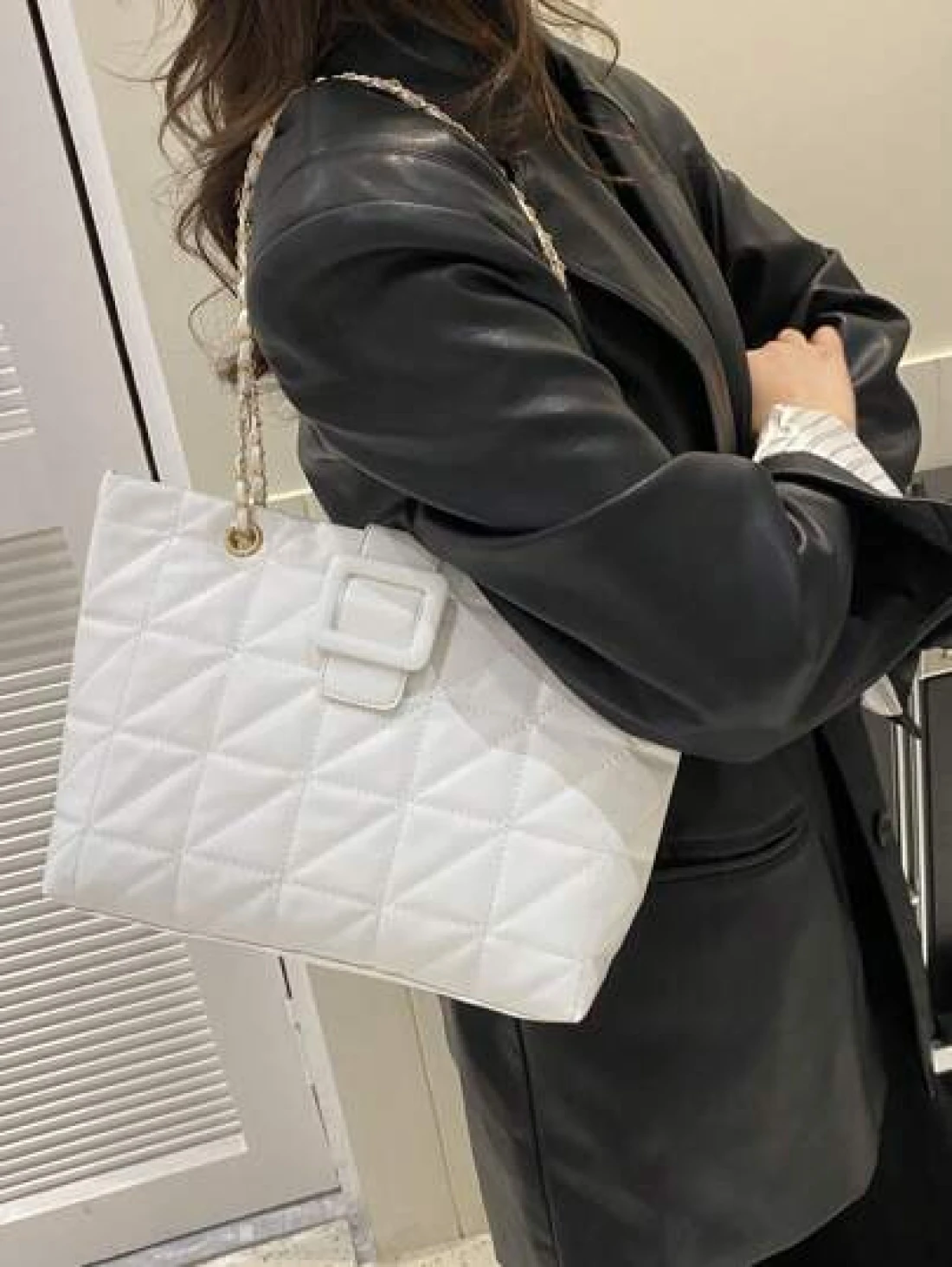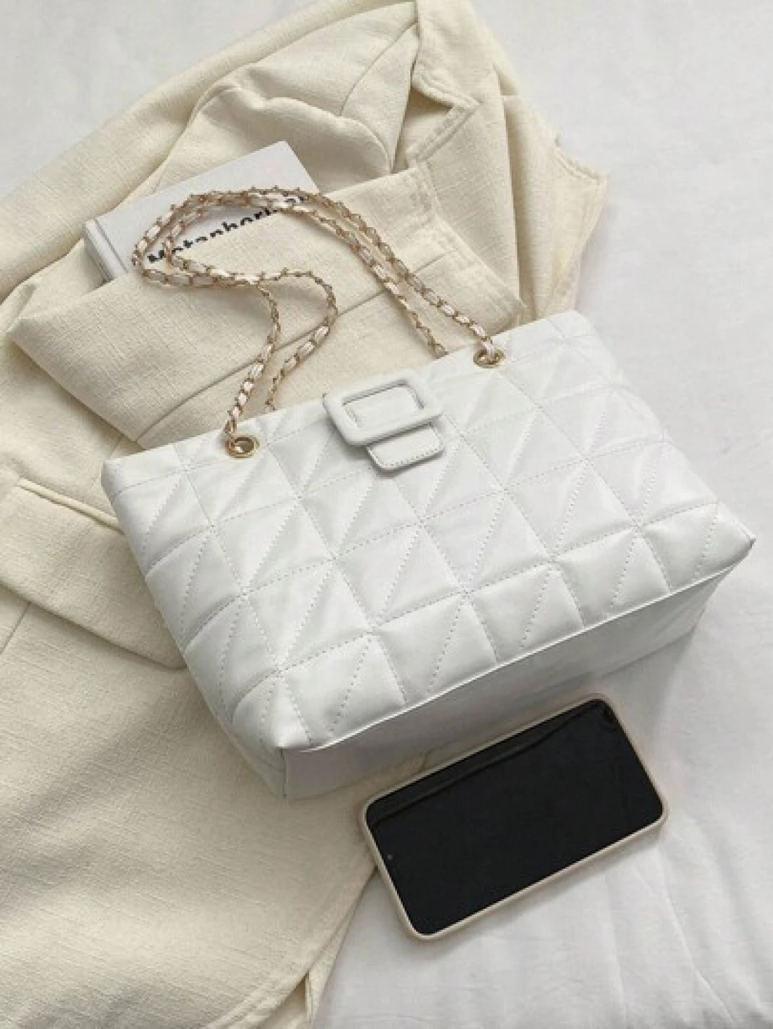 Elegant Solid Color Quilted Zipper Chain Shoulder Bag Fashion
