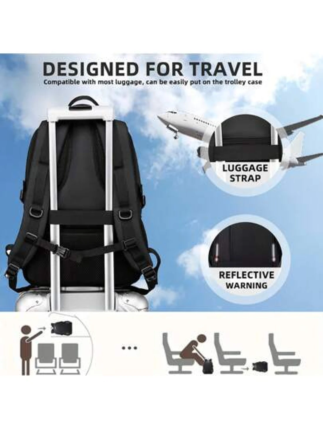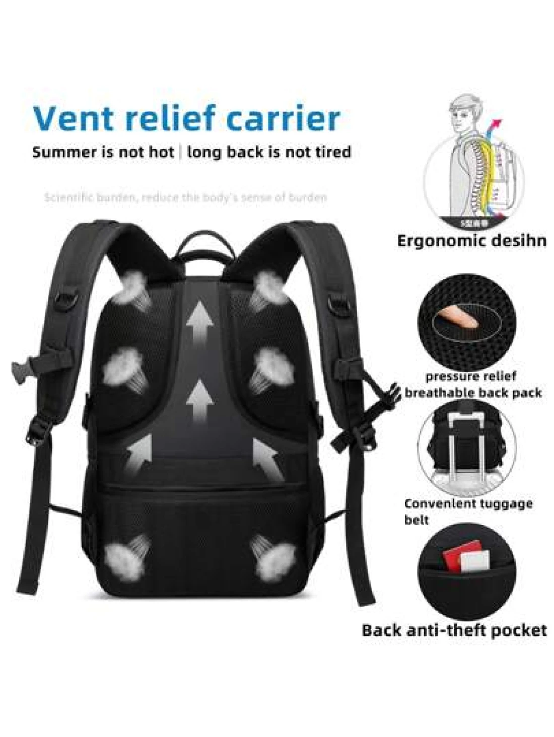 Black Water Resistant Large Capacity Anti Theft Backpack Suitable For Teenagers And Students School Supplies School Bag College Outdoor Activities Travel Hiking Work Business Leather Bag Christmas Holiday Thanksgiving Gifts Case The Sporty Life Bag Pack Backpacks Travel Must Haves Large Bag Spring Travel Backpack Laptop Bag Bags For Travel Travel Bag Big Bag Carry On Backpack Airline Approved Travel Essentials Graduation Camping Backpack For Travel