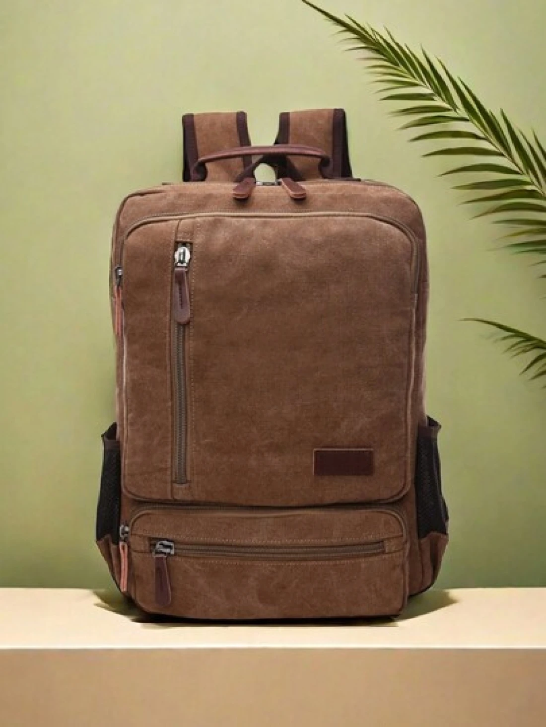 1pc Fashionable Canvas Backpack With Large Capacity And Multiple Pockets Wear Resistant Leather Handle Suitable Students Outdoor Travel Business Trip Laptop Backpack Commute Book Bag School Bag Portable Backpack Vacation Side Bag Gifts Camping Summer Brown Bag Back To School Laptop Case The Sporty Life Men Bag Pack Backpacks Travel Must Haves Large Bag Spring School Supplies School Backpack Vintage