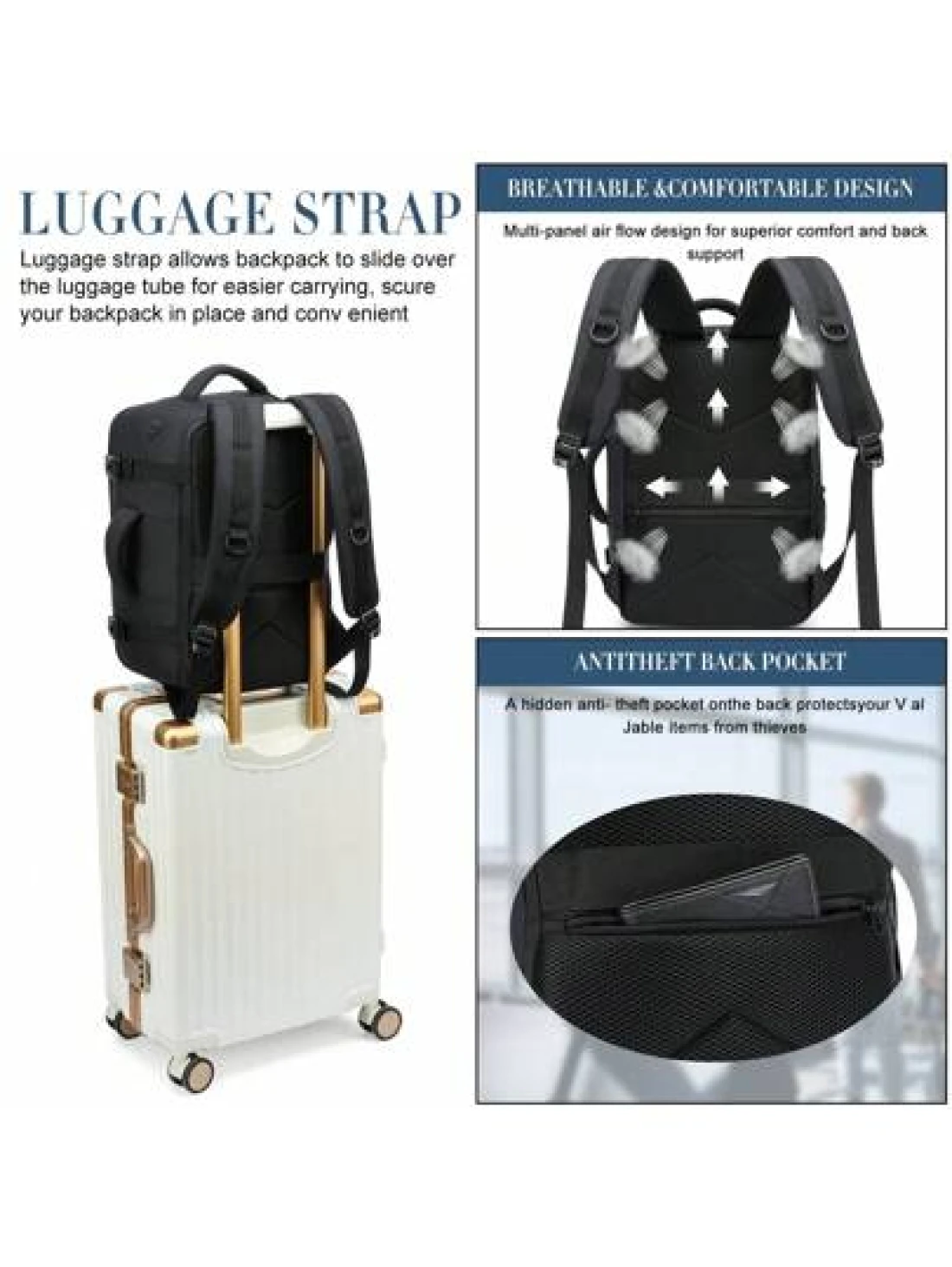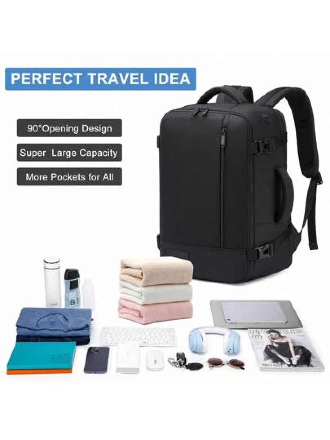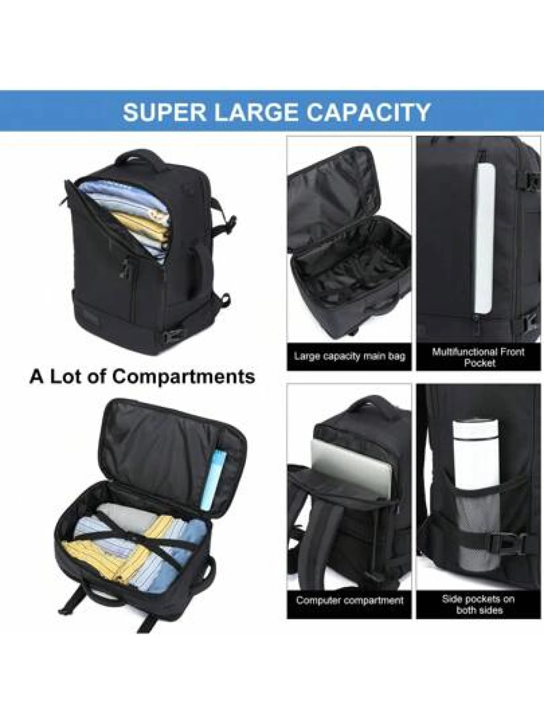 EZUOLA 40x20x25 Cm Handbag Luggage Lightweight Waterproof Travel Bag With Laptop Compartment Suitable For Men Women Students Business People School Gym Travel Business Black And Blue Holiday Essential