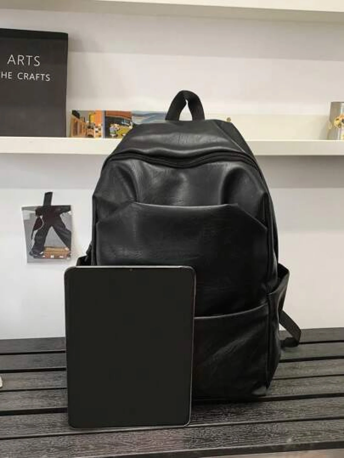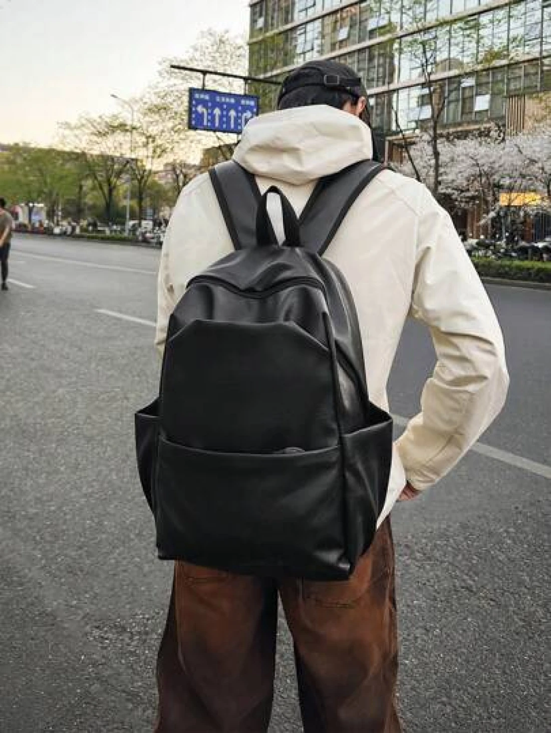 Men s Simple Functional Backpack Large Capacity Water Repellent Oil Wax Leather Material Multi Compartment And Multi Compartment Wear Resistant Backpack Sponge Buffer Zone On The Back Widened Comforta