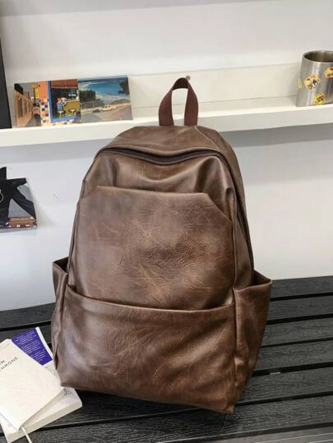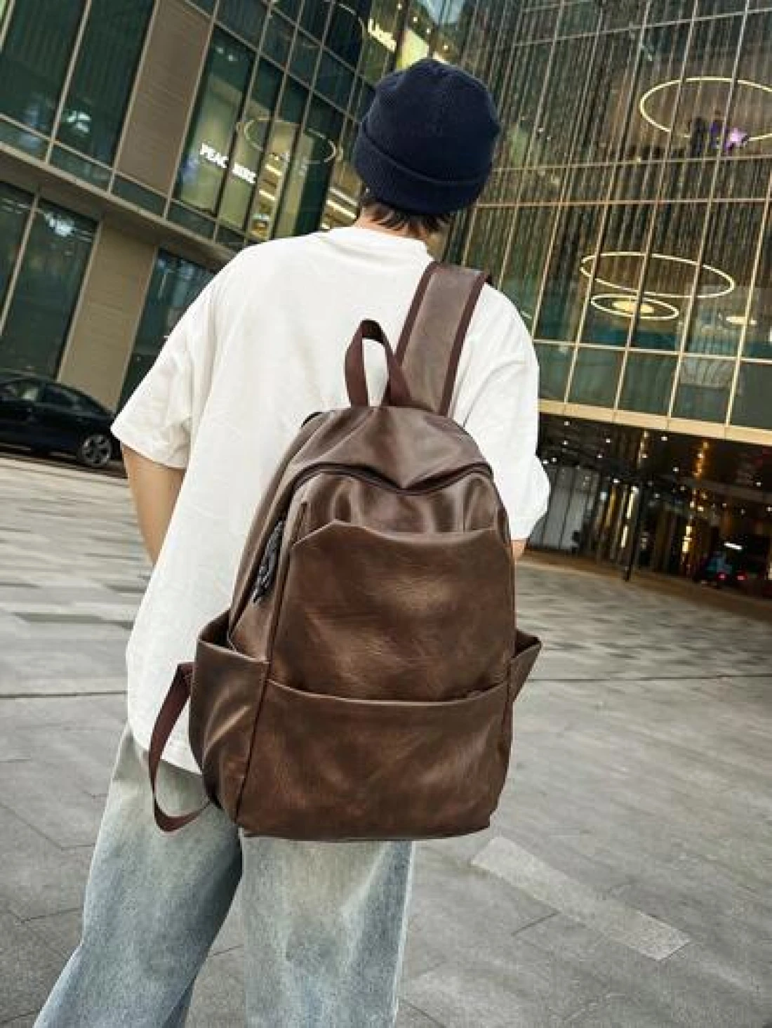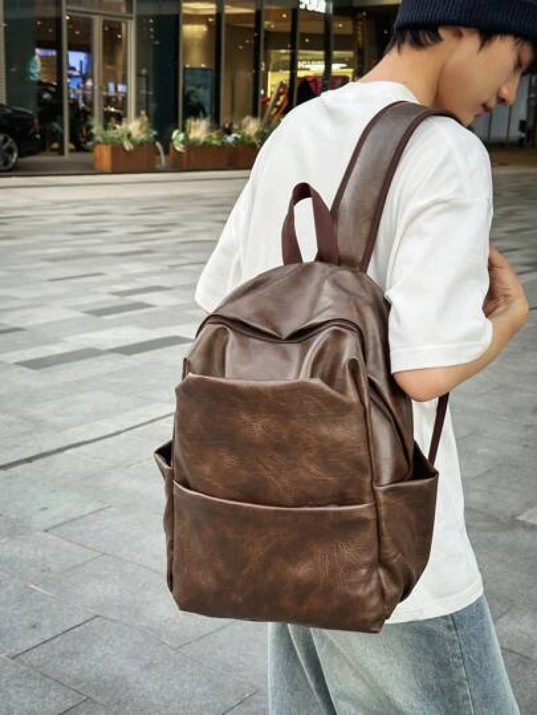 Men s Simple Functional Backpack Large Capacity Water Repellent Oil Wax Leather Material Multi Compartment And Multi Compartment Wear Resistant Backpack Sponge Buffer Zone On The Back Widened Comfortable And Load Reducing Shoulder Straps Suitable For Daily Commuting Business Trips Students Returning To School Etc