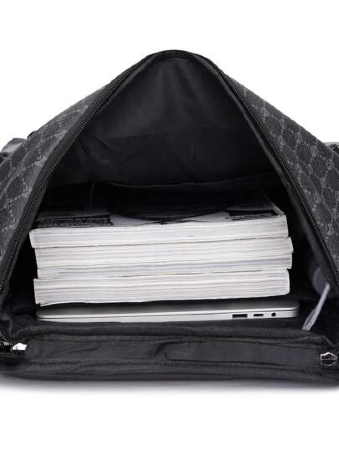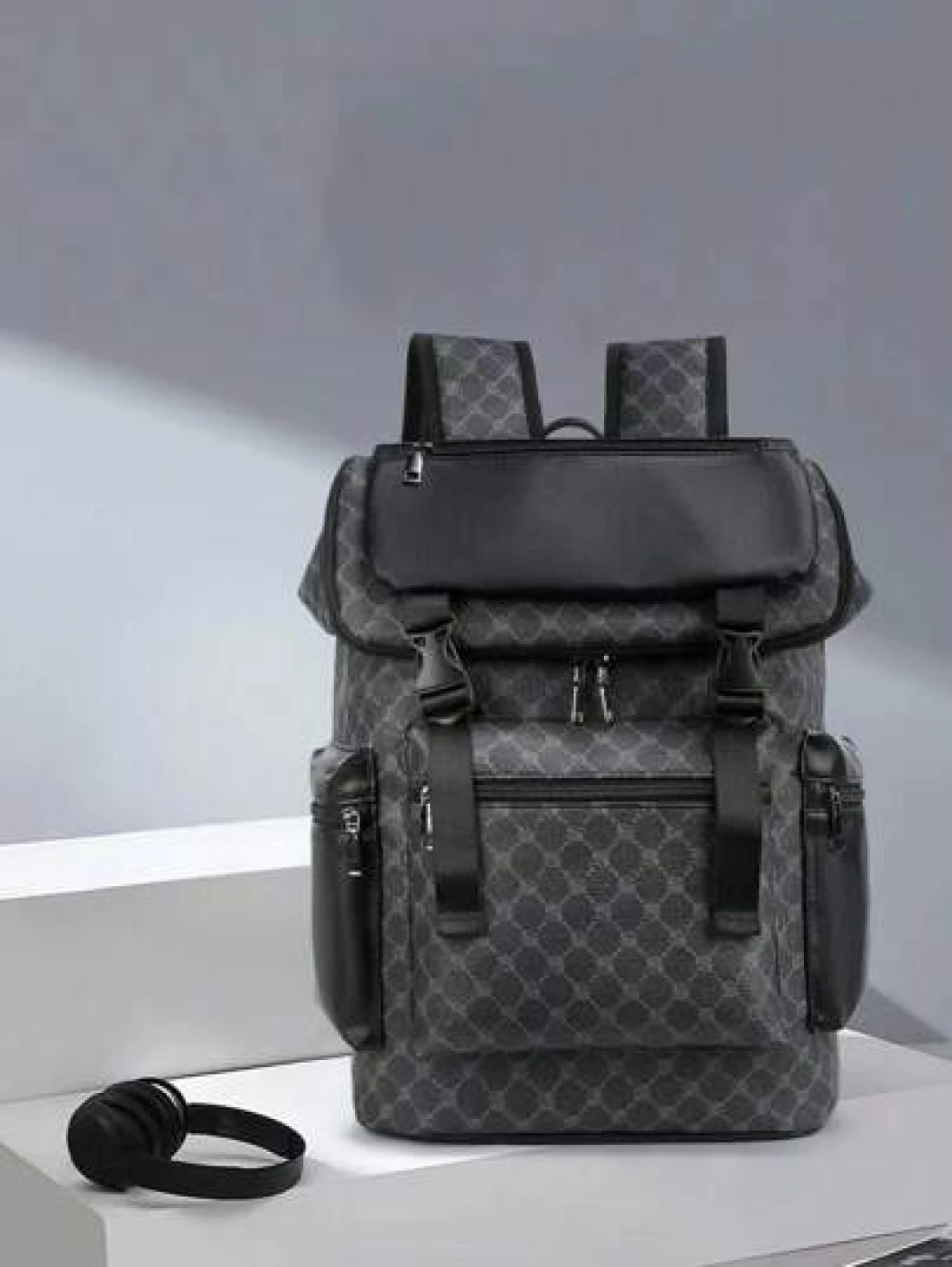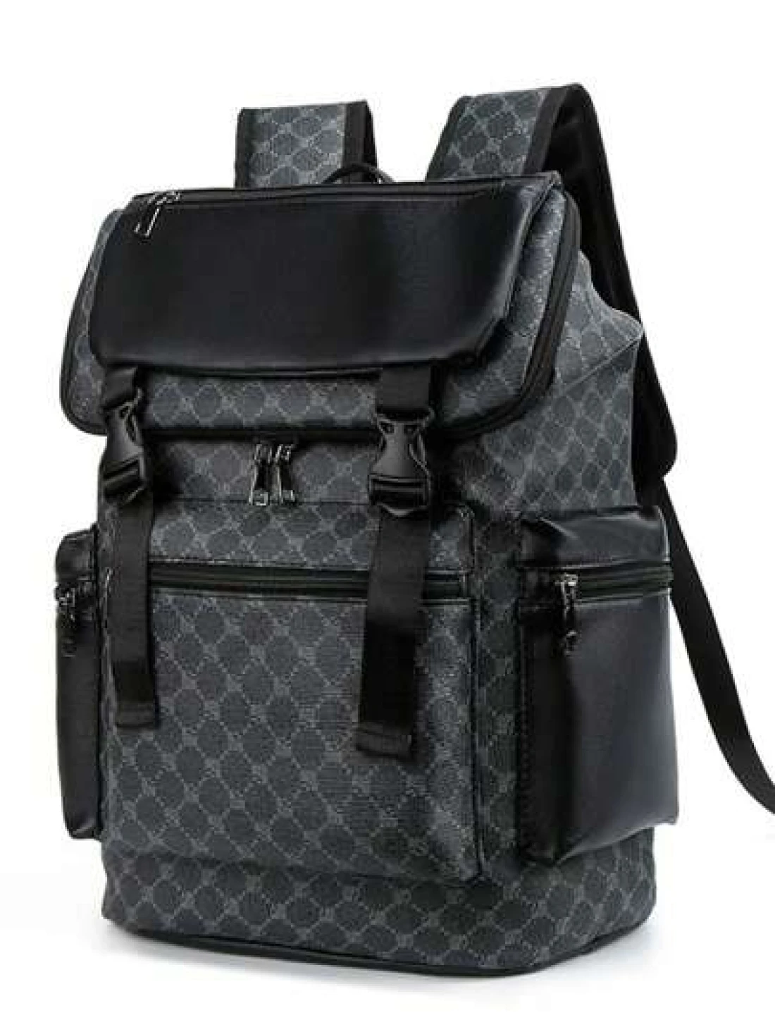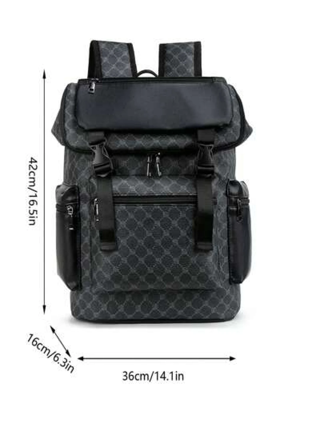 1pc Men Fashion Backpack Casual Daypack With Printing Large Capacity Travel Laptop Rucksack Hiking Backpack With Zipper PVC Black Bag Gift For Men Men s Accessories