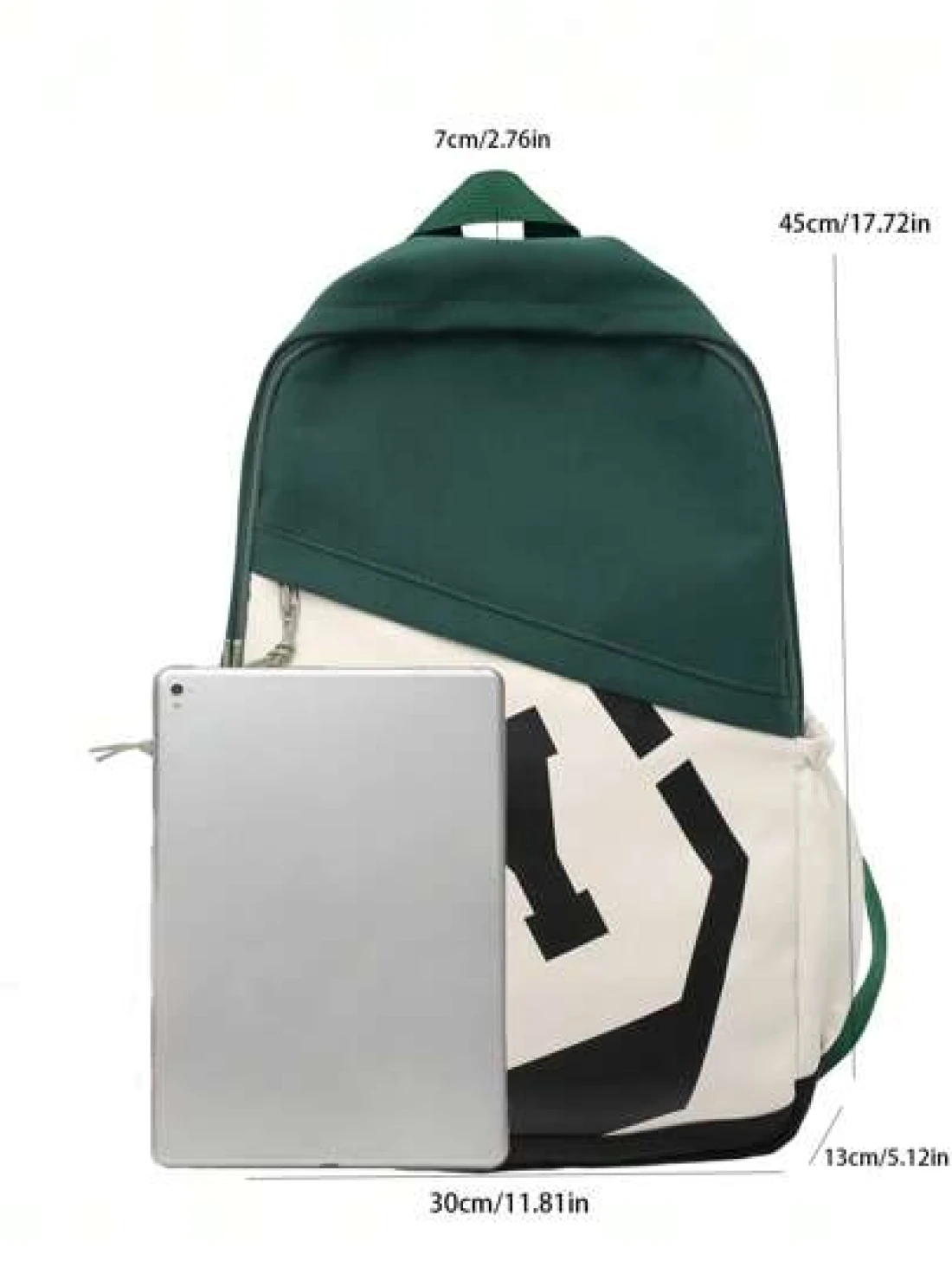 1pc Nylon Versatile Fashionable Backpack With Large Letter Graphic Colorblock Design Spacious Water Resistant For Men Suitable For School Commuting Traveling Gathering As Gift