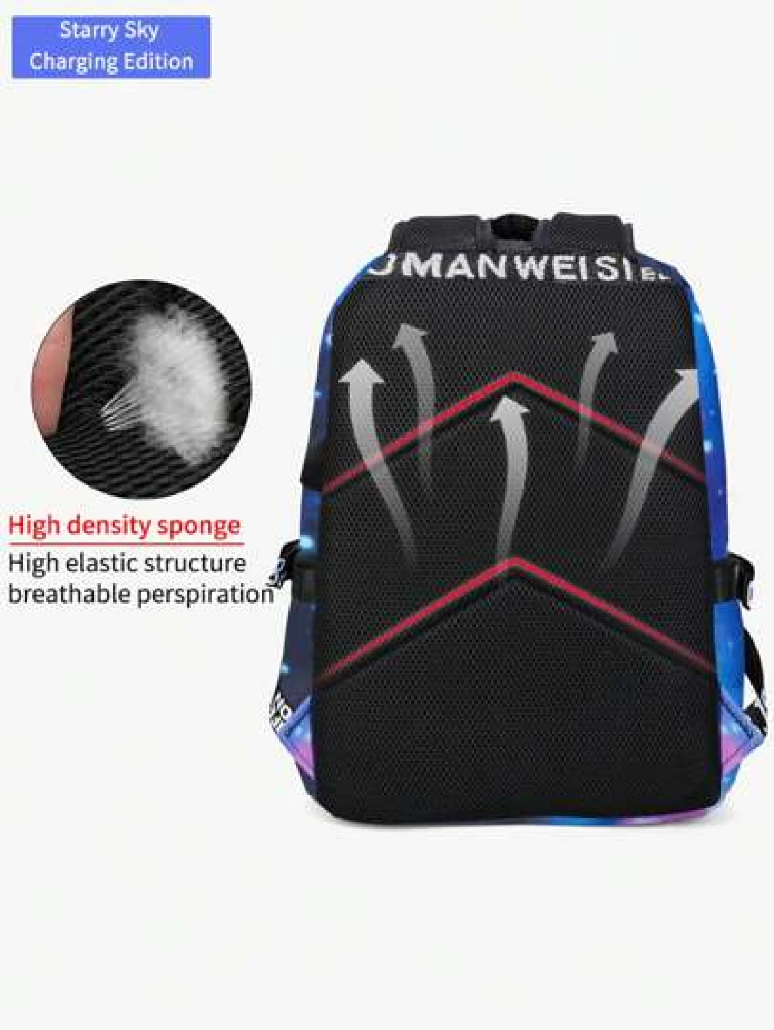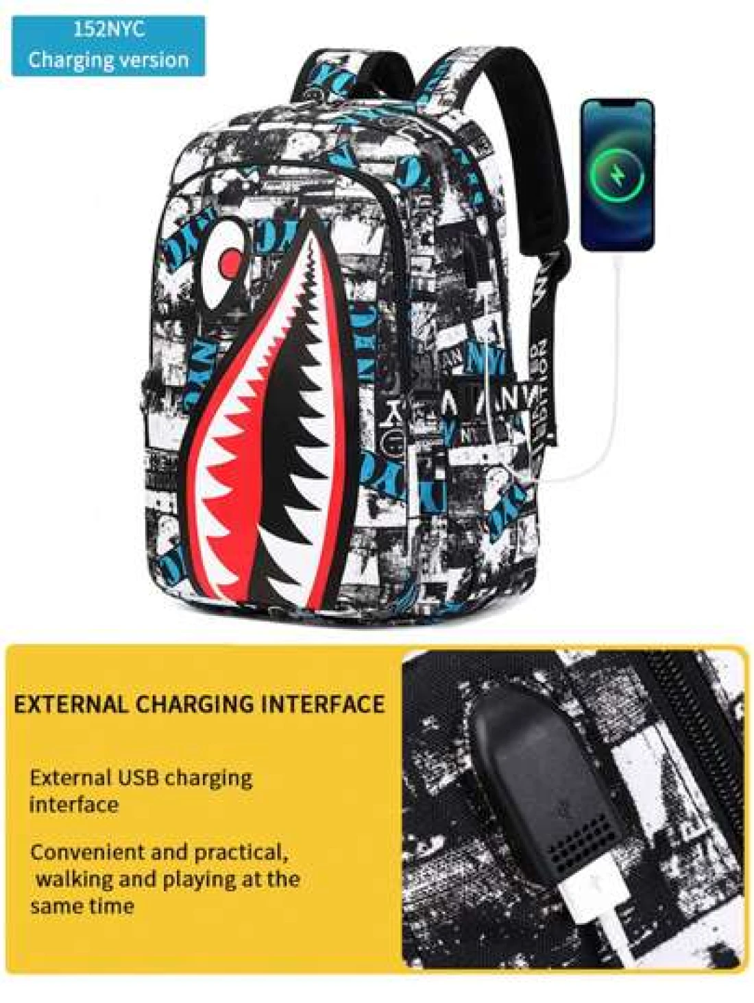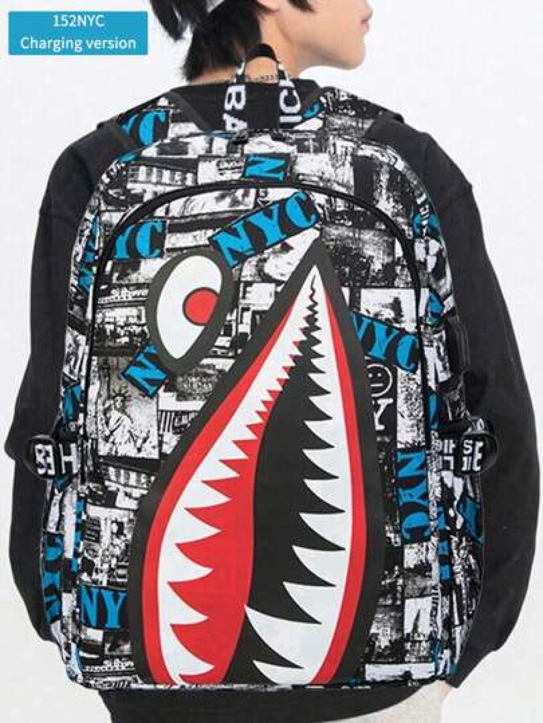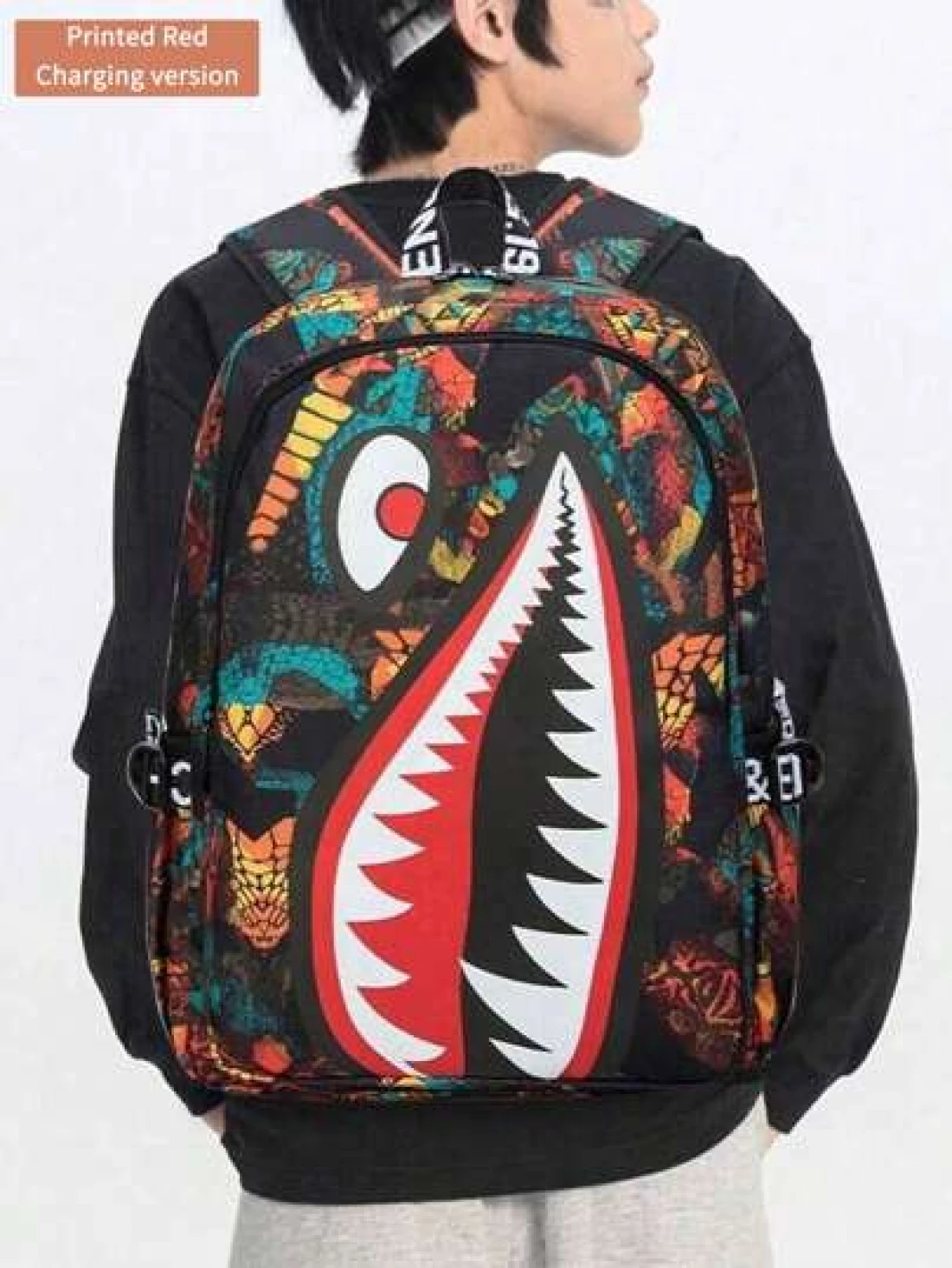 Men s Fashionable Starry Sky Print Backpack Stylish Shark Mouth Print Bookbag With Random All Over Print USB Charging Port Large Capacity Lightweight Nylon Travel Bag University Commute Backpack Fits 14 Laptop Adjustable Shoulder Strap Personalized Gift For Men All Webbing Print Letters Random
