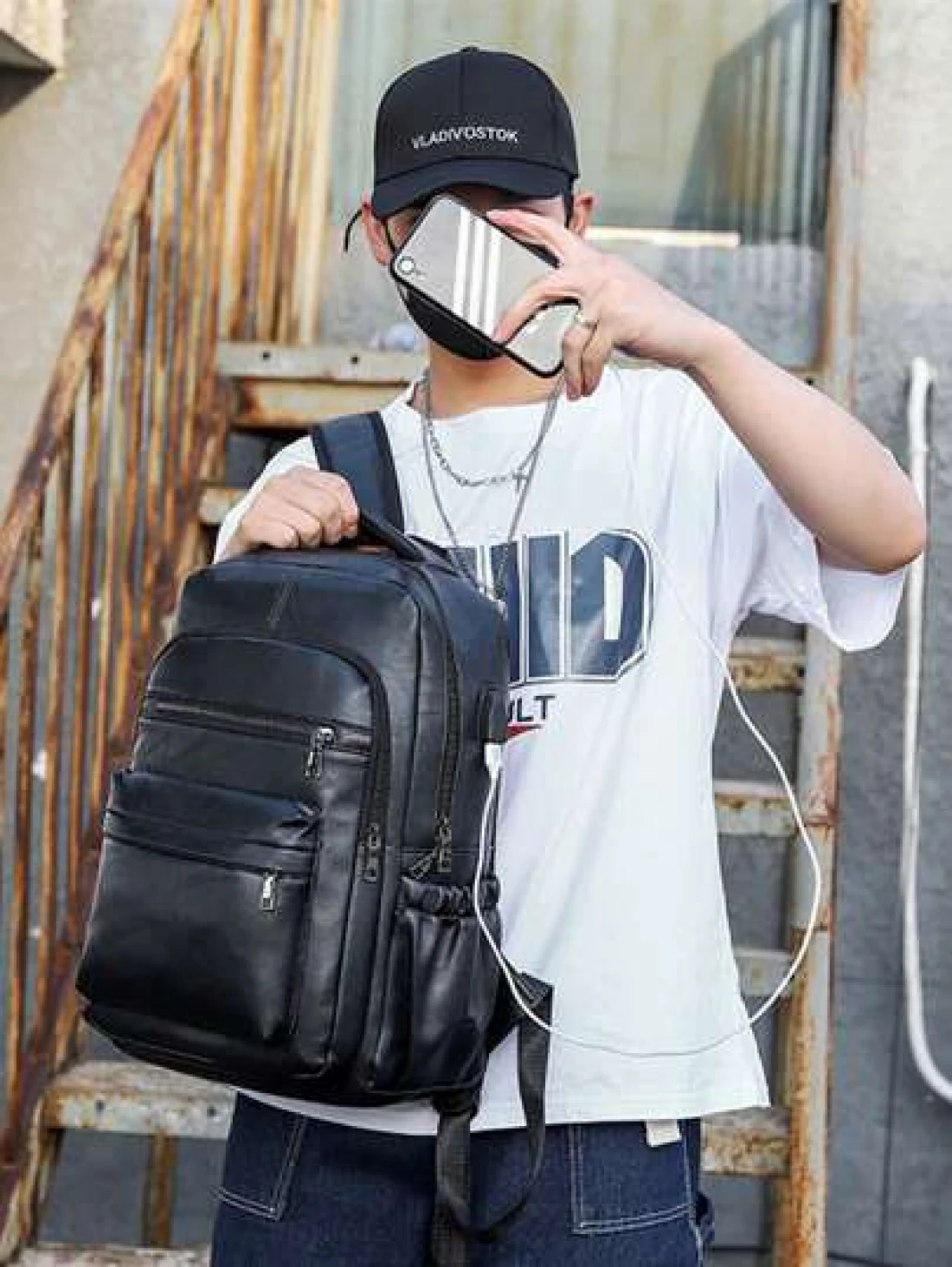 Usb Charging Backpack Men Pu Large Laptop Backpack Male Schoolbag Schoolbag For Travel College School Casual Laptop Backpack Commute Lightweight Leather Vintage Vacation Sport Waterproof Portable Lapt