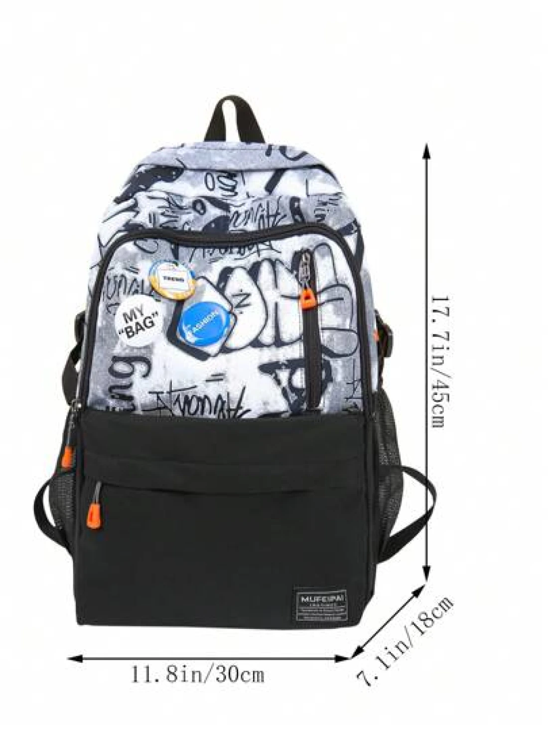 Fabric Multi Pocket Contrast Color Unisex Fashion Backpack Large Capacity Travel Bag