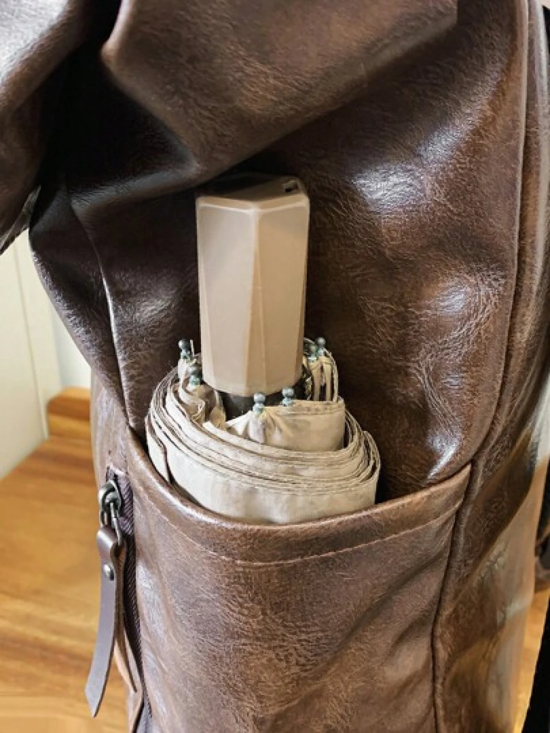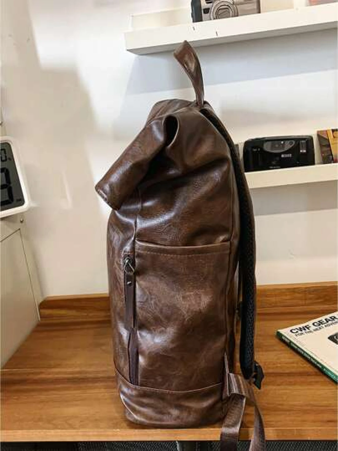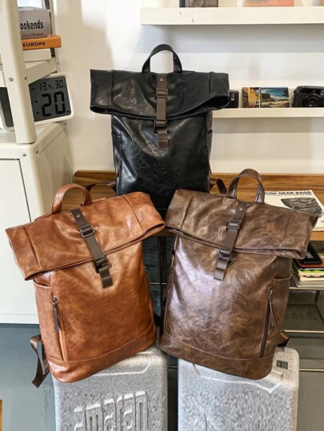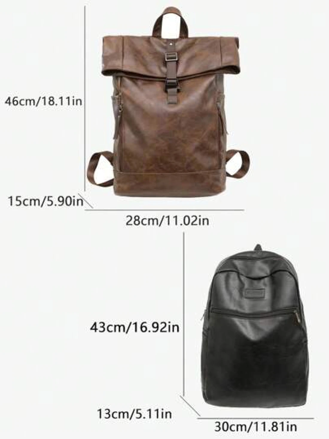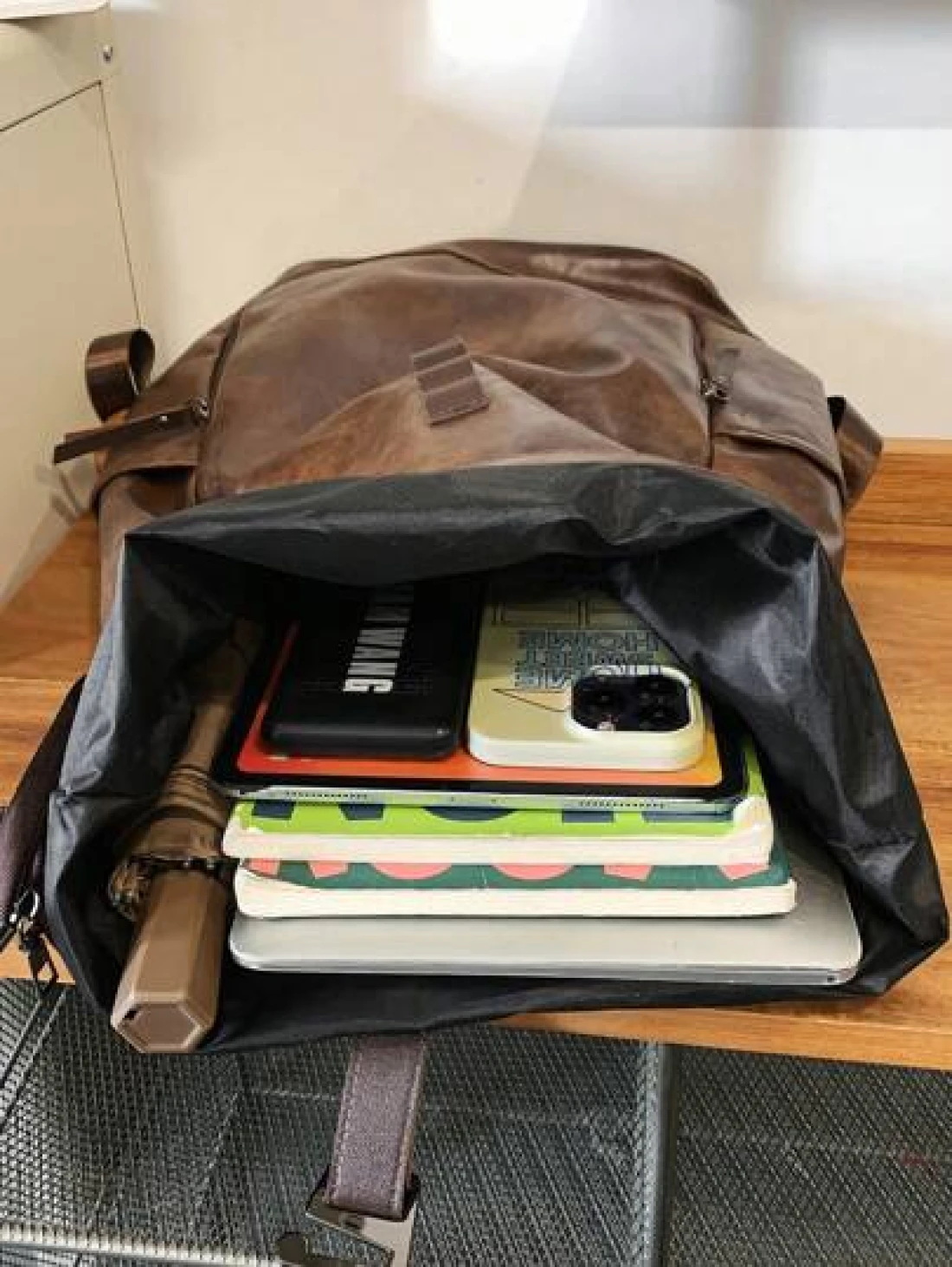Backpack Flap Backpack Leather Backpack Large Capacity Oversized For Business Office Supplies Outdoor PU Leather Business Vintage Solid Color Men Gifts