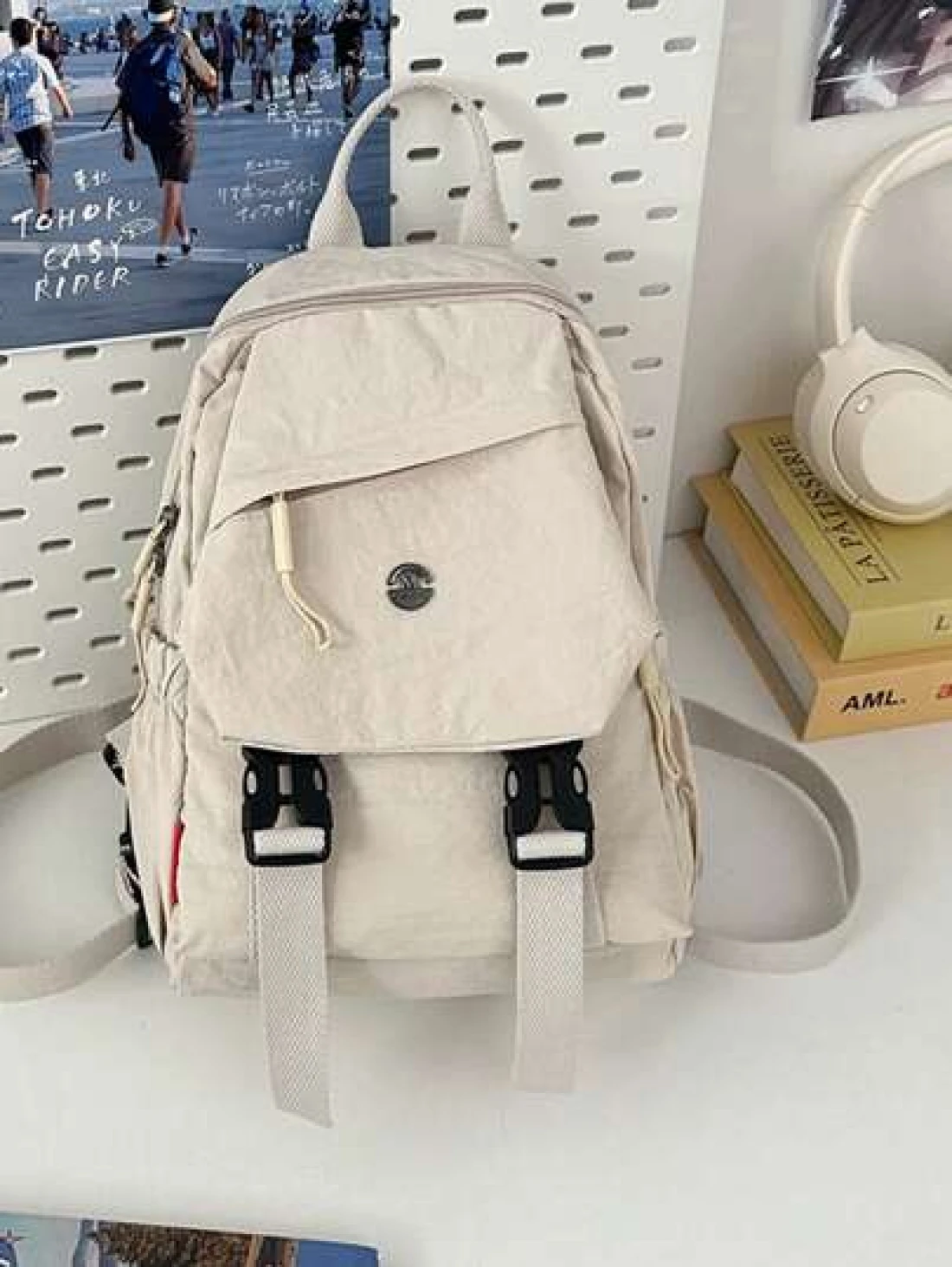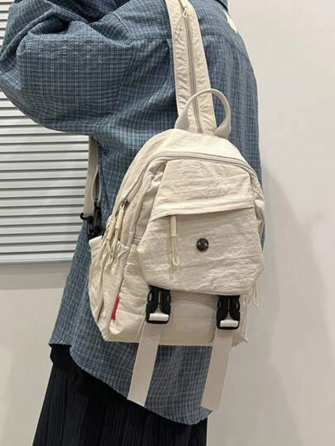 Solid Color Nylon Mini Backpack Unisex Multipurpose Handheld Shoulder Bag Suitable For College Students Zipper Closure Daily Wear