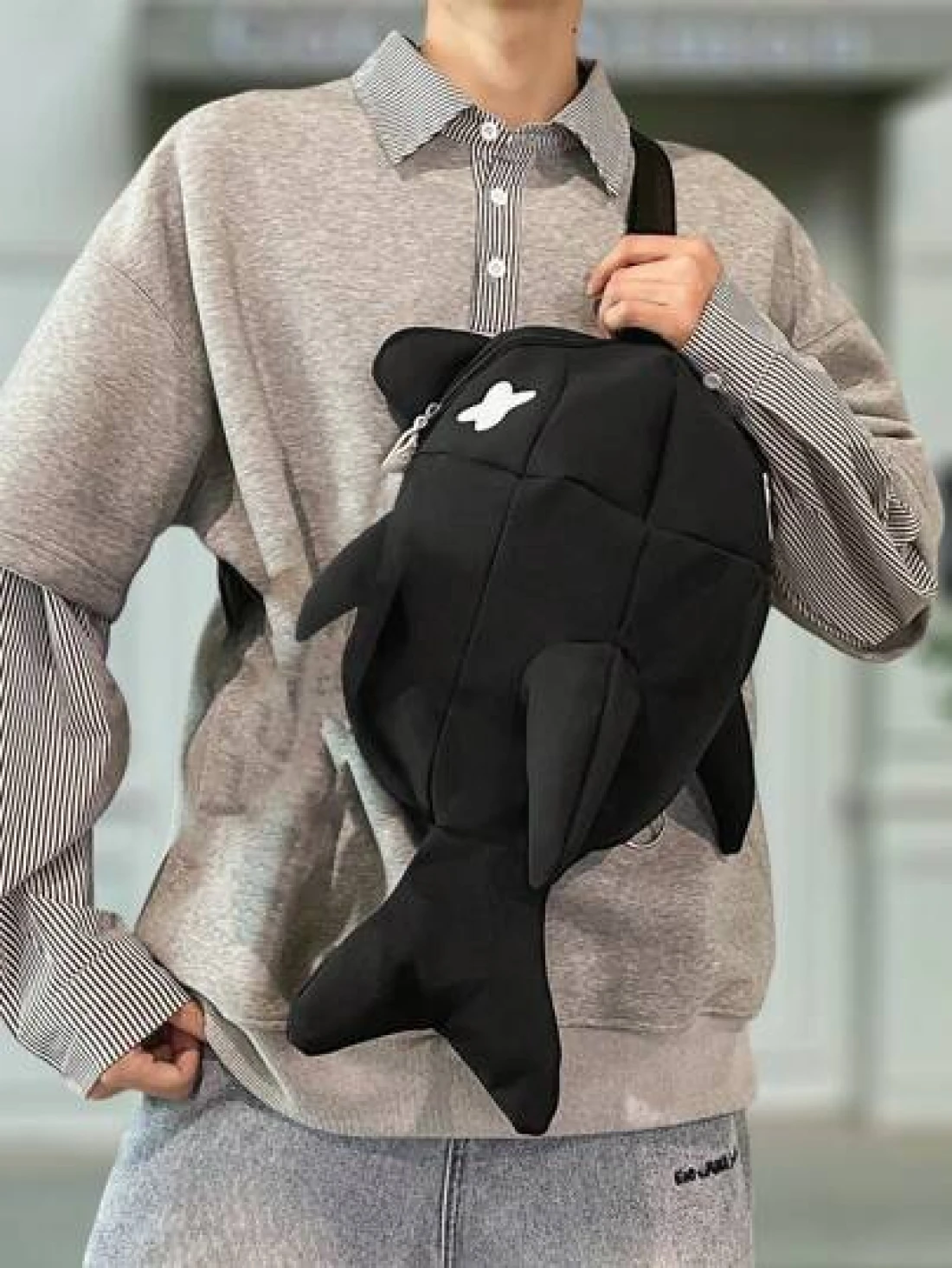 peach tree Unisex Shark Backpack Versatile Casual Shoulder Bag For Couple Suitable For High School College Students Traveling Sports Backpack For Dorm School Supplies Multi Pocket Messenger Bag Autumn