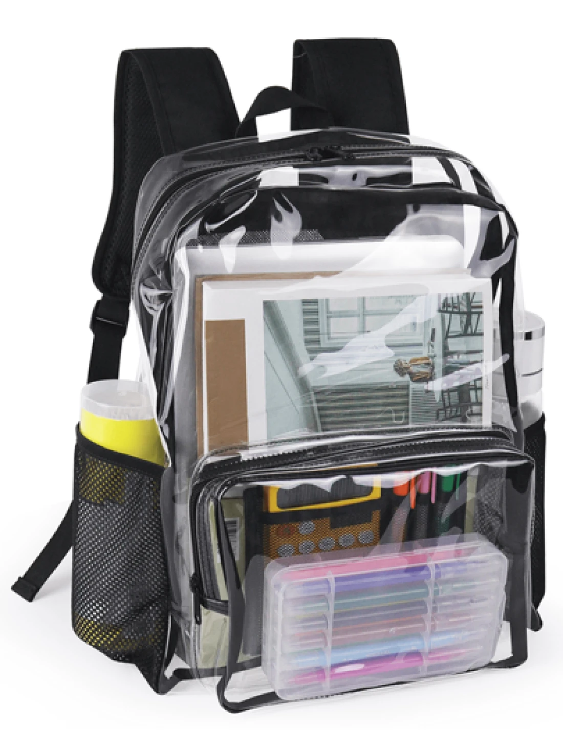 1pc PVC New Transparent Backpack With Mesh Pocket Large Capacity Simple Schoolbag Casual Fashion Backpack Daily Use Commuter Multifunctional Dormitory Essential Schoolbag Travel Holiday Thanksgiving G