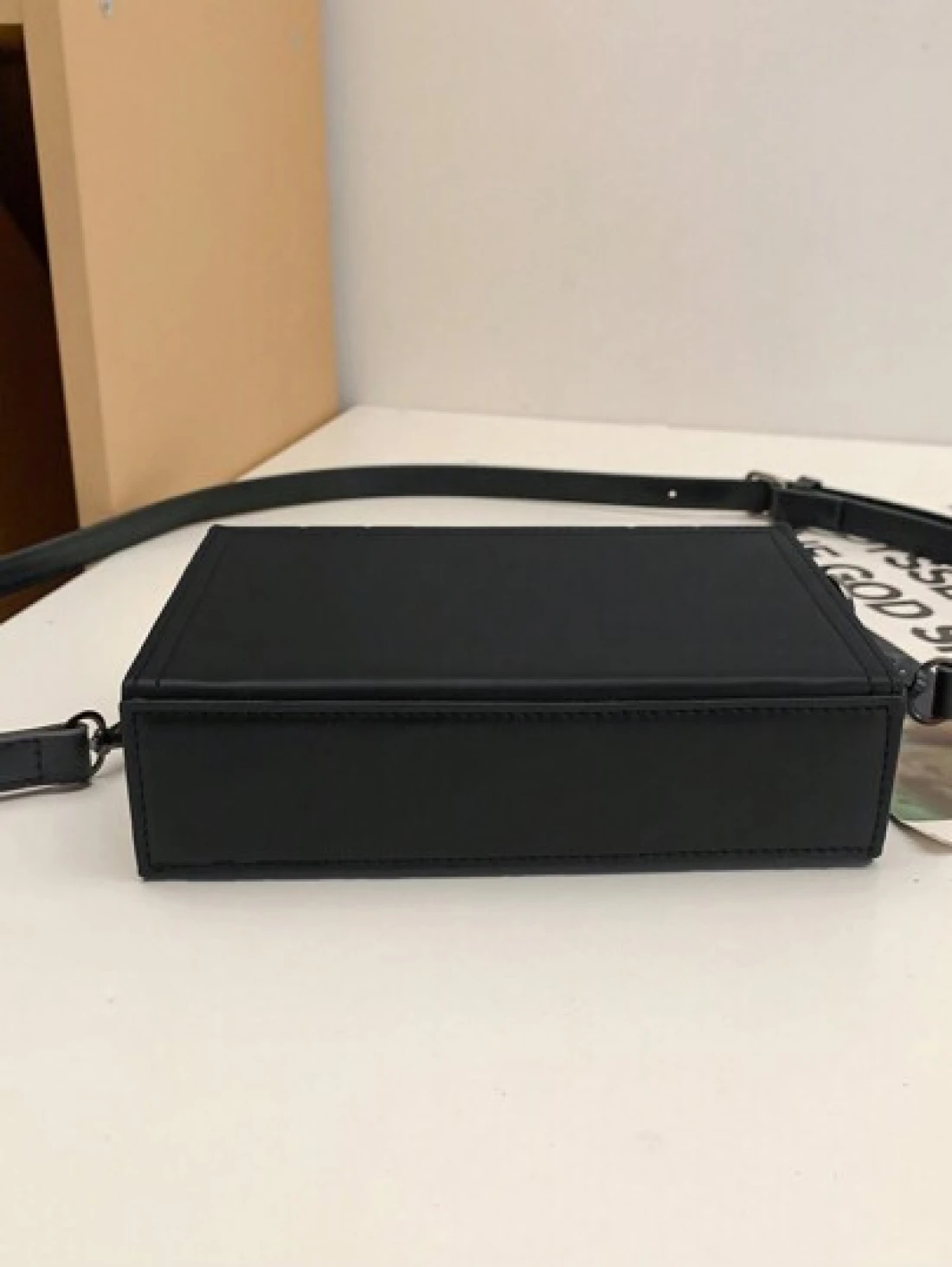 peach tree 1pc Minimalist Solid Color Adjustable Strap Closure Lightweight Water Resistant PU Holiday Shopping Essential Shoulder Bag Peach Tree Black Bag Travel Essentials Holiday Essentials Bag For