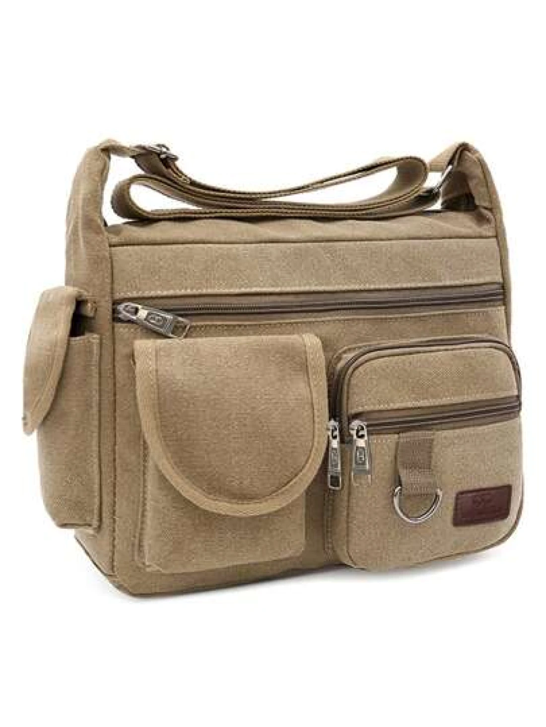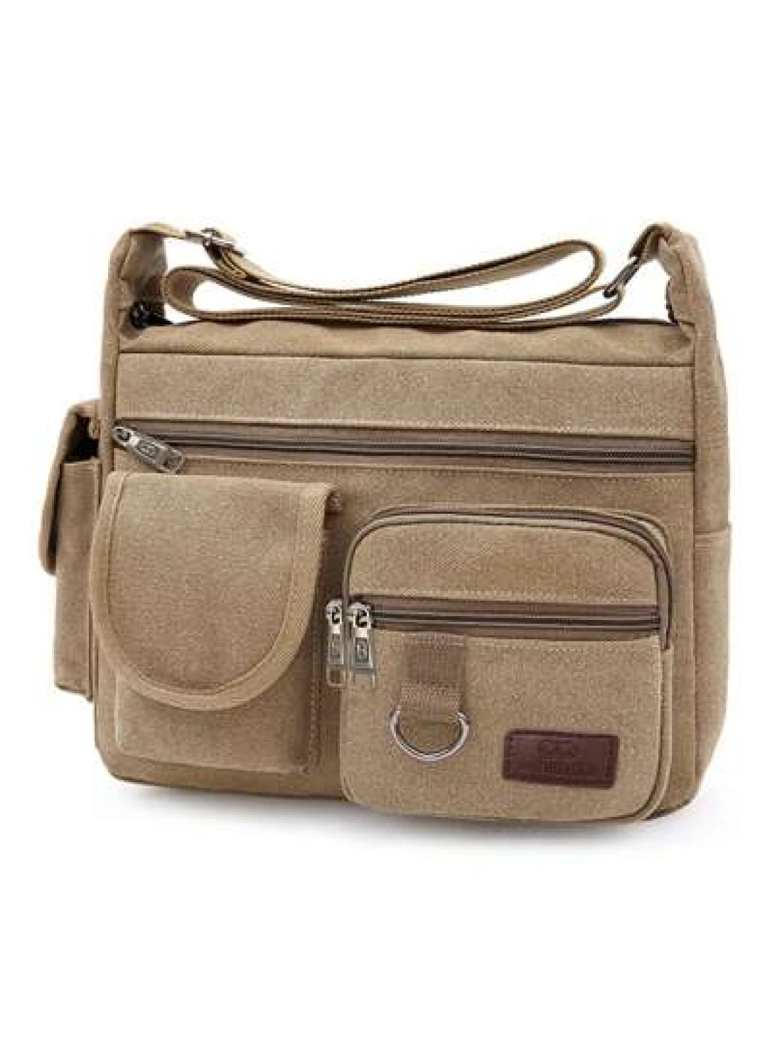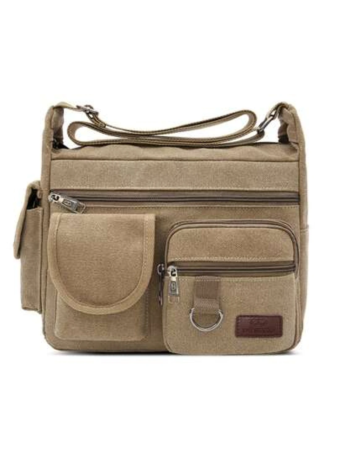 1Pc Khaki Canvas Shoulder Bag Large Capacity Multilayer Messenger Bag Student Travel Shoulder Bag Crossbody Bag Sling Bag For College School Lightweight Multifunctional Dad College Bag Freshman Multi