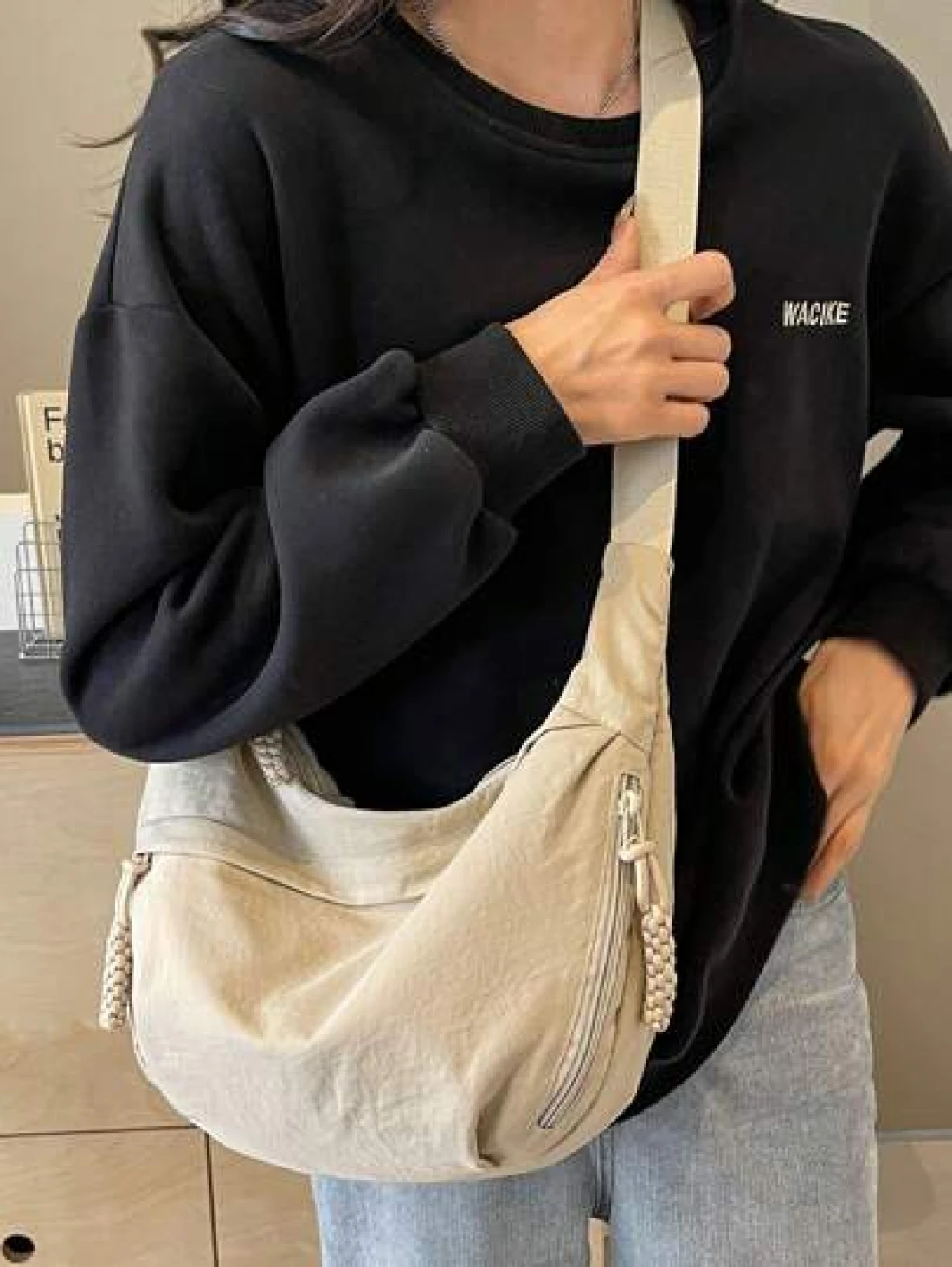 peach tree 1pc Peach Tree Crescent Moon Crossbody Bag Versatile Casual Large Capacity Adjustable Shoulder Strap Multi Pockets Vintage Lightweight Water Washed Nylon Material Christmas Men Bag Vacation Travel Essentials Dad Gifts Side Bags For Men Holiday Essentials Bag For Men Camping Sling Bag For Men Summer Back To School Shoulder Bag Summer Bag Spring Break White Bag Pack Cross Body Bag School Supplies Sling Bag Side Bags For Men New Life Items For Students Men Essentials Fashion Men s Bags