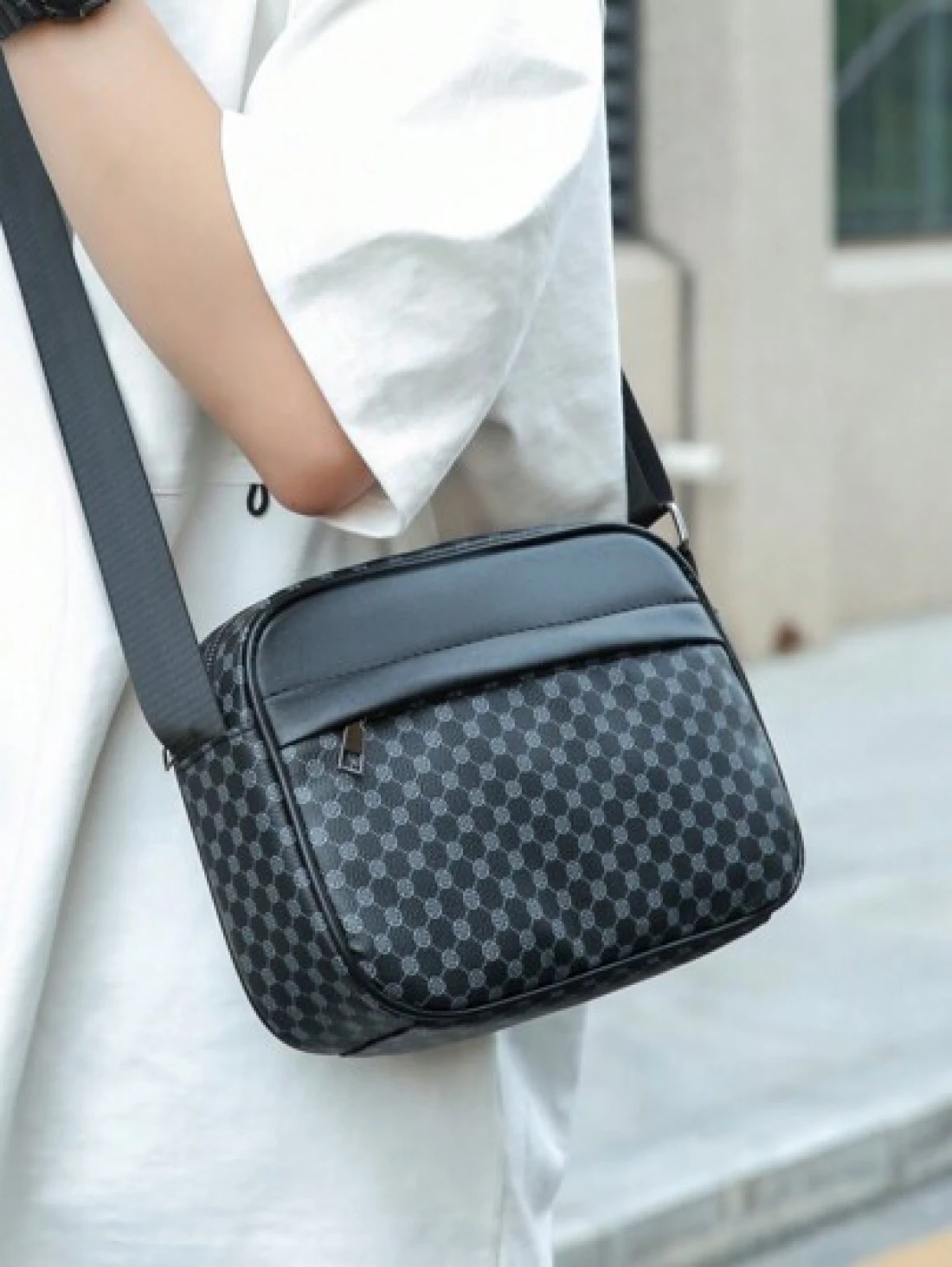 New Black PU Printed Sophisticated Men Sling Bag Dark Style Small Pouch Bag For Business Commute Travel Phone Holder Fashion Casual Outdoor Fitness Cycling Street Shoulder Bag Gift Adjustable Strap Zipper Closure Christmas Winter Retro Bag Vintage Vacation Christmas Gifts Travel Essentials Boyfriend Gifts Valentine Day Black Bag Holiday Essentials Bag Camping Sling Bag Stickers Bags Back To School Valentine Gifts Vintage Gift Bag Pack Cross Body Bag Spring Vintage Bags School Supplies Purse Side Bags For Men New Life Items For Students Men Essentials Purse Essentials Fashion Men s Bags Luxury Bags