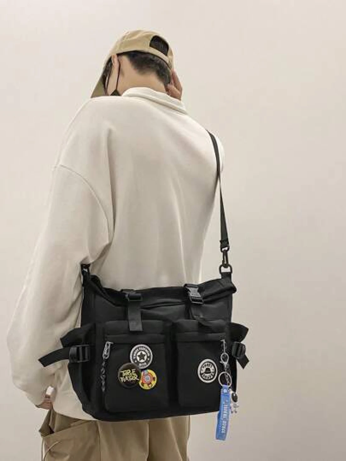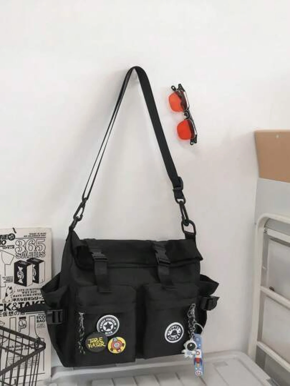 Lightweight Business Casual Medium Messenger Bag Release Buckle Decor With Bag Charm Badges For Teen Girls Women College Students Rookies White collar Workers Perfect for Office College Work Business Commute Outdoors Travel Outings