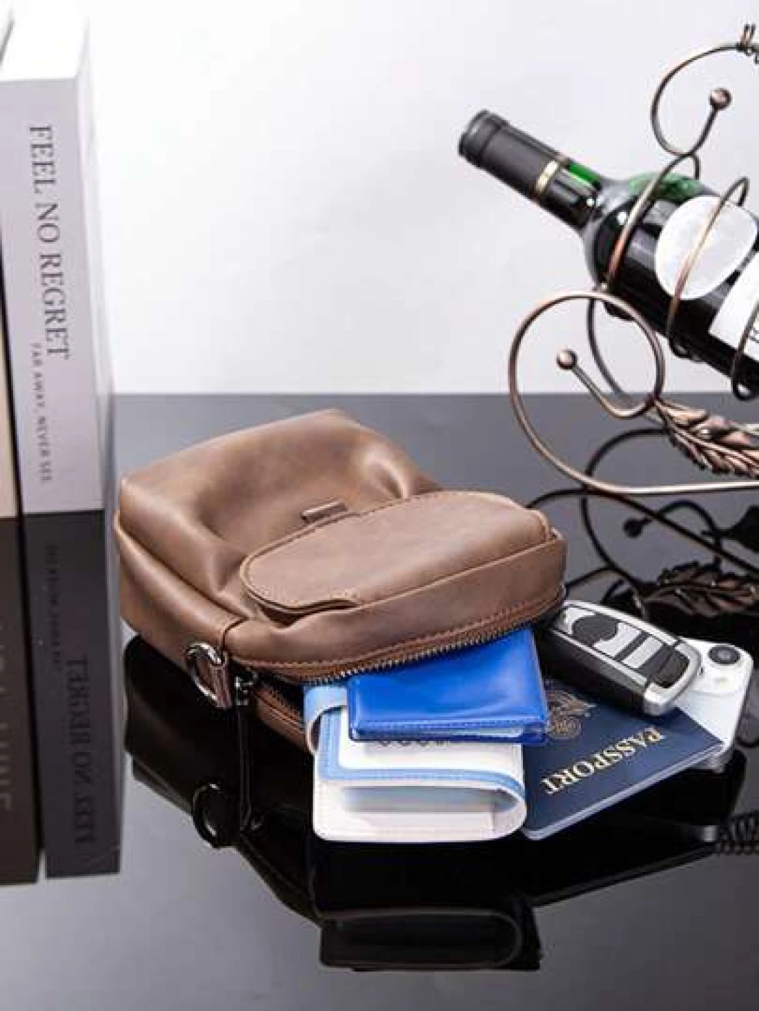 Men s New Phone Bag Korean Style Leather One Shoulder Messenger Bag Outdoor Casual Mini Waist Hanging Bag Flap Cover Square Bag In Cowhide Leather