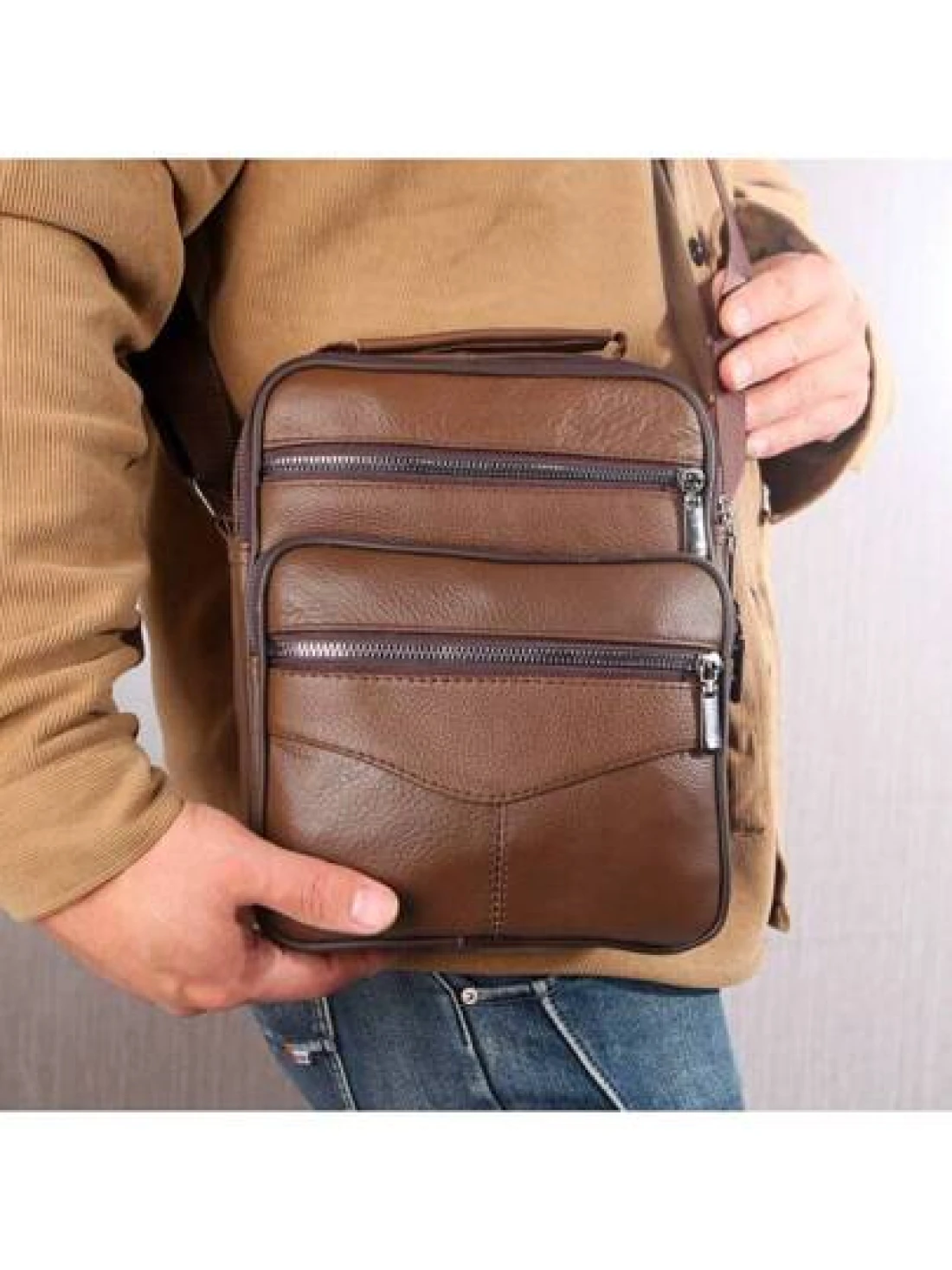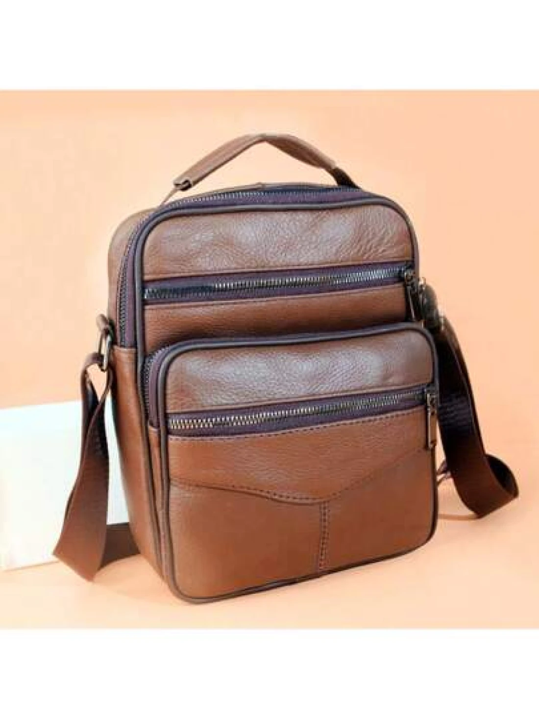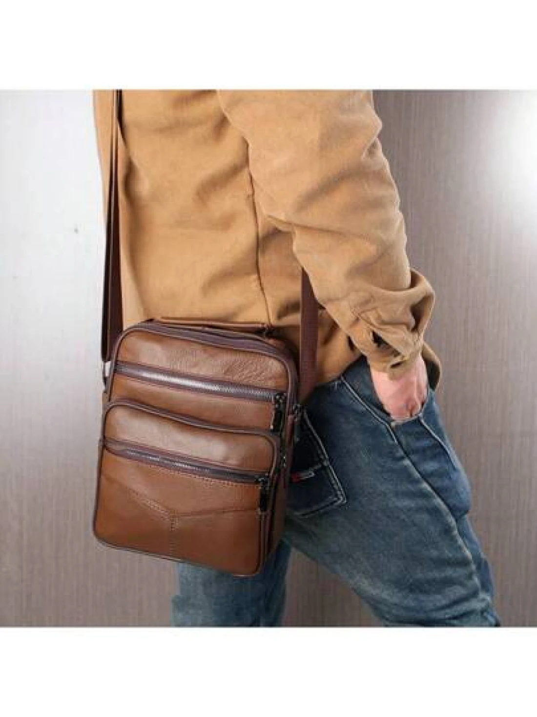 Top Grain Leather New Business Men s Messenger Bag Multi Layer High Capacity Lightweight Suitable For Commuting Travel Shopping Soft Texture Wear Resistant Waterproof