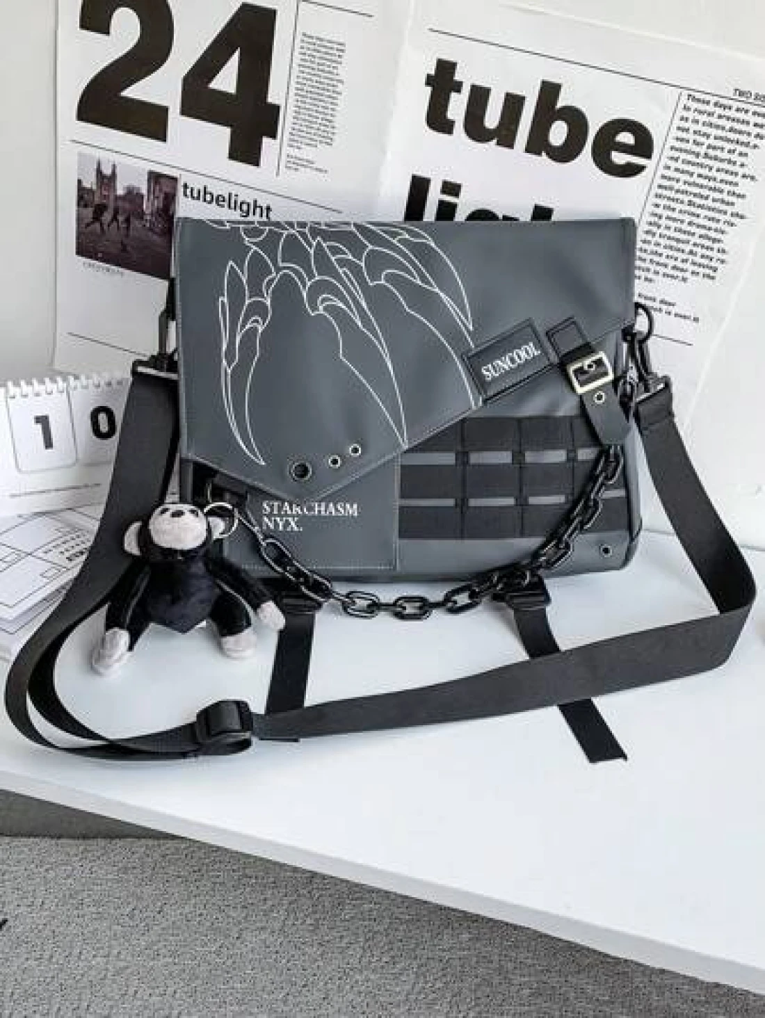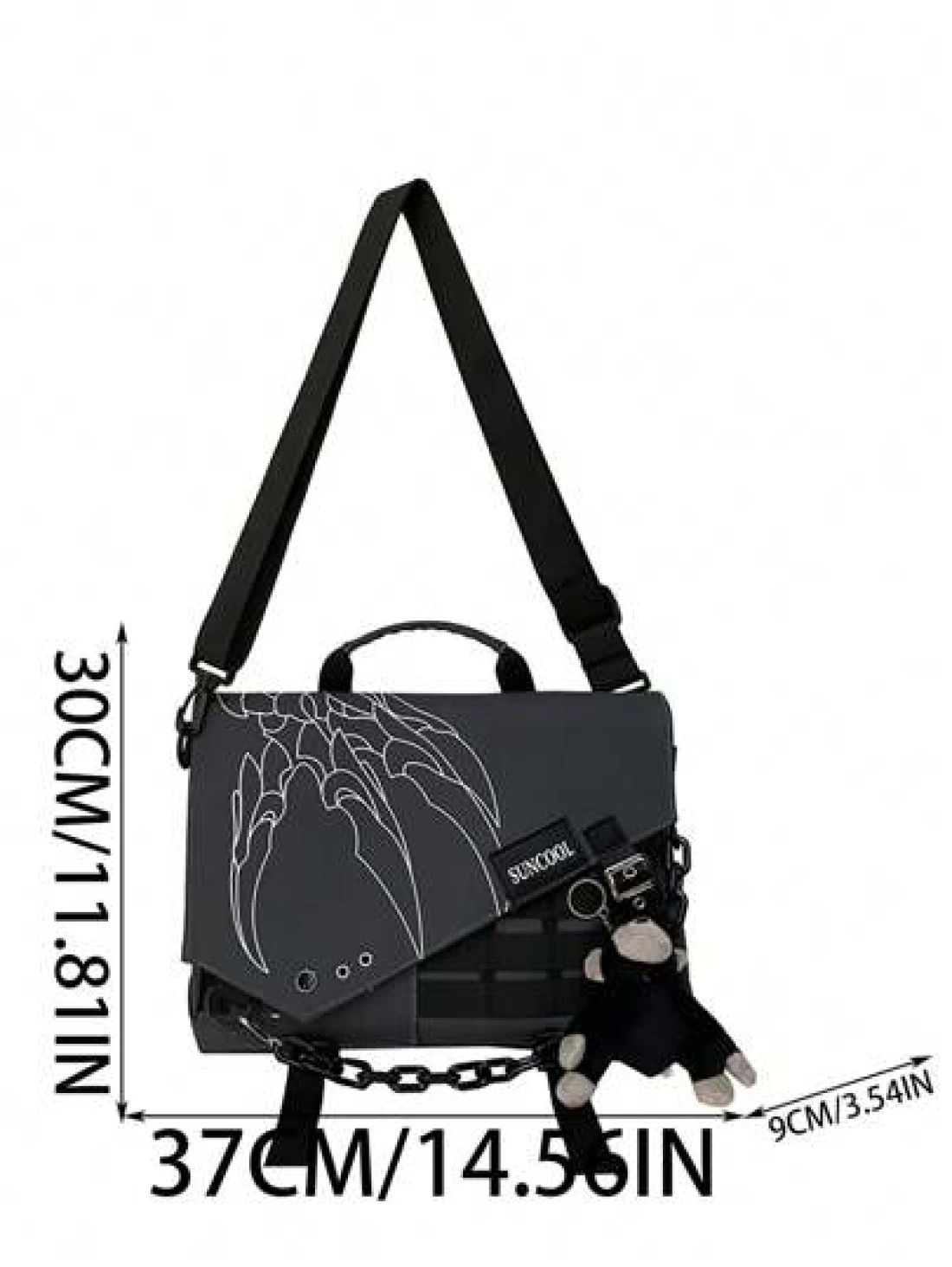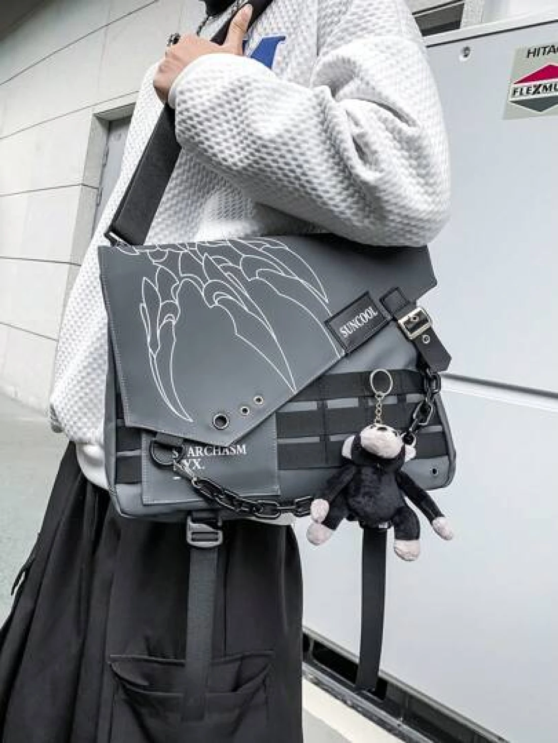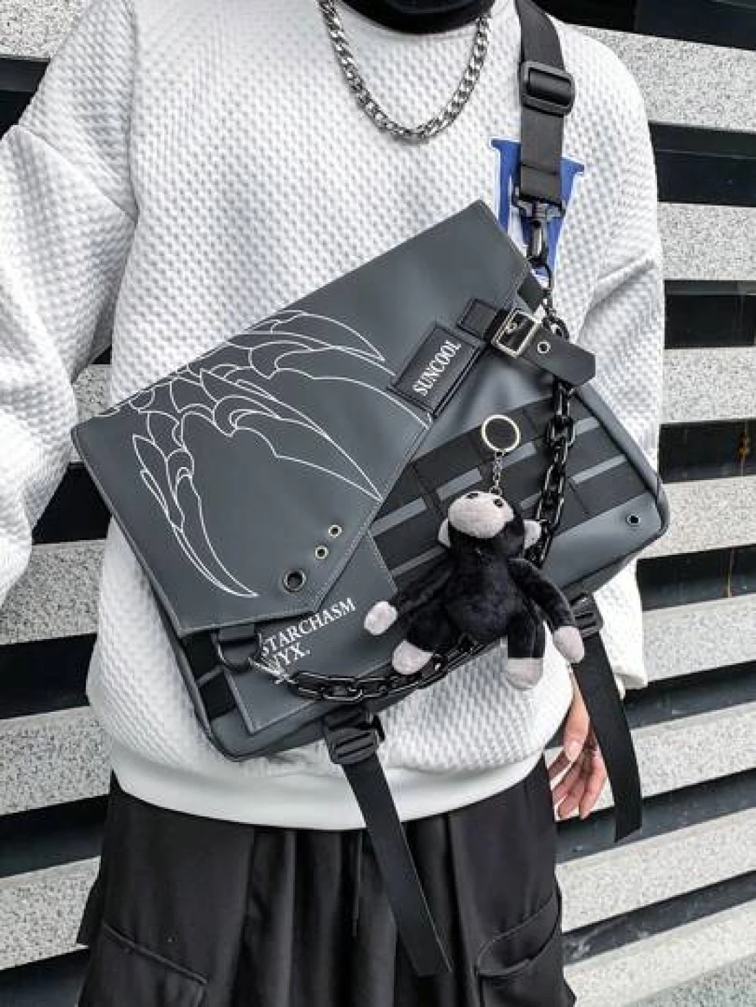 Fabric Material Large Capacity Casual Vacation Graffiti Chain Shoulder Bag For Men Punk Style Casual Bag With Pendant
