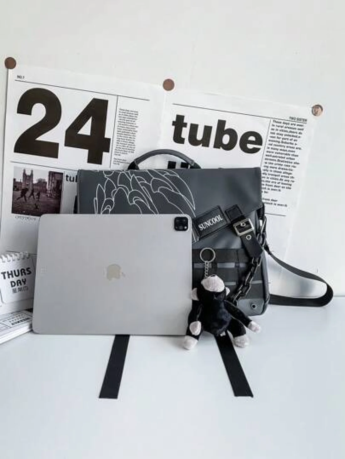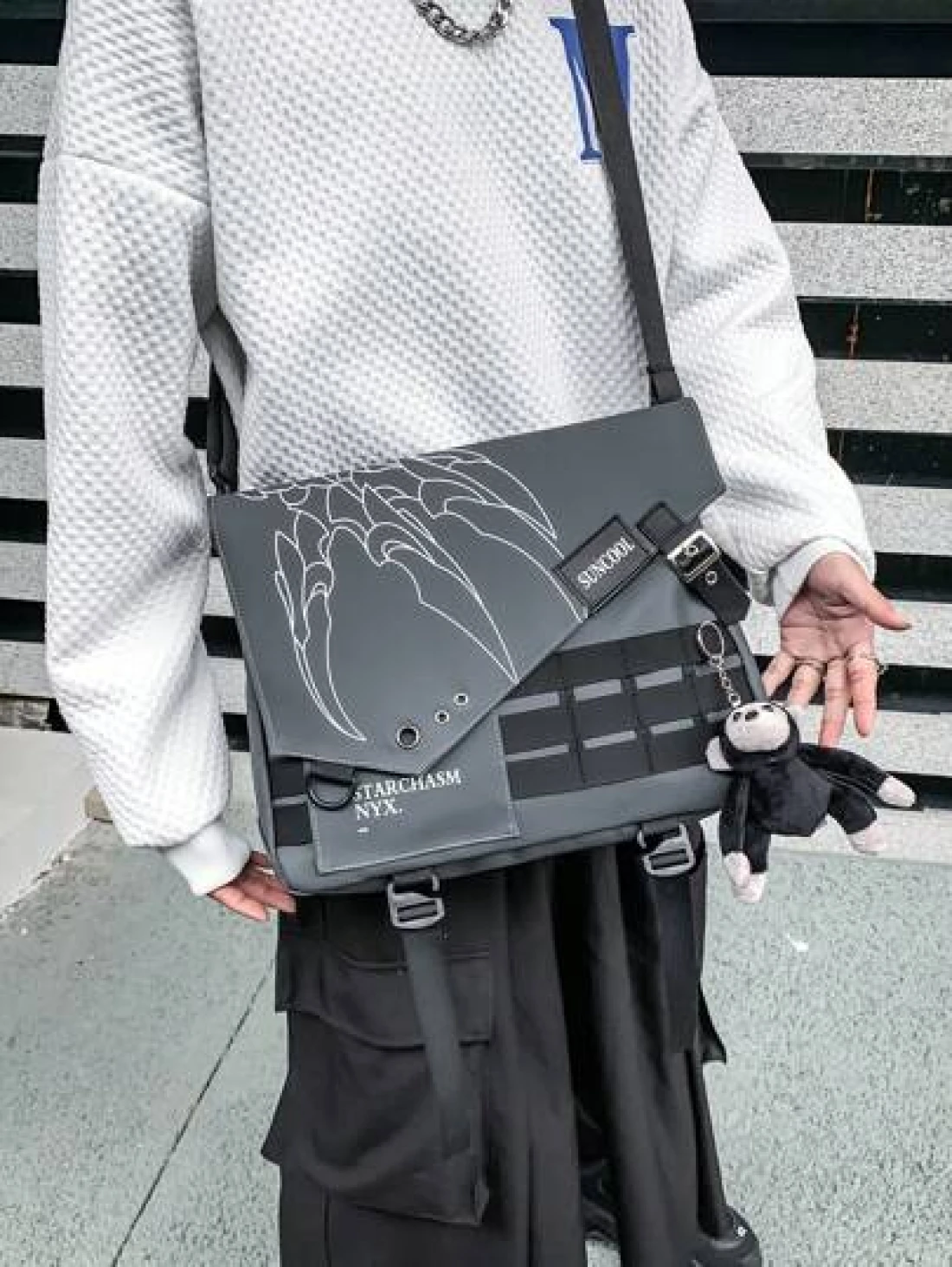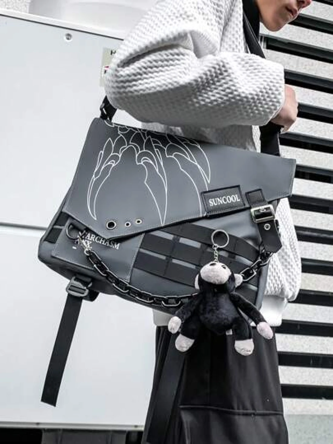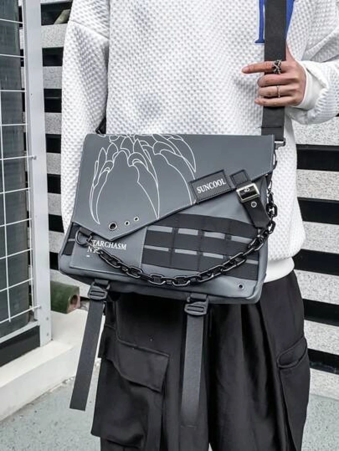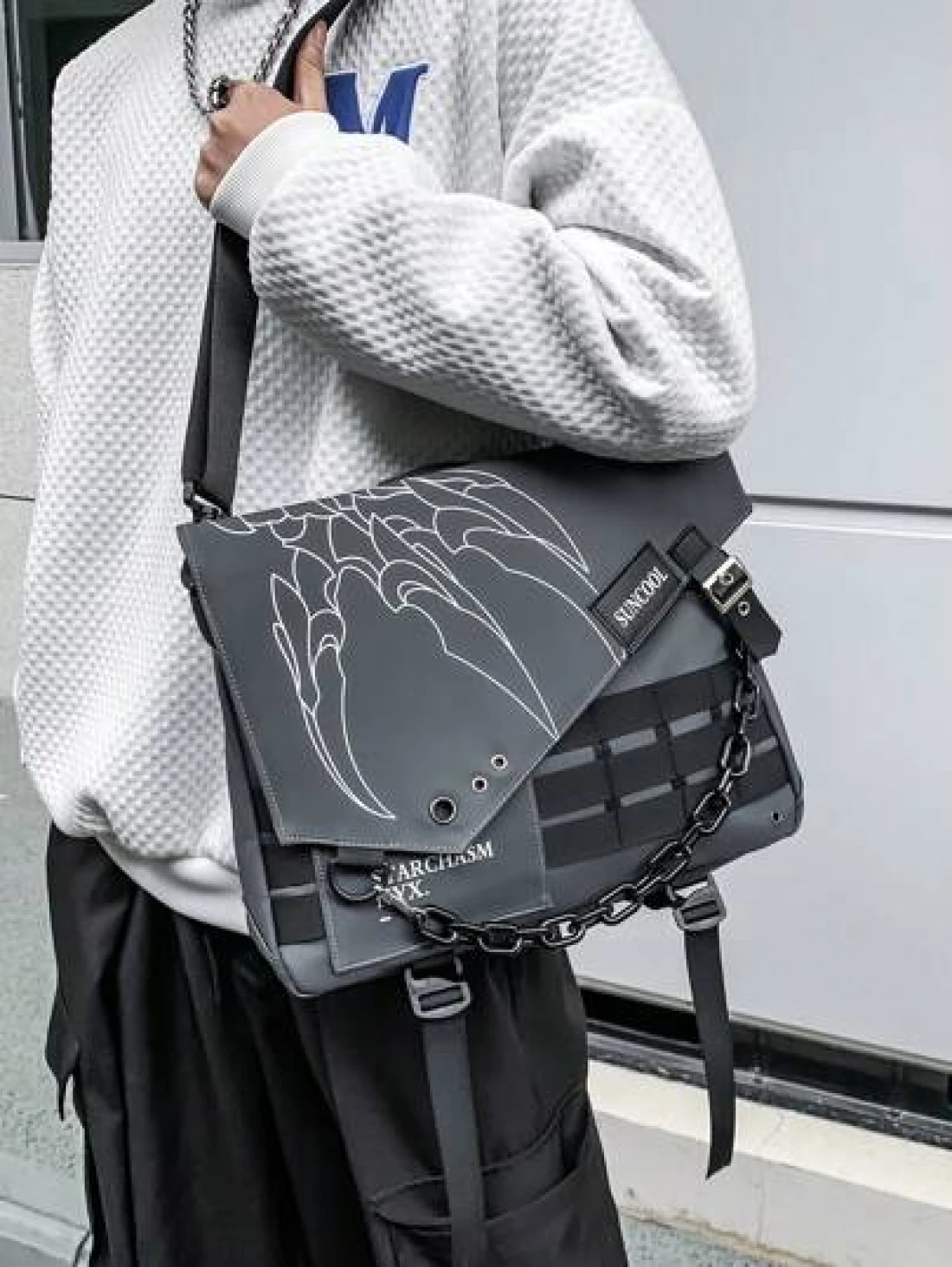 Fabric Material Large Capacity Casual Vacation Graffiti Chain Shoulder Bag For Men Punk Style Casual Bag With Pendant