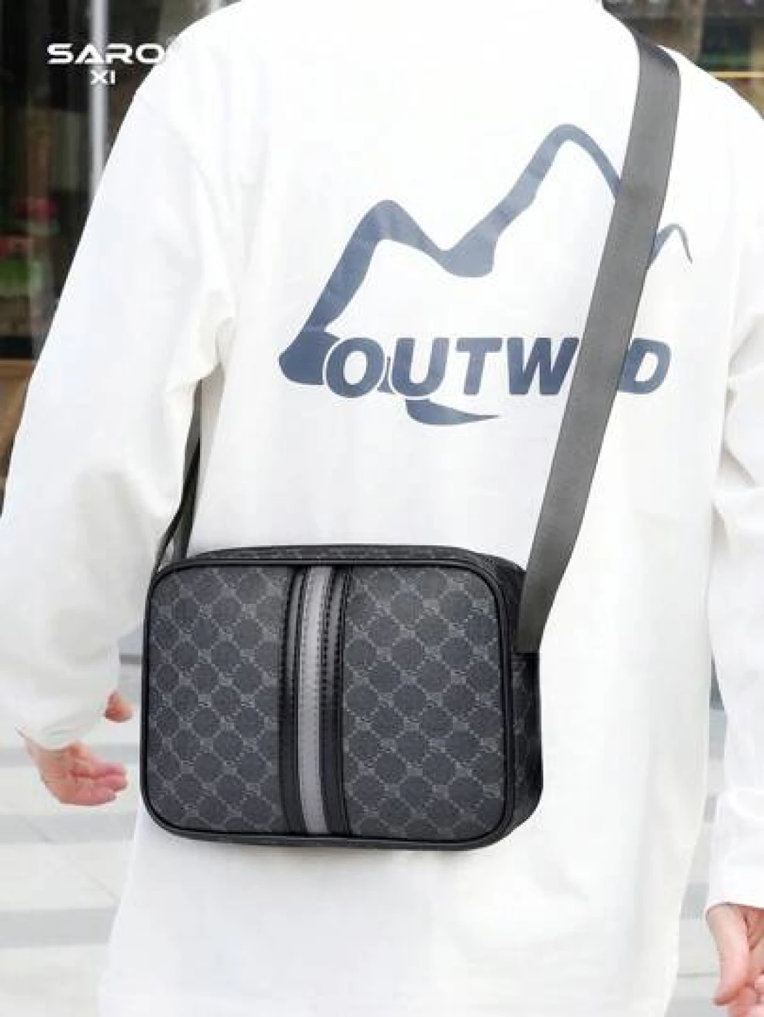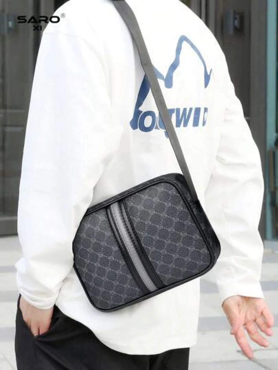 Men s Oblique Shoulder Bag With Side Pockets Crossbody Messenger Bag Square Casual Multipurpose Bag Suitable For Commuting PVC Minimalist Style Black Color Gift For Boyfriend Husband Luxury Bags