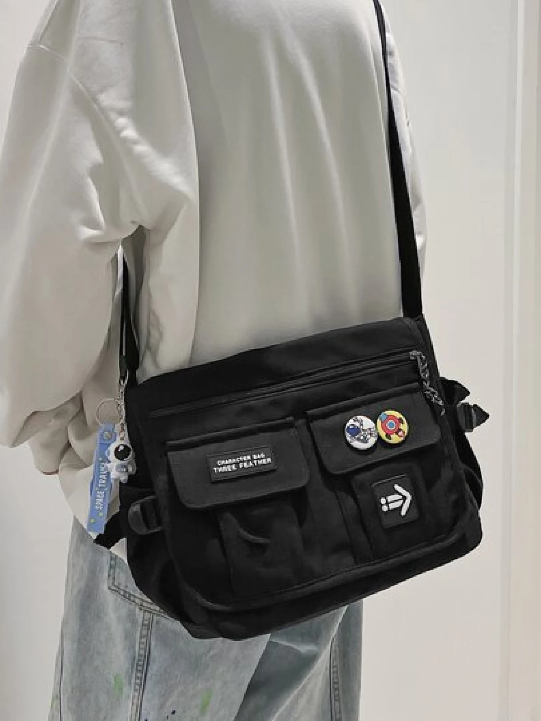 High School Students Multifunctional Sling Bag Shoulder Bag Casual Bag Letter Patch Messenger Bag For Travel College School Outdoor Sports Crossbody Bag Side Bag Lightweight With Adjustable Strap Nylon Minimalist Portable Christmas Gifts For Men Tote Bag Black Bag Travel Essentials Holiday Essentials Bag For Men Camping Sling Bag For Men Bags Summer Back To School Summer Bag Spring Break Vacation Bag Pack Cross Body Bag School Supplies Purse College Bag Sling Bag Side Bags For Men New Life Items For Students Men Essentials Fashion Men s Bags Anime