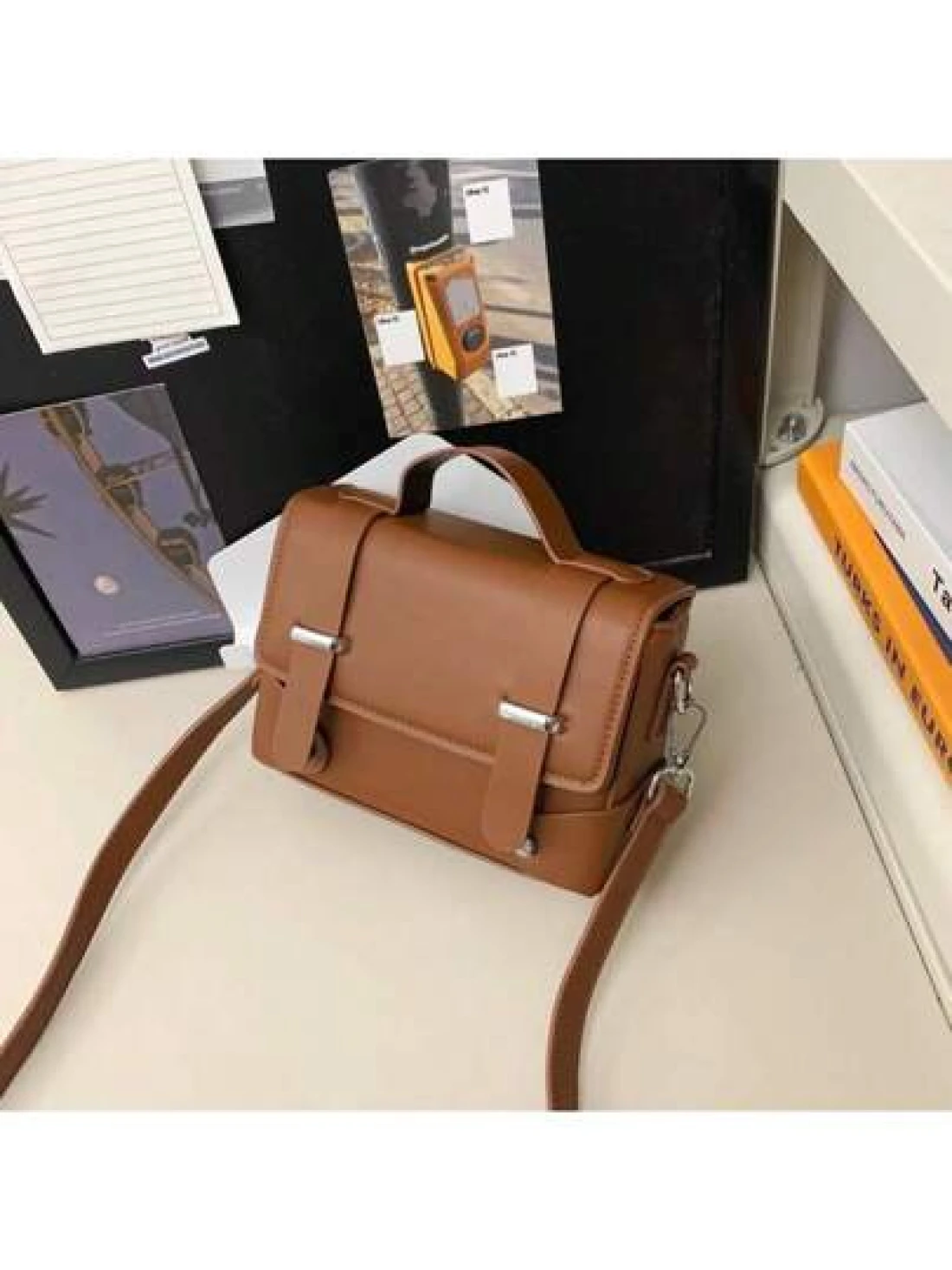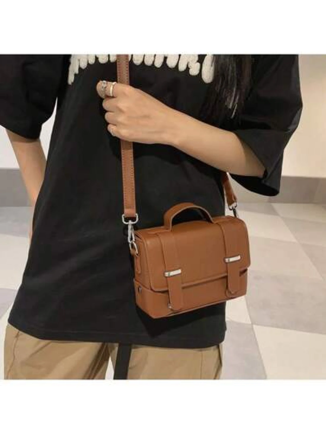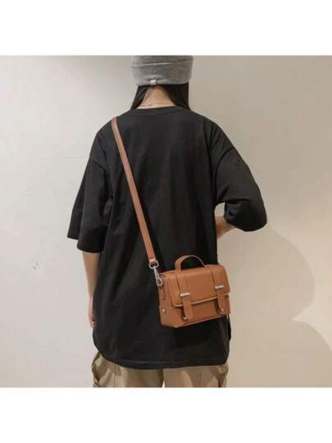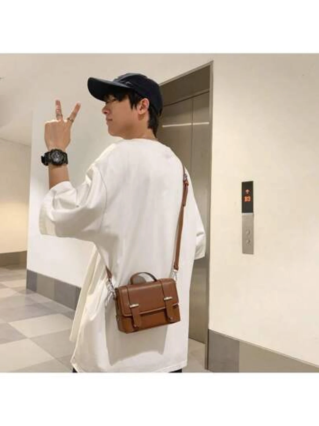 1pc Solid Black Brown Rivet Decor PU Waterproof Flap Closure Casual Men Shoulder Sling Bag Women Phone Purse Vintage Side Bags For Men