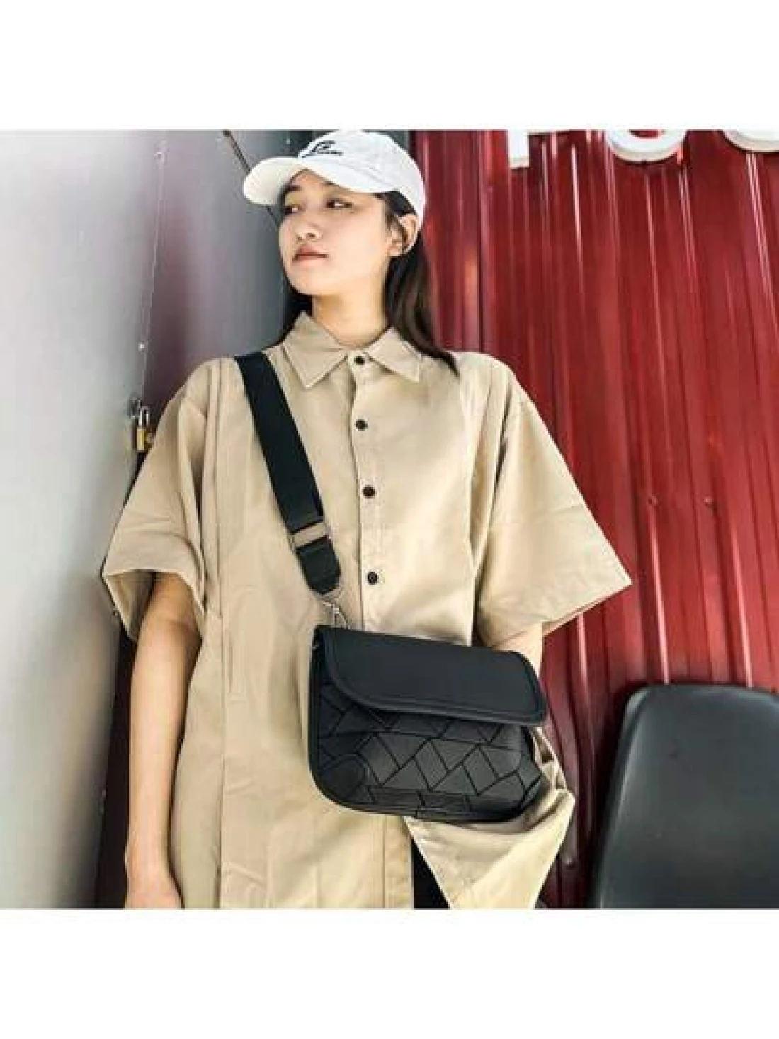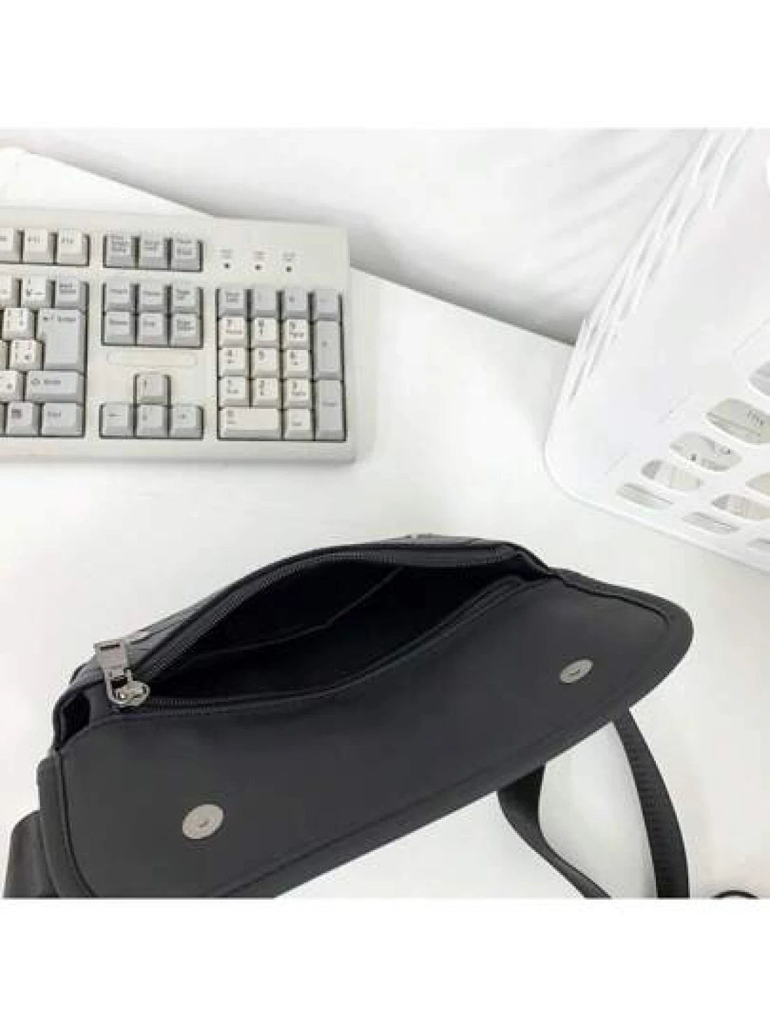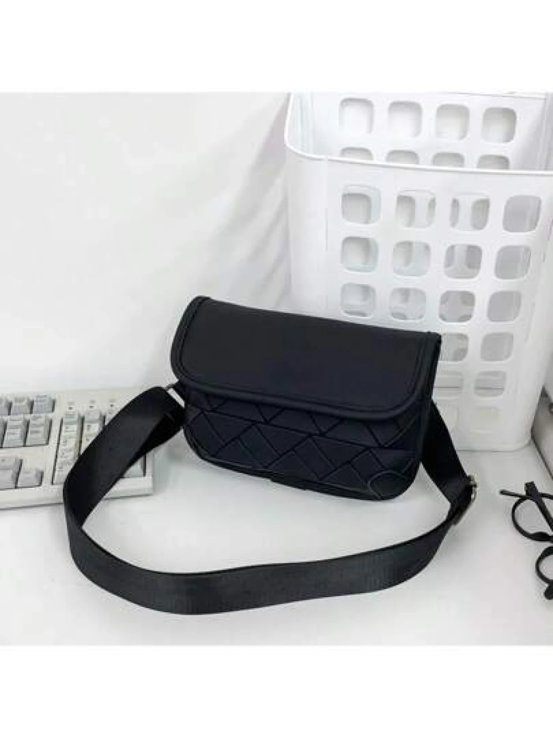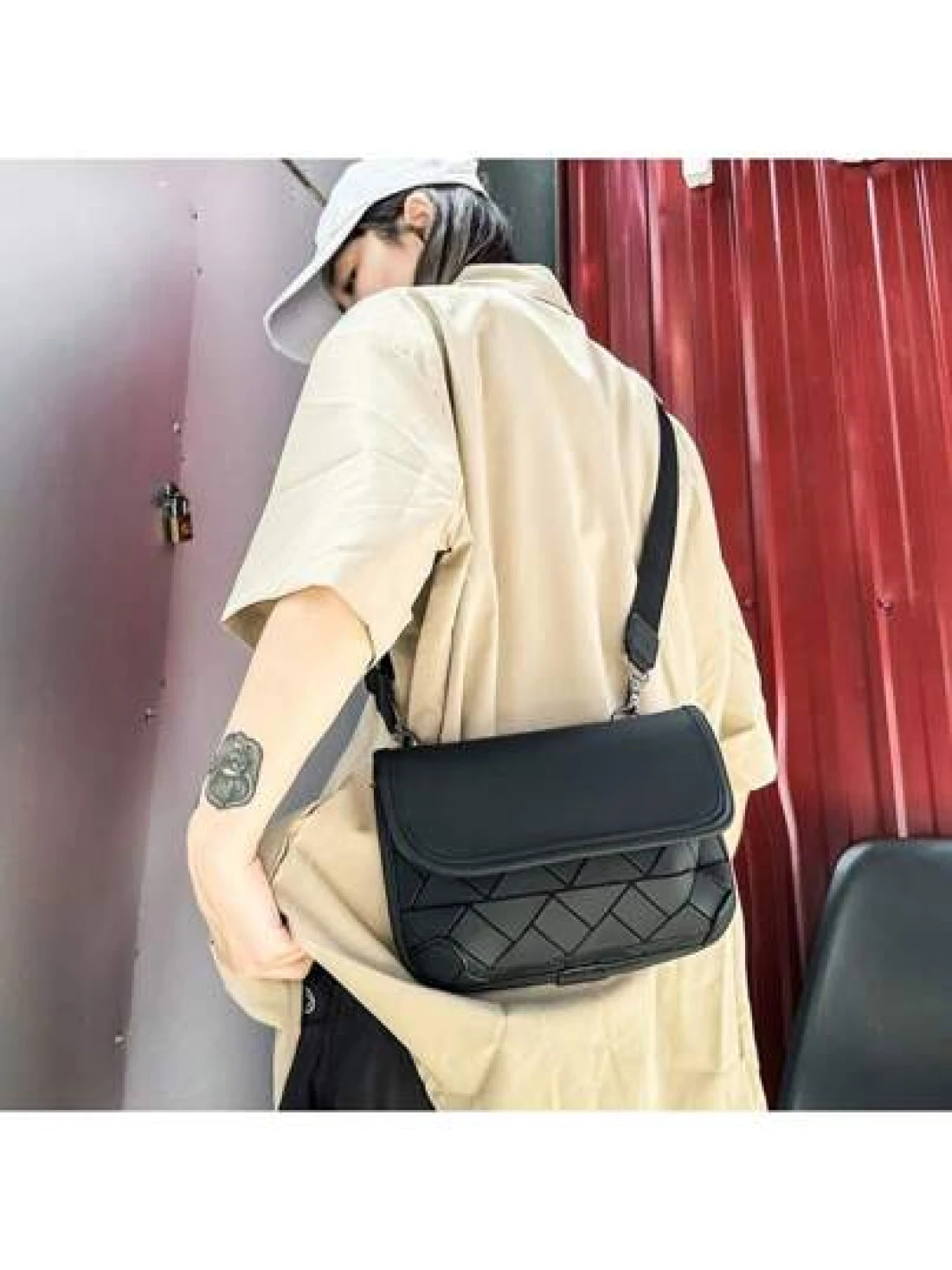 1pc Rhombic Pattern Iridescent Black Matte Leather Material Cover Type Closure Fashion Men Messenger Bag Chest Bag Unisex Suitable For Spring Cycling For Teenagers And Young People