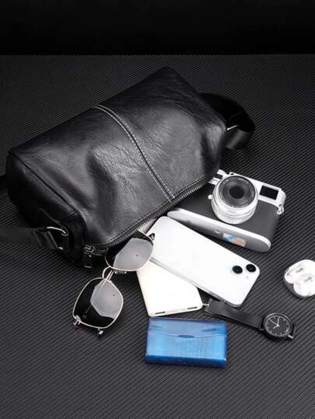 New Men s Commuter Shoulder Messenger Bag Lightweight PU Soft Leather Small Bag Minimalist Sophisticated Pillow Bag