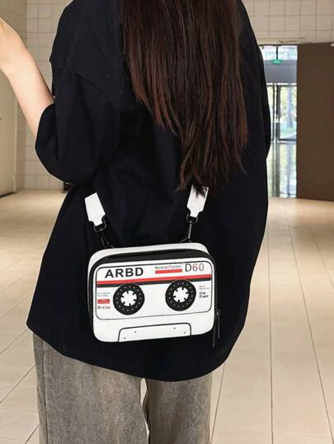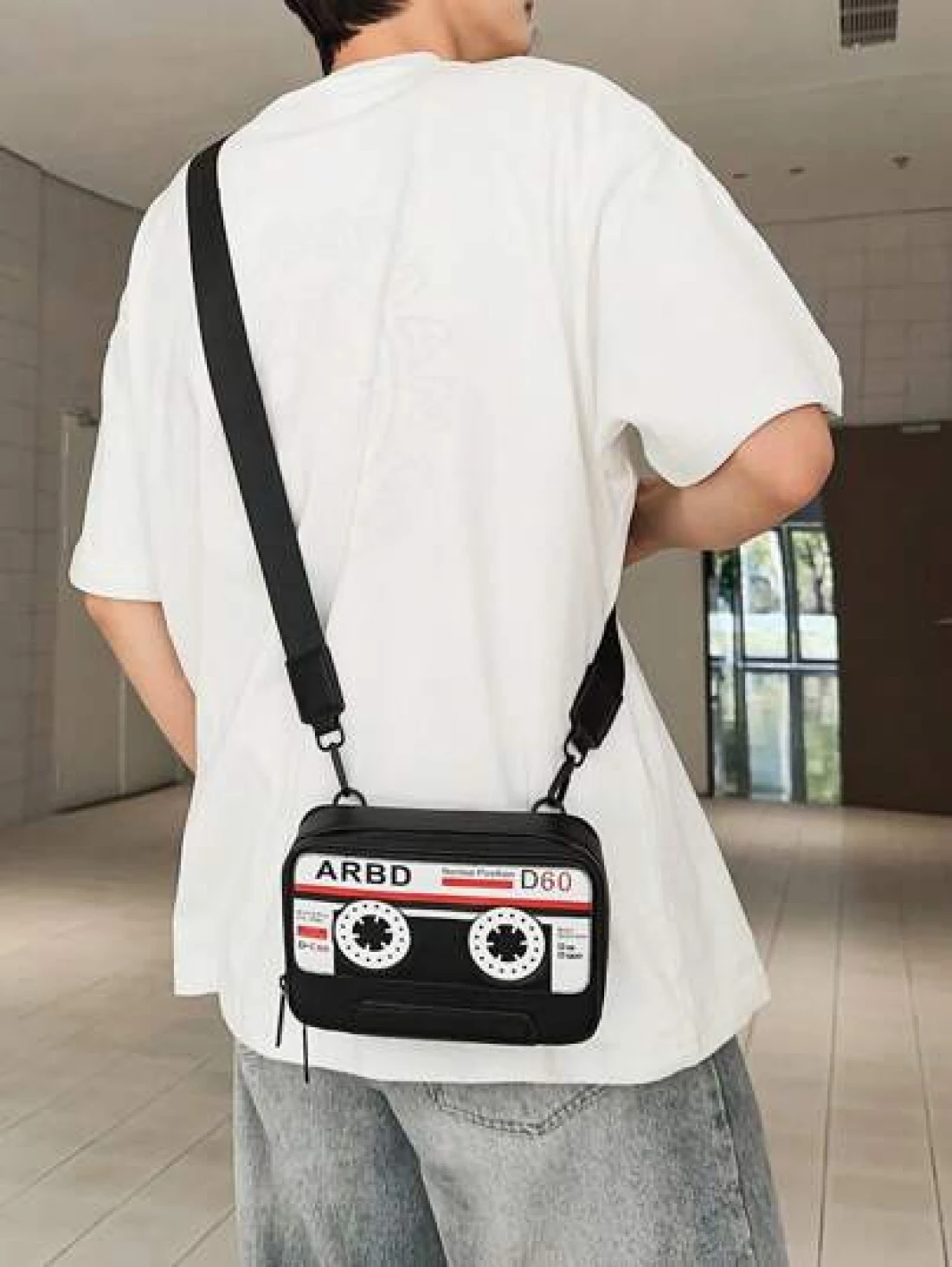 peach tree Multifunction Men Messenger Bag Retro Radio Cassette Recorder Shoulder Bag Casual Simple PU Waterproof Square Bag For Travel Outdoor Gift For Young Men Father Halloween Christmas