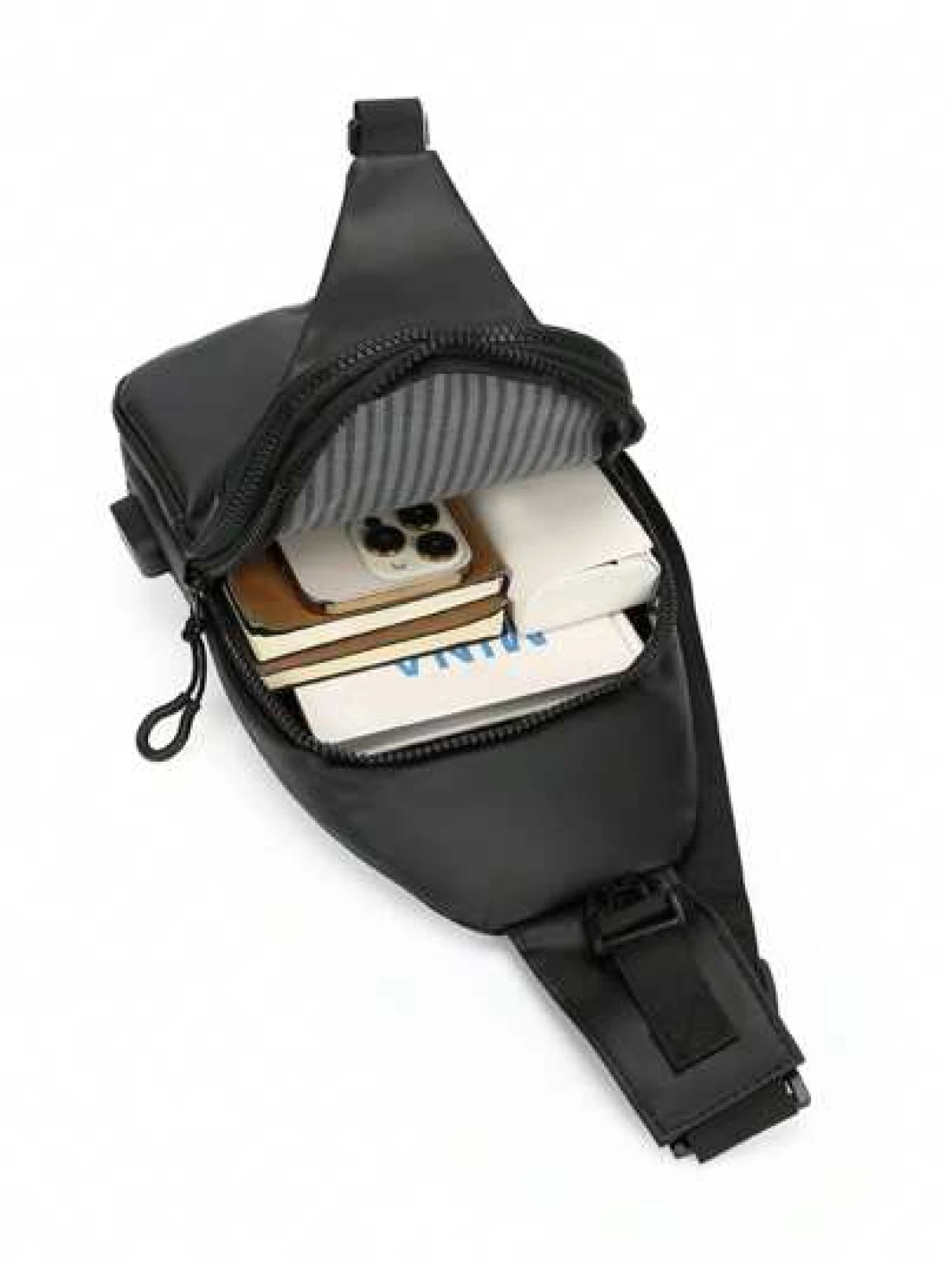 Sling Bag For Men Crossbody Bag USB PU Leather Shoulder Bag Chest Bag For Daily Use Waterproof Lightweight One Strap Backpack