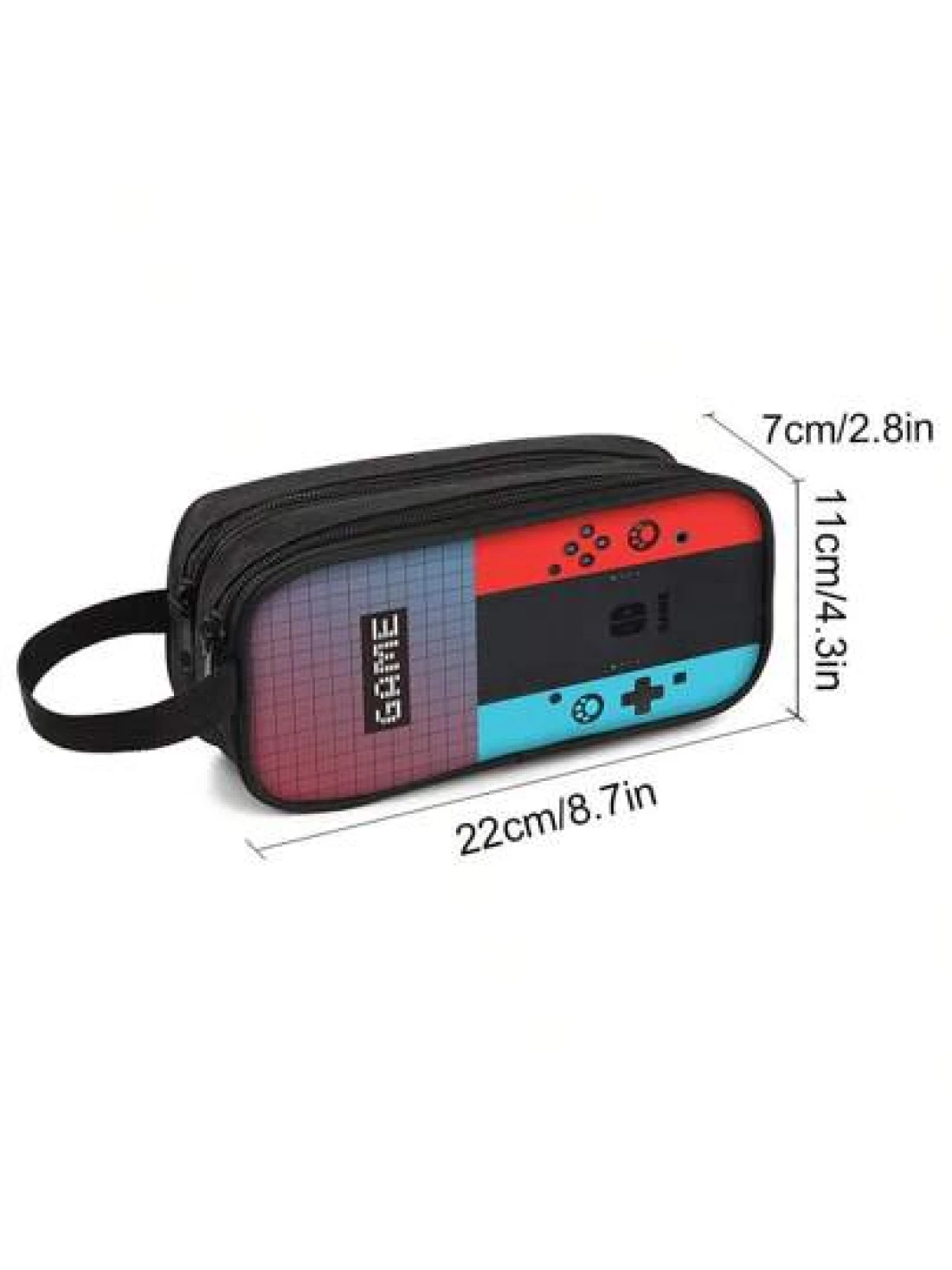 Game Console Pattern Printed Hand Held Double Layer Pen Bag