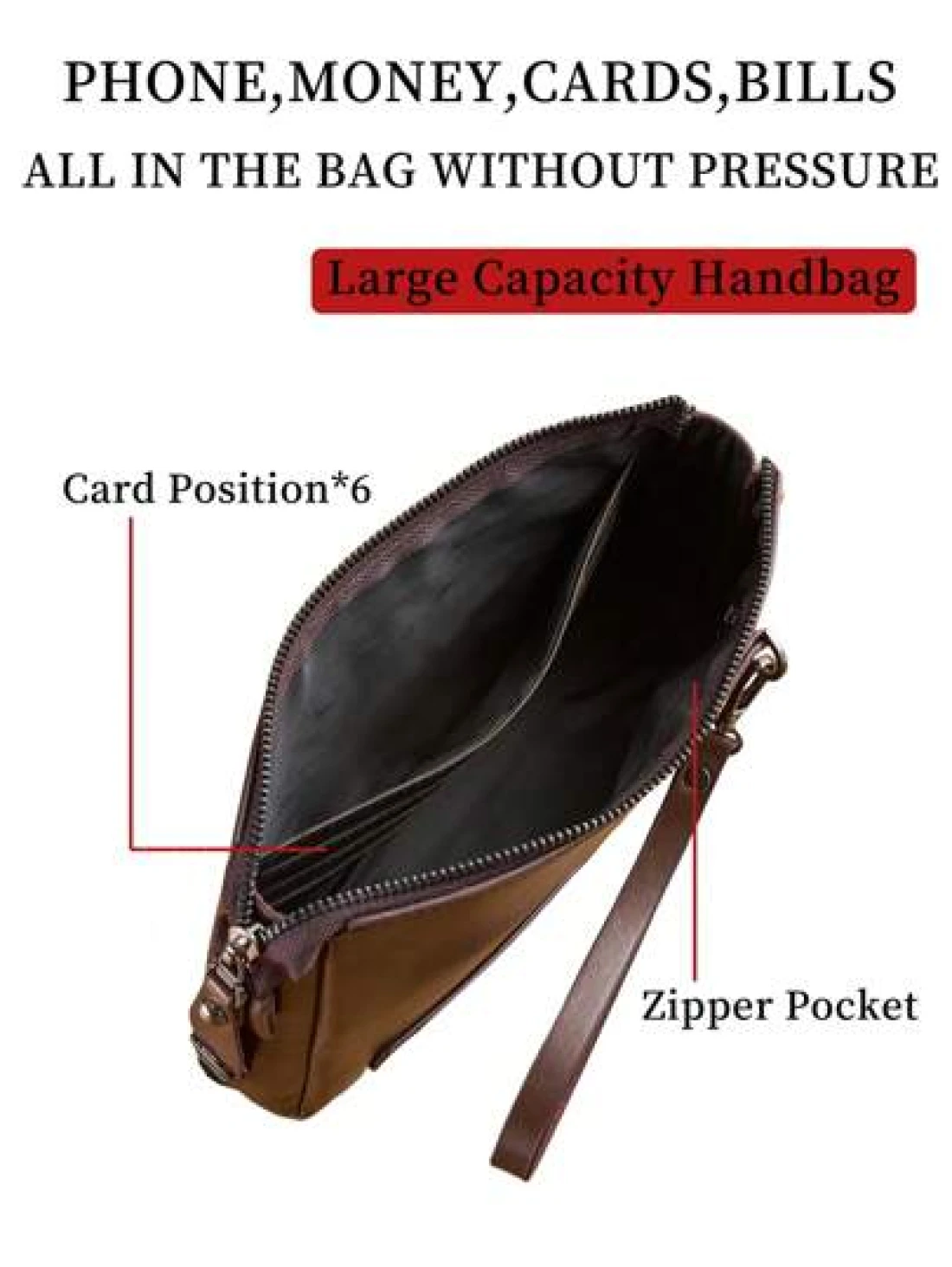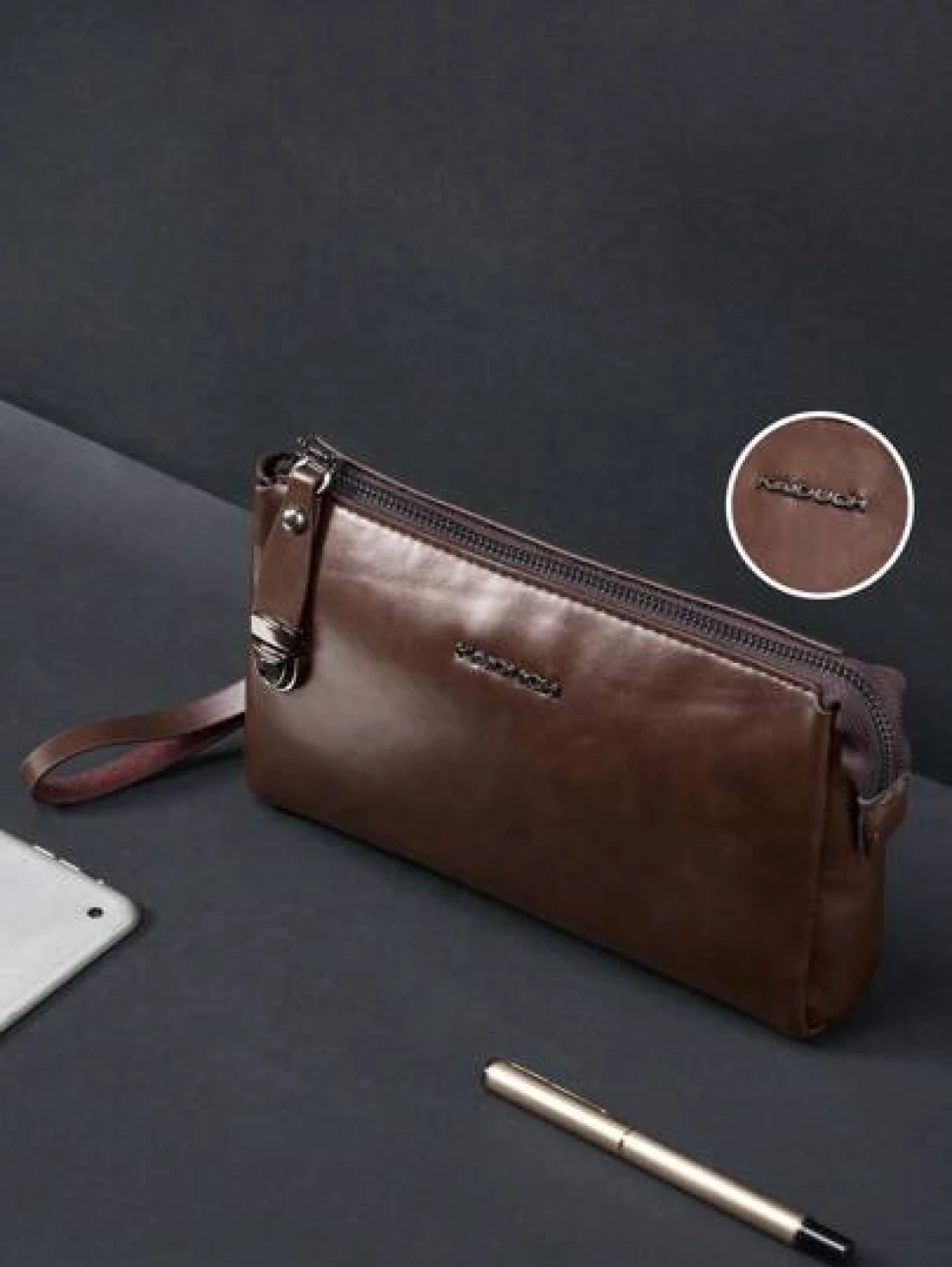 KAIDUCH Men s Fashion Minimalist Large Capacity Clutch Bag Soft Leather Wallet Phone Holder Zipper Lock Long Handbag
