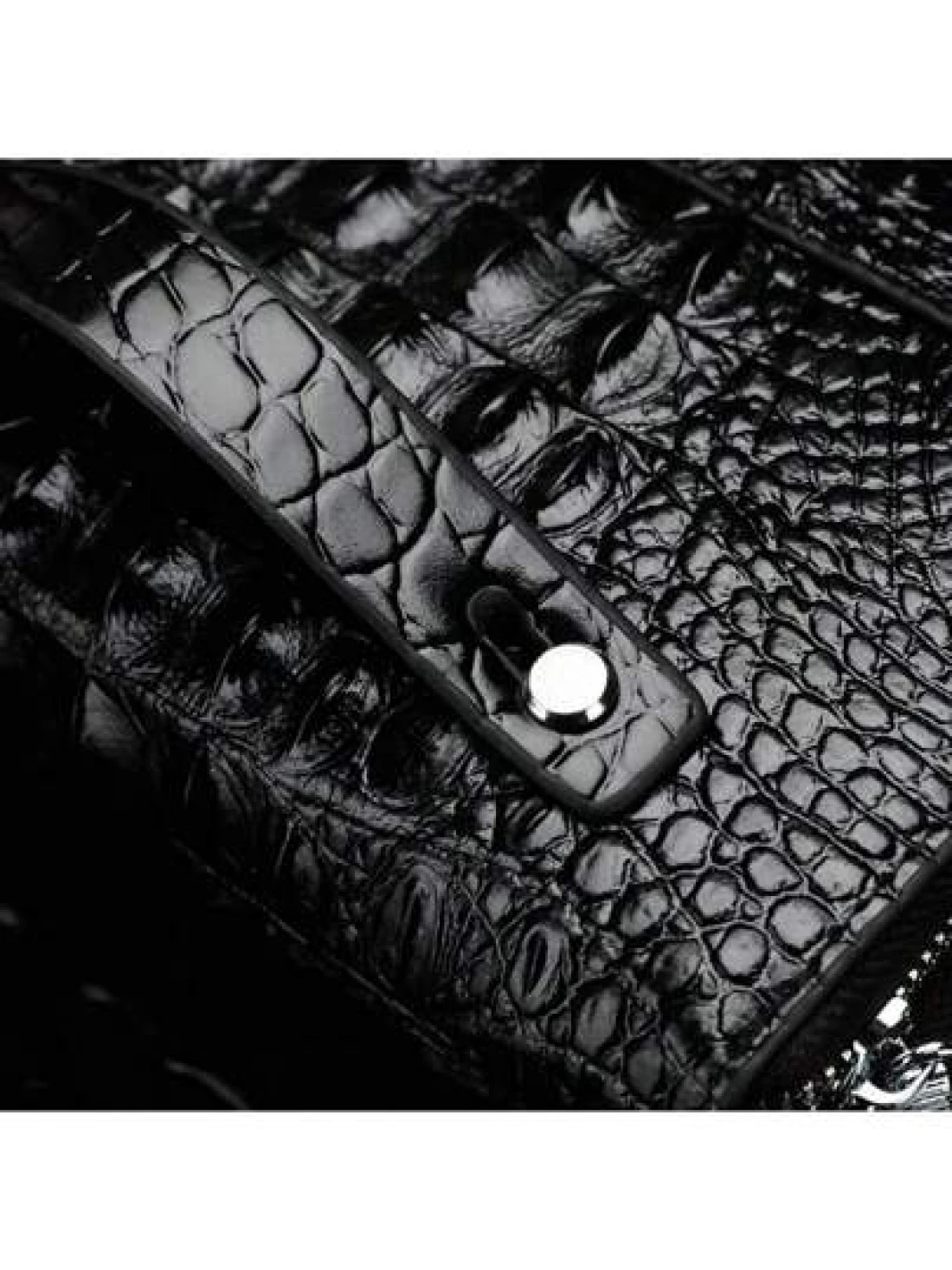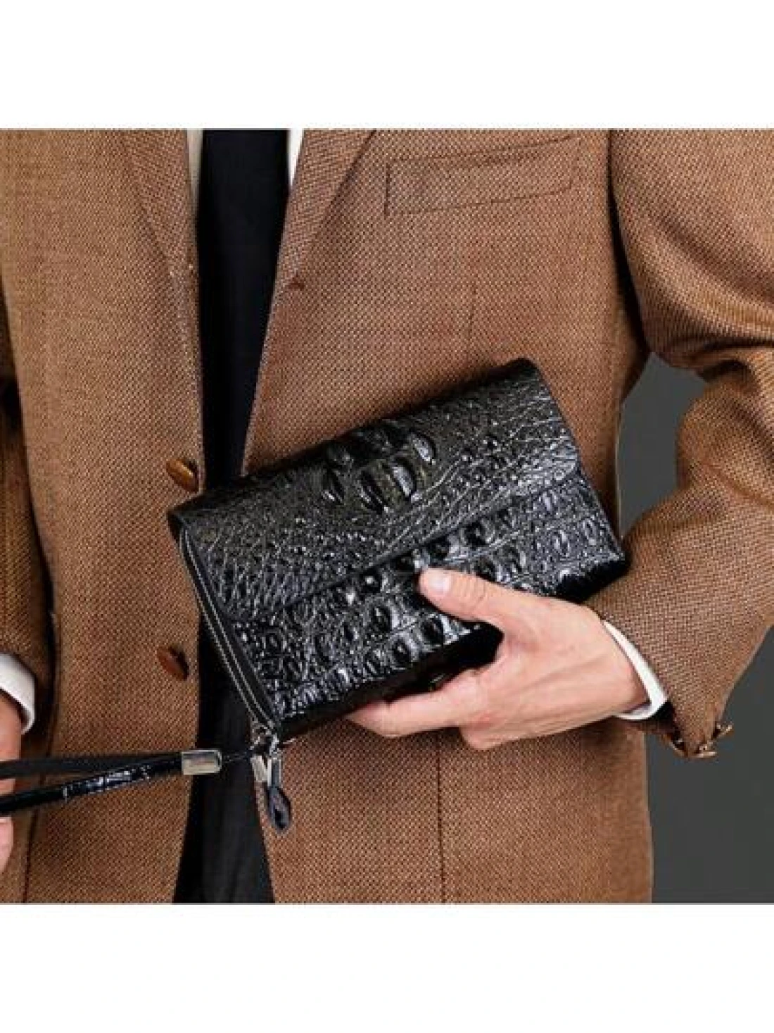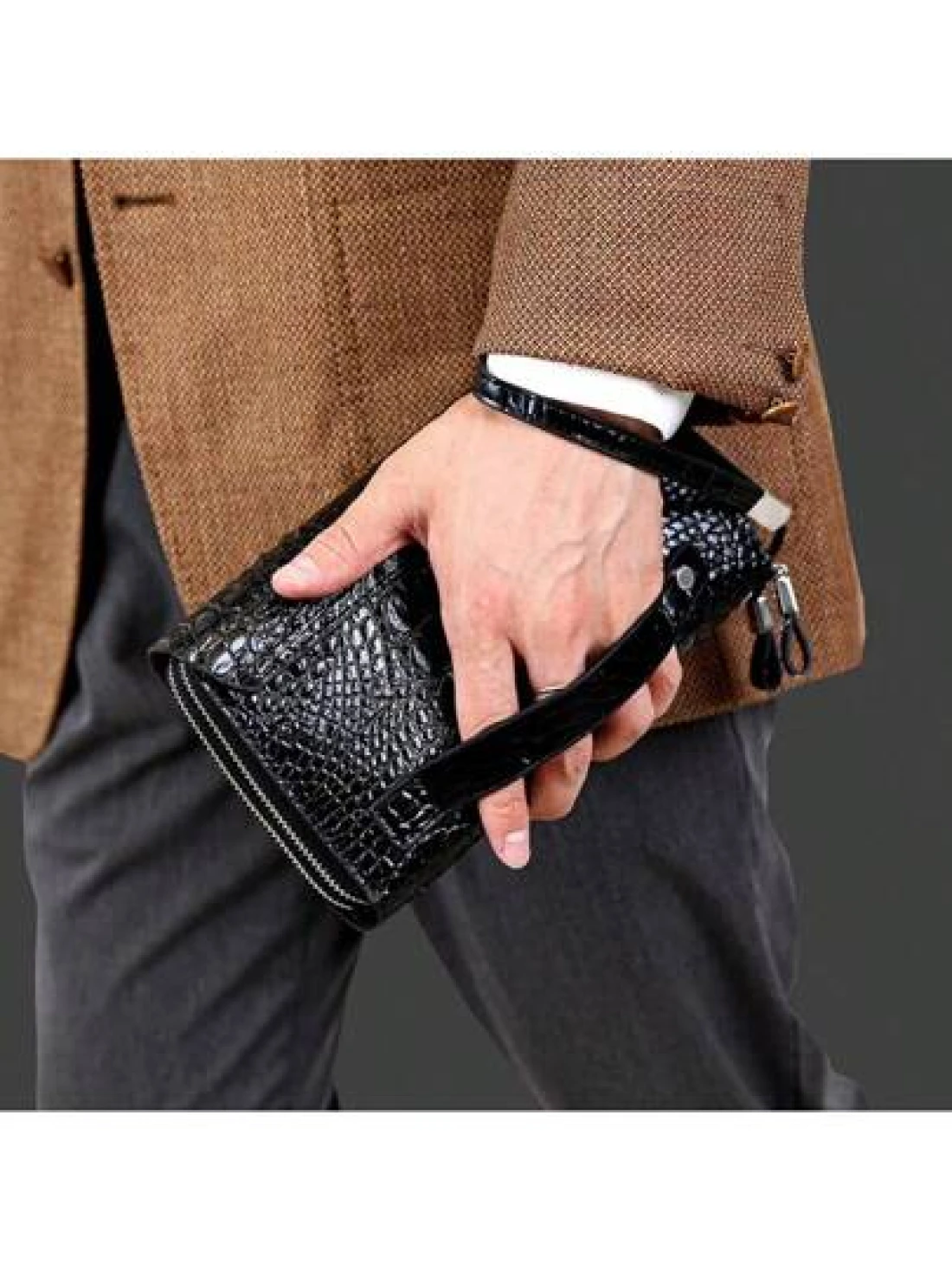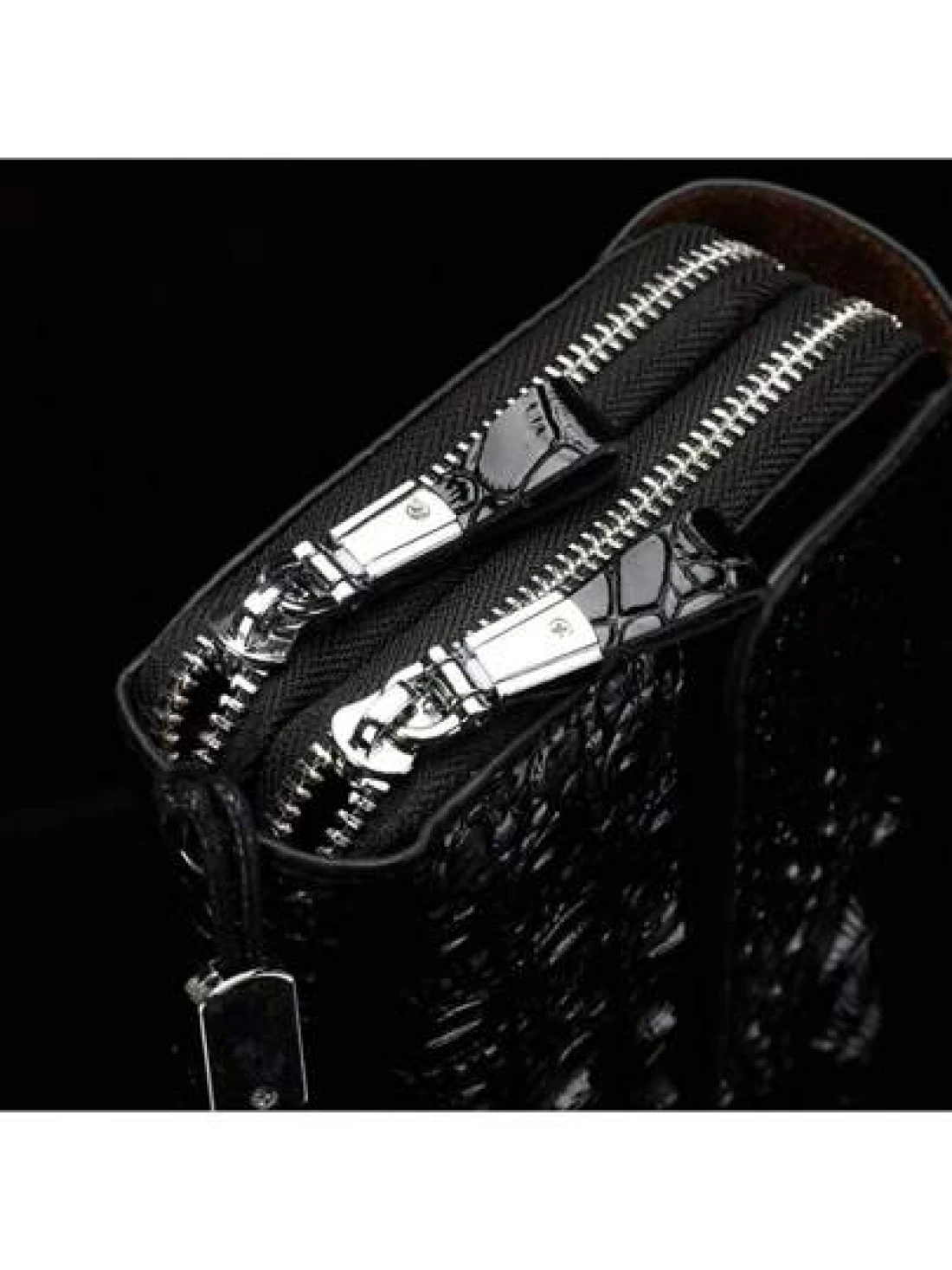 1pc Crocodile Embossed Black Pu Waterproof Wear Resistant Wallet Clutch Bag With Dual Zippers Retro European American Style Suitable For Outing Shopping Party Spring Summer New Arrival