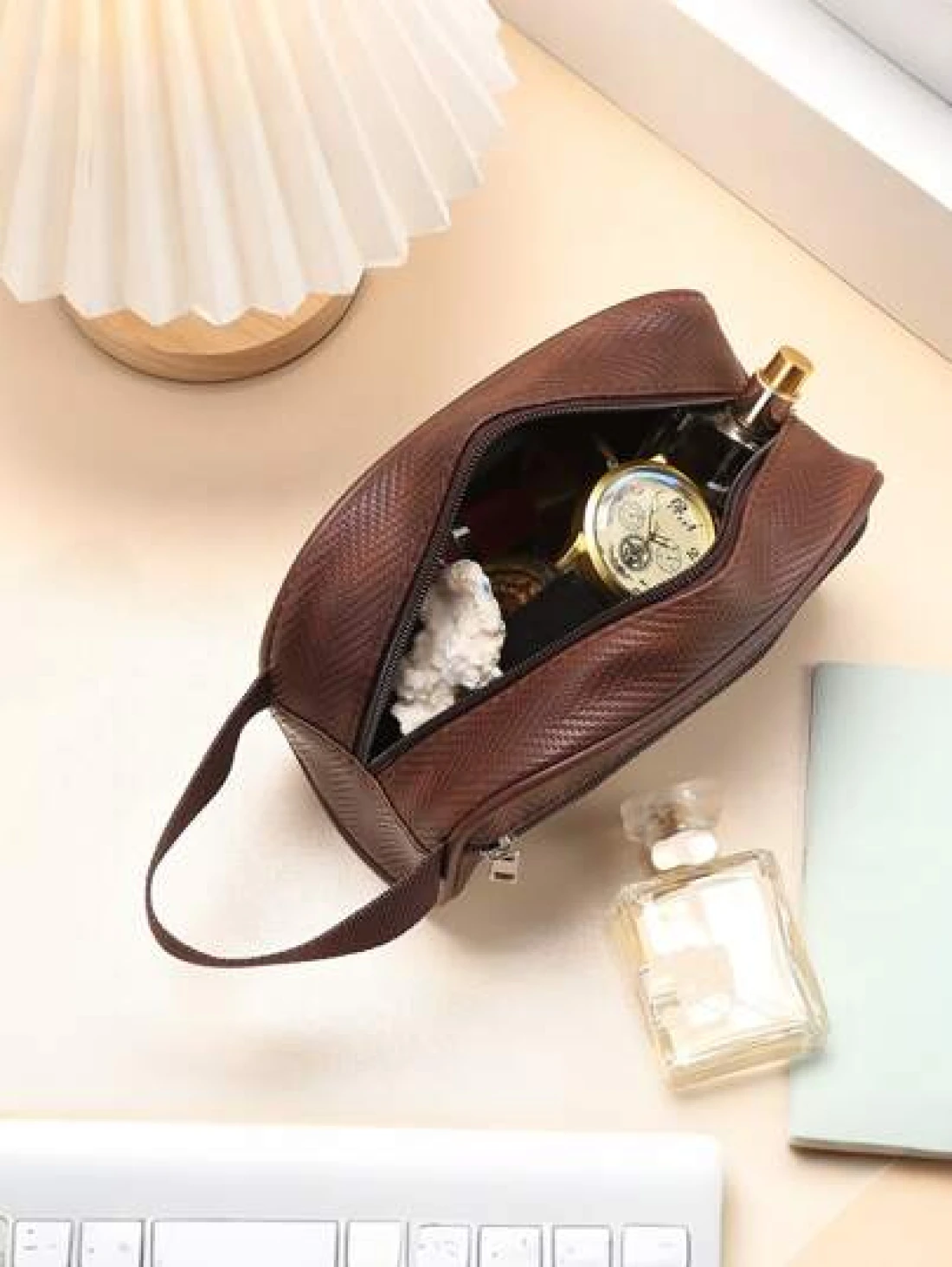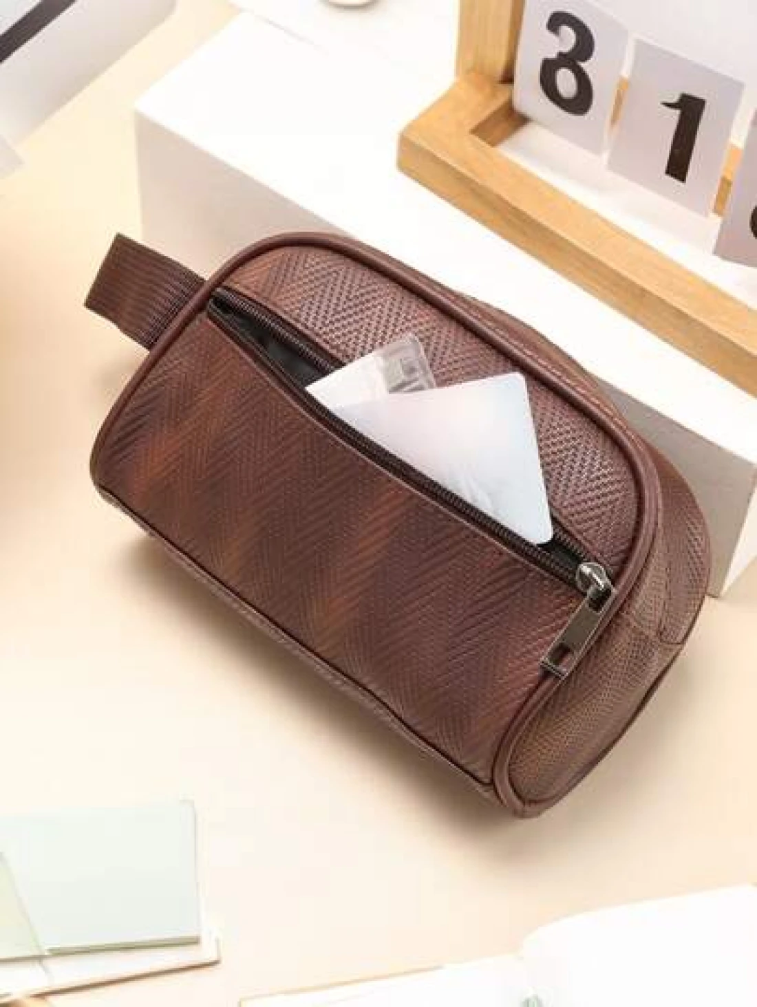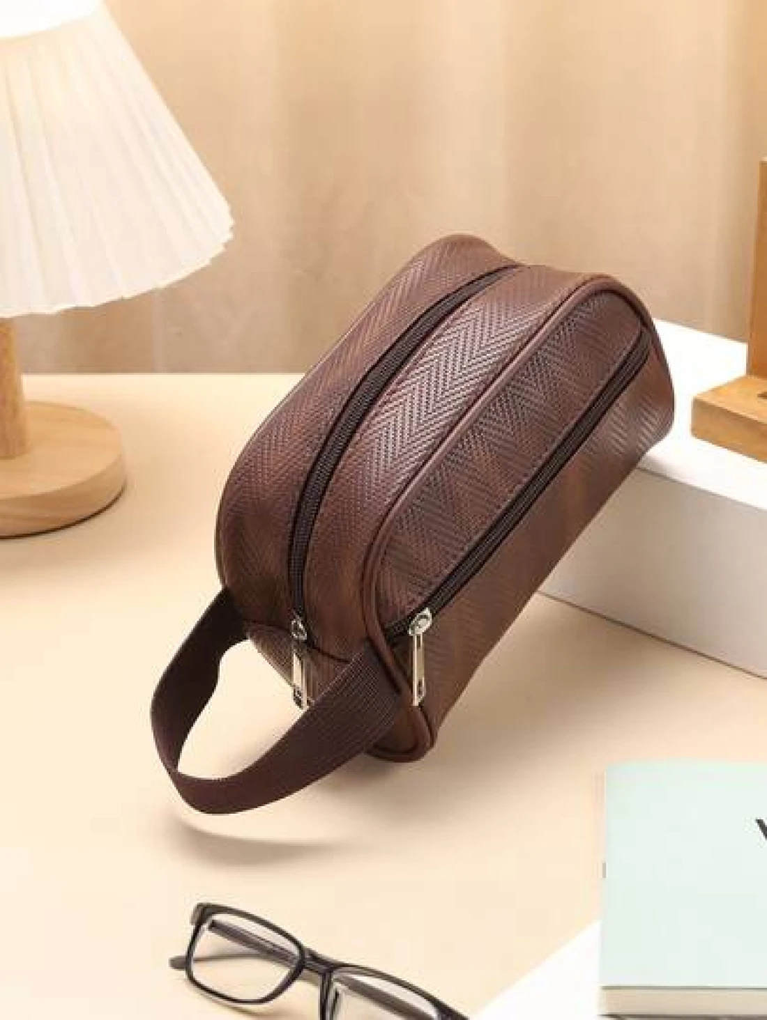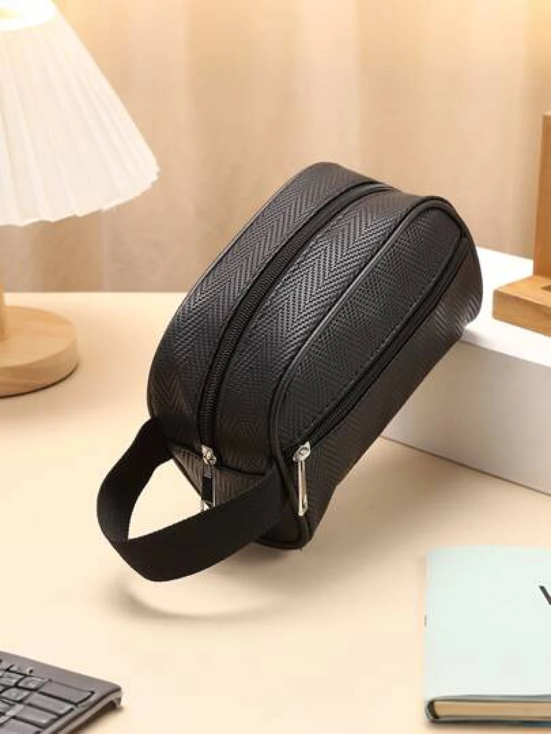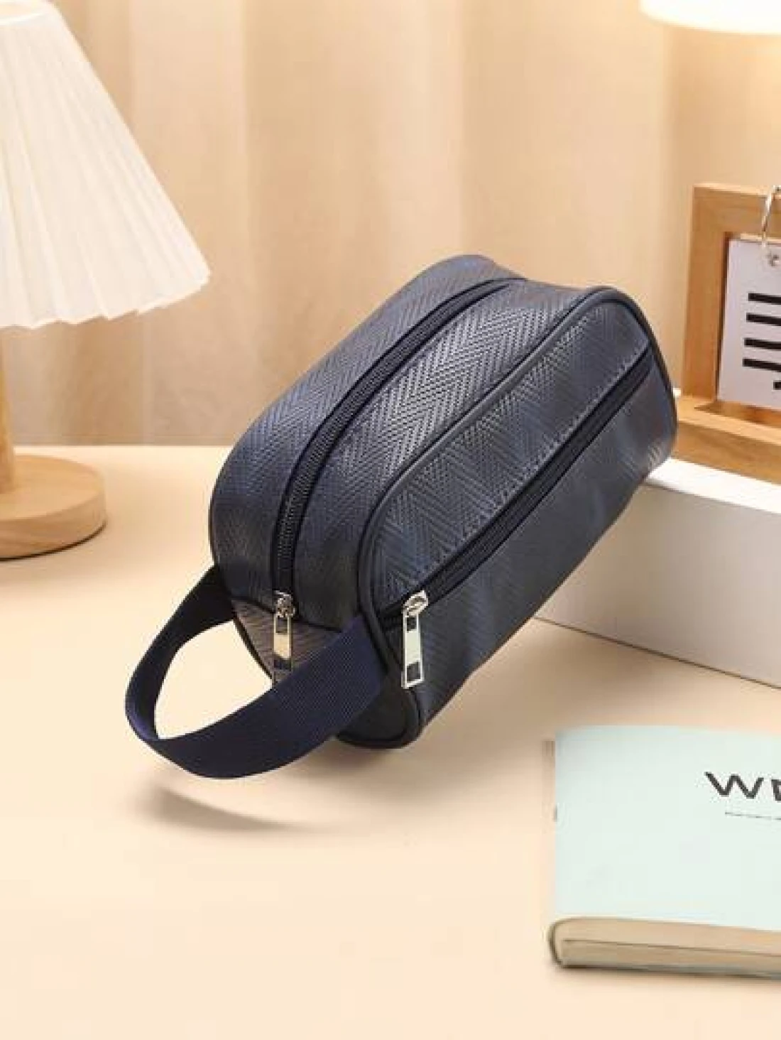 Men Waterproof Travel Toiletries Storage Bag PVC Lychee Pattern Cosmetic Bag Portable Makeup Organiser Male Zipper Handbags