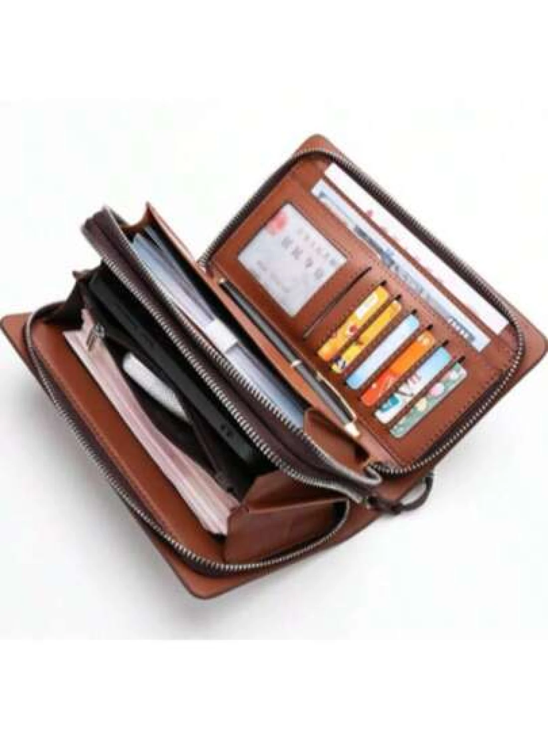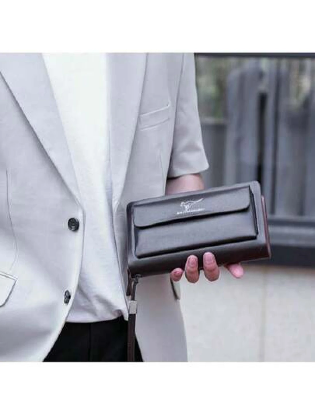 Leather Men s Clutch Wallet Men s Business Password Lock Wallet Anti Theft Clutch Wallet With Phone Stand Handle Bag Travel Bag Coffee Color