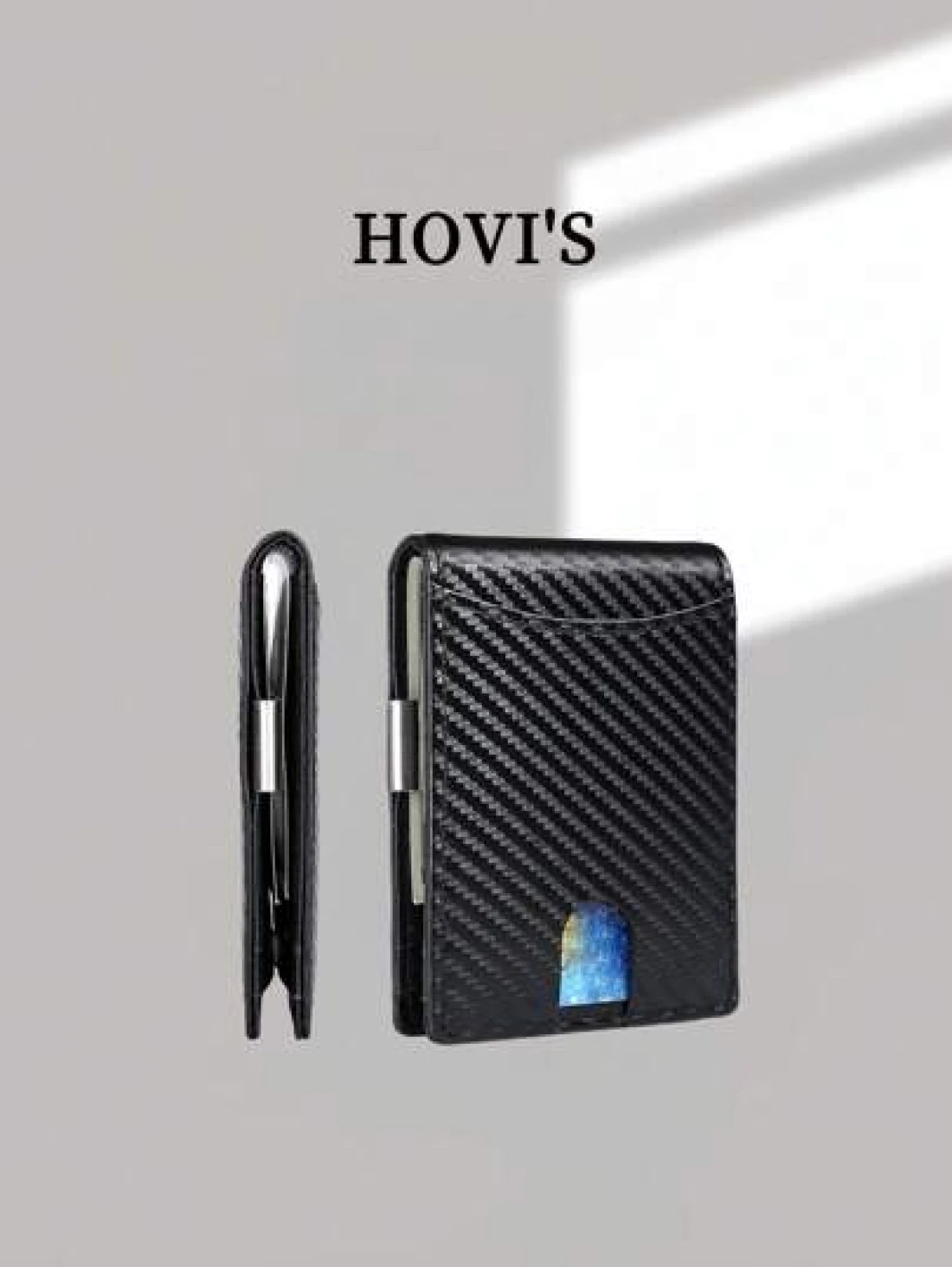 HOVI S Carbon Fiber Short Wallet Business Minimalist Card Holder RFID Blocking Anti Theft Two Fold Money Clip Wallet Mini Bag Small Bag