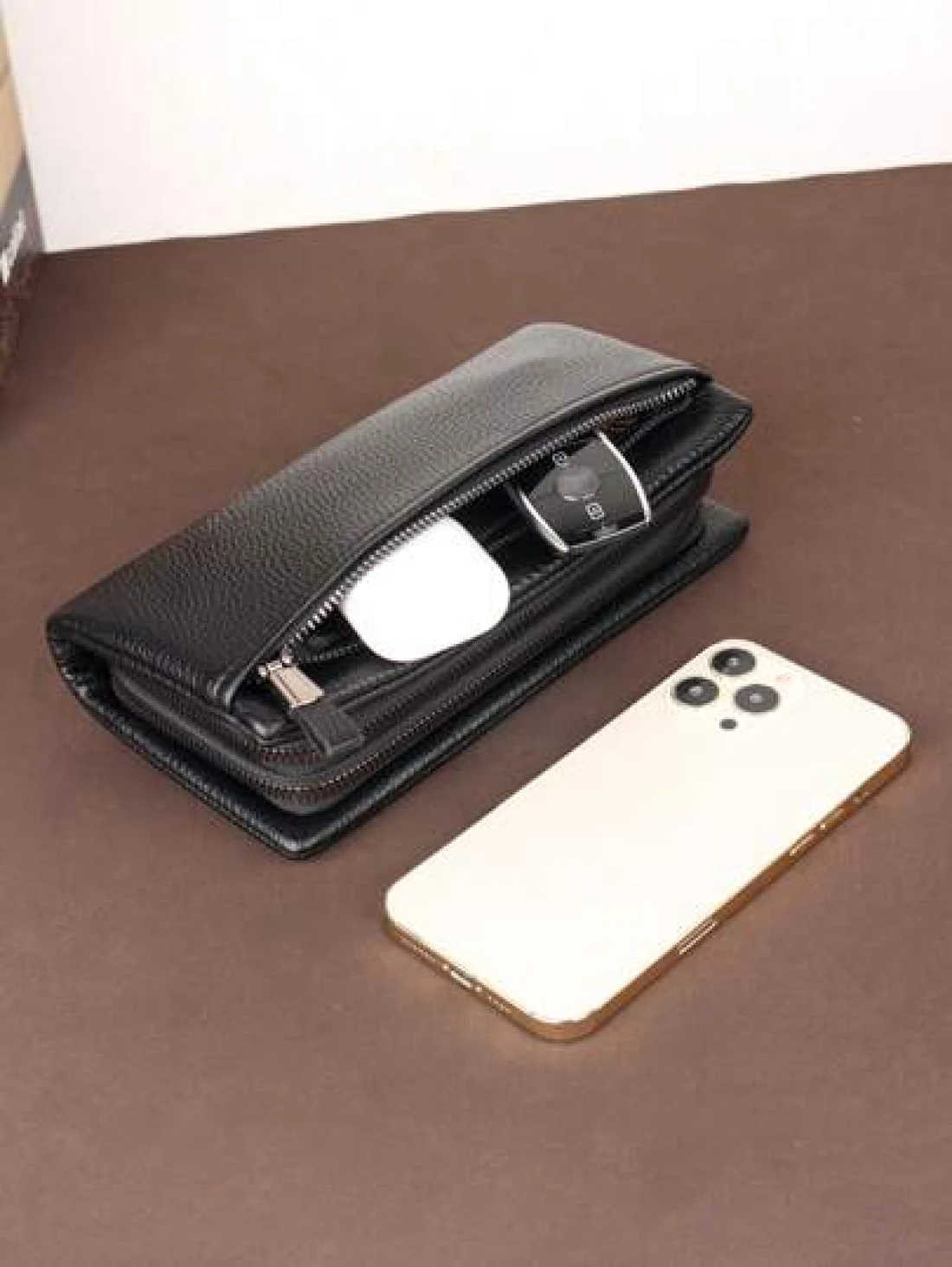 HOVI S Classic Solid Color Retro Clutch Bag Simple Business Large Capacity Lightweight Waterproof Men s Daily Commuting Mobile Phone Bag