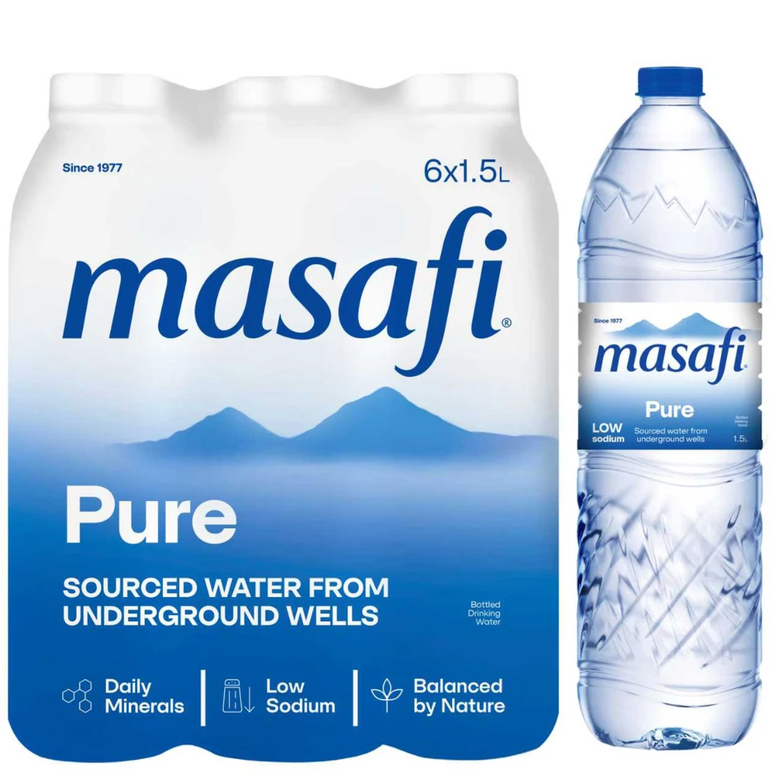 - 100% Pure and Natural: Masafi Pure Drinking Water is sourced from the pristine aquifers of the Hajar Mountains, ensuring unmatched purity and quality