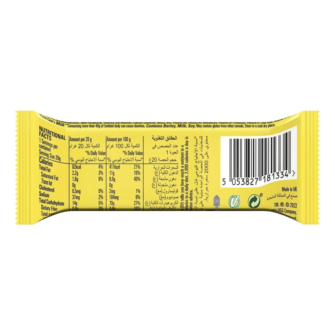 - Each pack contains 20 grams of the cereal bar, providing a convenient snack size