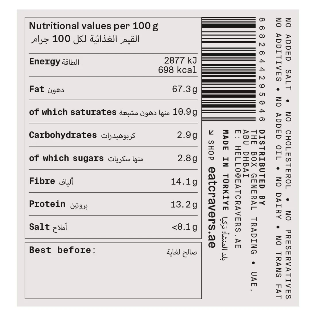 Cravers Super Nutritious Hazelnut Butter is a delicious and healthy spread made from high-quality roasted hazelnuts. Packed with nutrients and antioxidants, this creamy and flavourful butter is a great addition to your breakfast or snack routine. Enjoy it on toast, fruit, or in smoothies for a tasty and nutritious boost to your day.