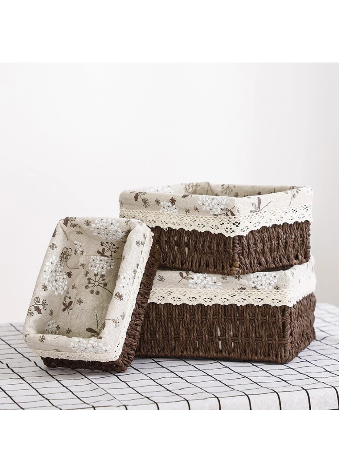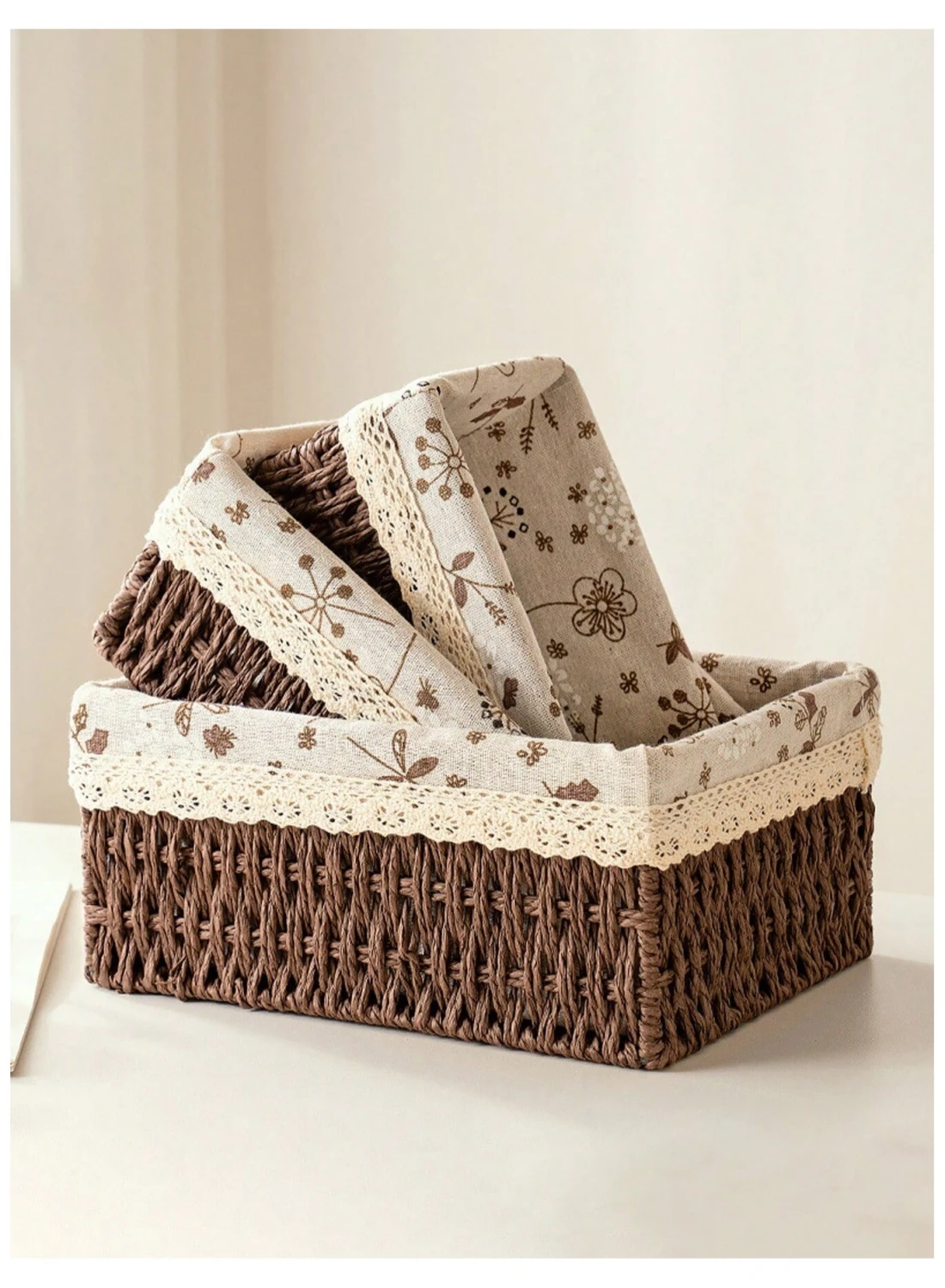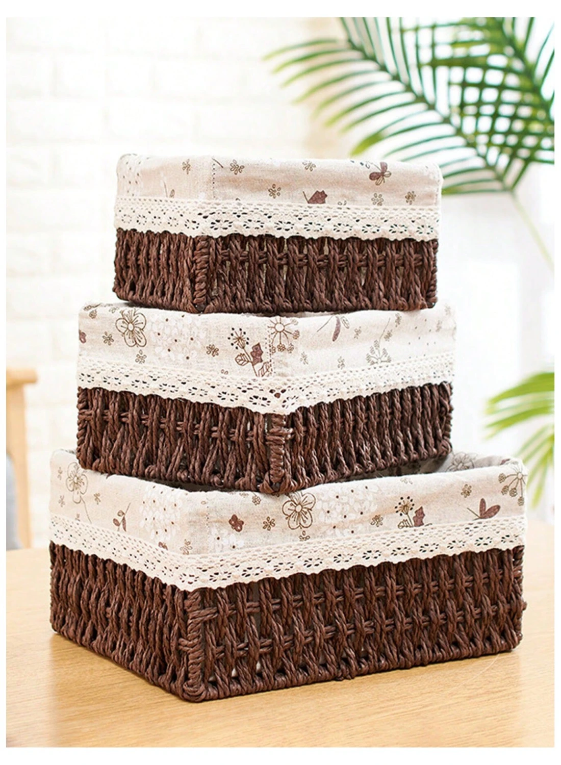 Set of 3 Eco-Friendly Handwoven Storage Baskets – Durable Woven Bins with Sturdy Plastic Frame and Removable Liners for Toys, Books, and Toiletries – Decorative and Versatile Home Organization - Brown