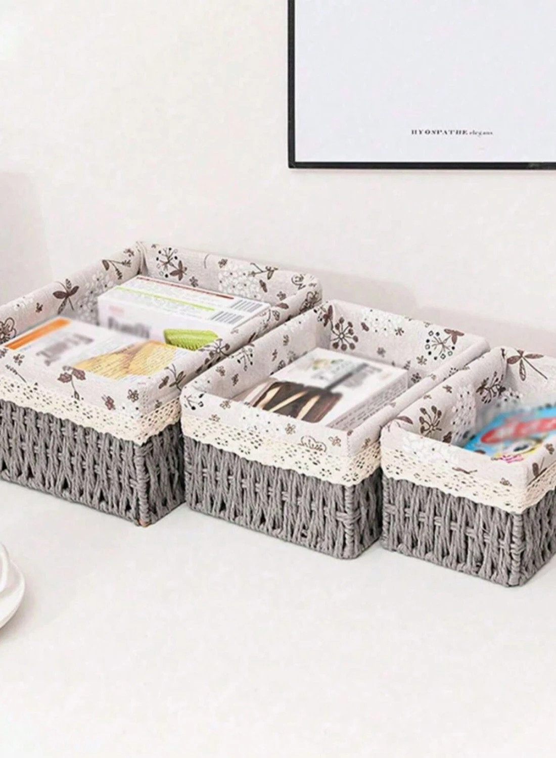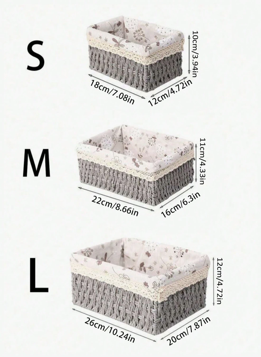 - Set of 3 Sizes: Large (26 x 20 x 12 cm), Medium (22 x 16 x 11 cm), Small (18 x 12 x 10 cm).