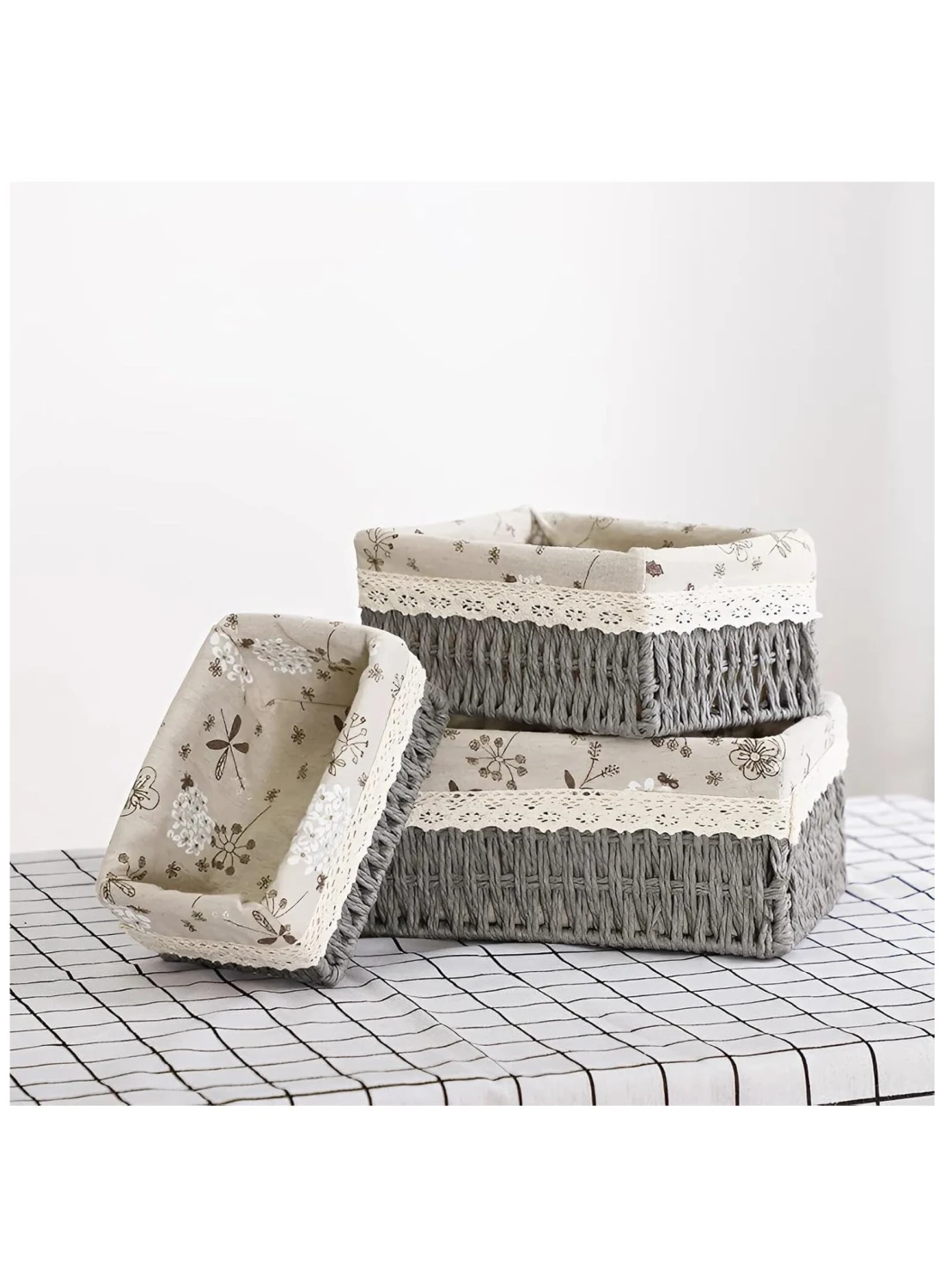 Set of 3 Eco-Friendly Handwoven Storage Baskets – Durable Woven Bins with Sturdy Plastic Frame and Removable Liners for Toys, Books, and Toiletries – Decorative and Versatile Home Organization - Grey