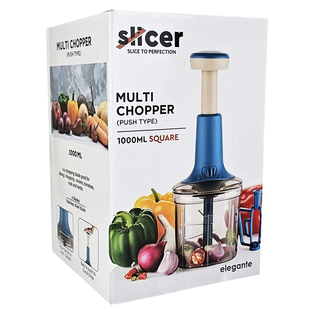 Elegante Slicer Push Type Square Shaped Multi Chopper 1000ml